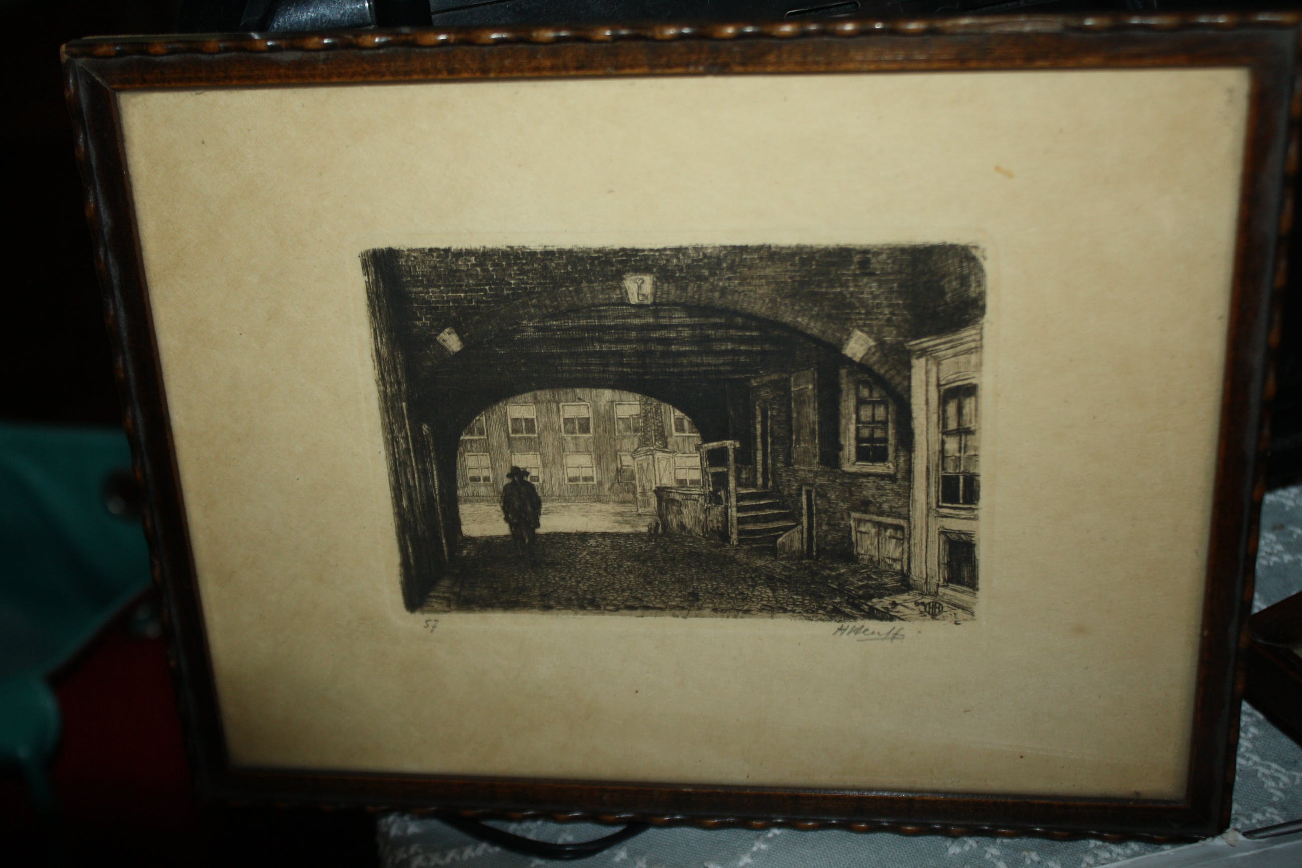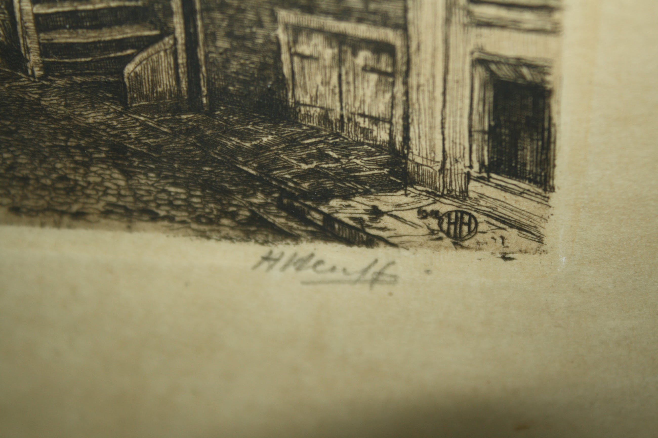 herman heuffstadspoortje met manets in de maat 8 x 12 cmgekaderd in oud jaren 30 lijstje in de maat 17 x 23 cmgesigneerd met potlood en in de plaatzeer goede staatverzenden aangetekend