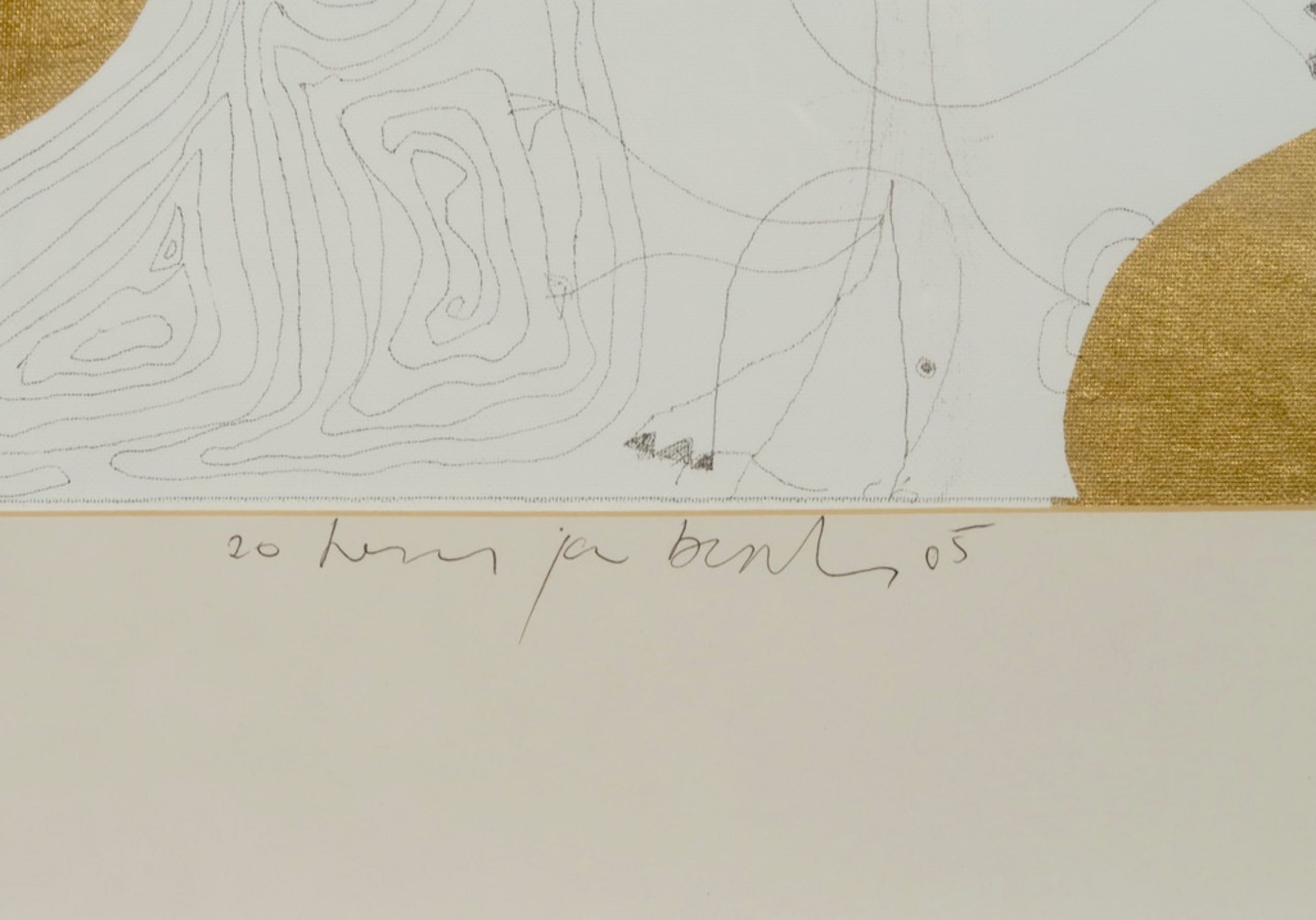 Materiaal: Gemengde techniek op paneel, o.a. goudverf en potlood