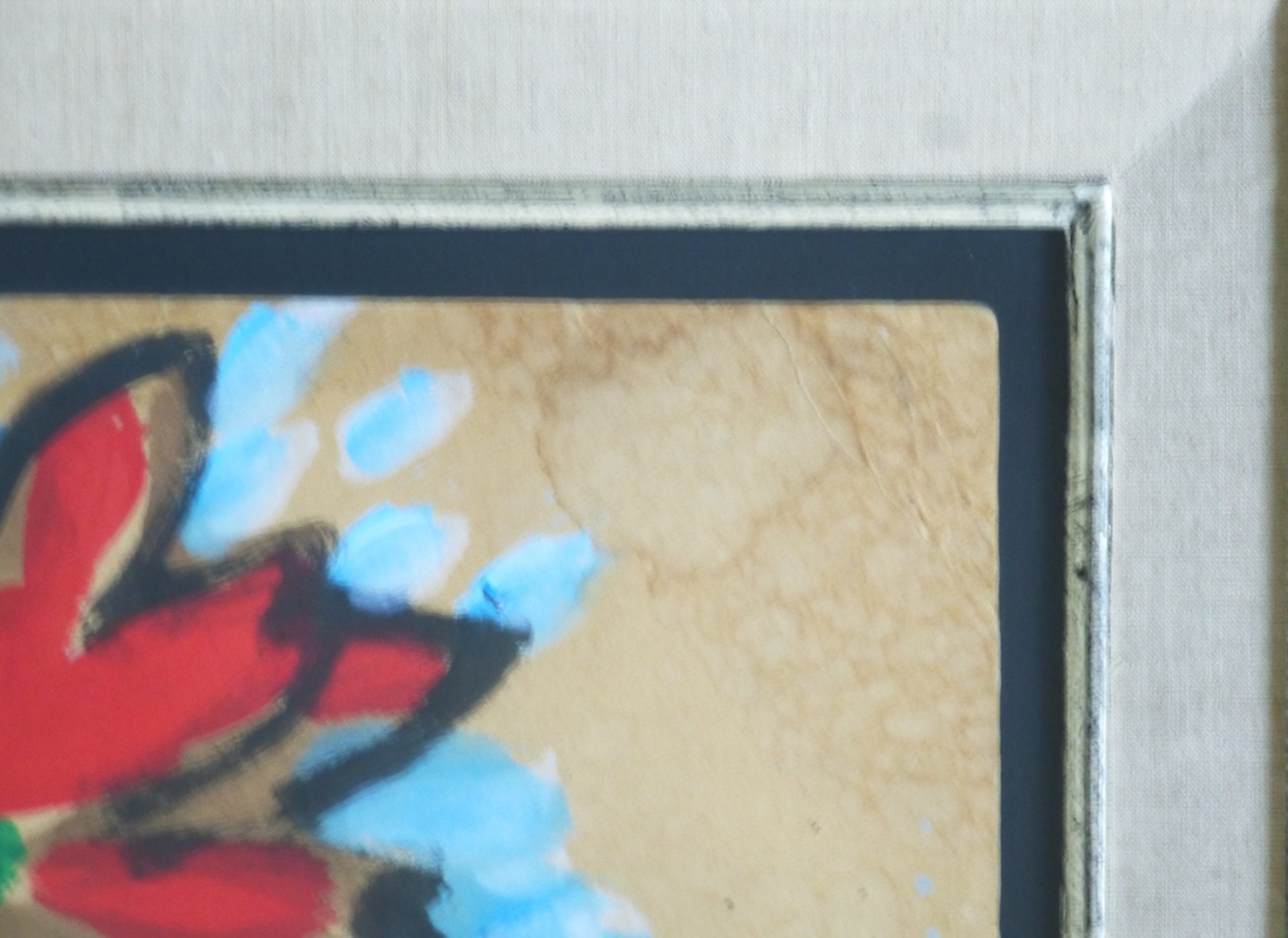 Kleine beschadigingen aan lijsten en passe-partouts worden niet beschreven, tenzij een lijst een nadrukkelijke meerwaarde heeft. Indien een werk achter glas is ingelijst en het glas is kapot, zal dit wel vermeld worden.