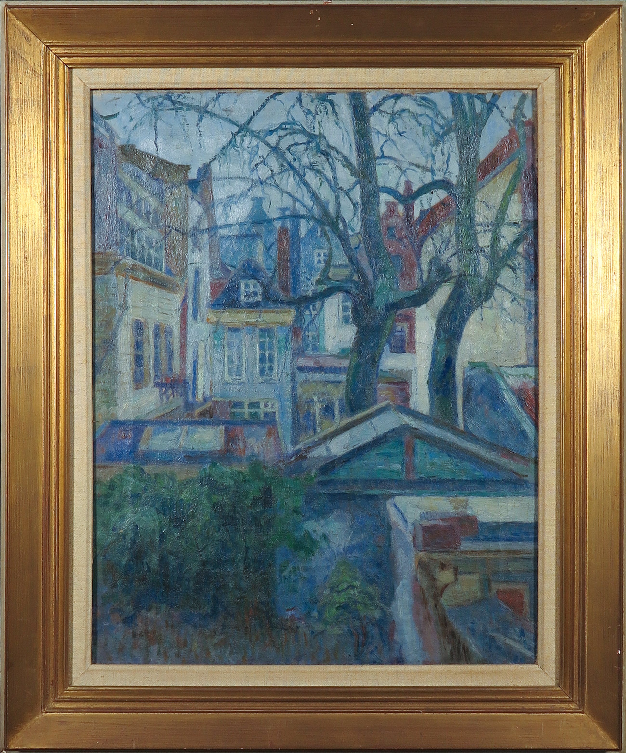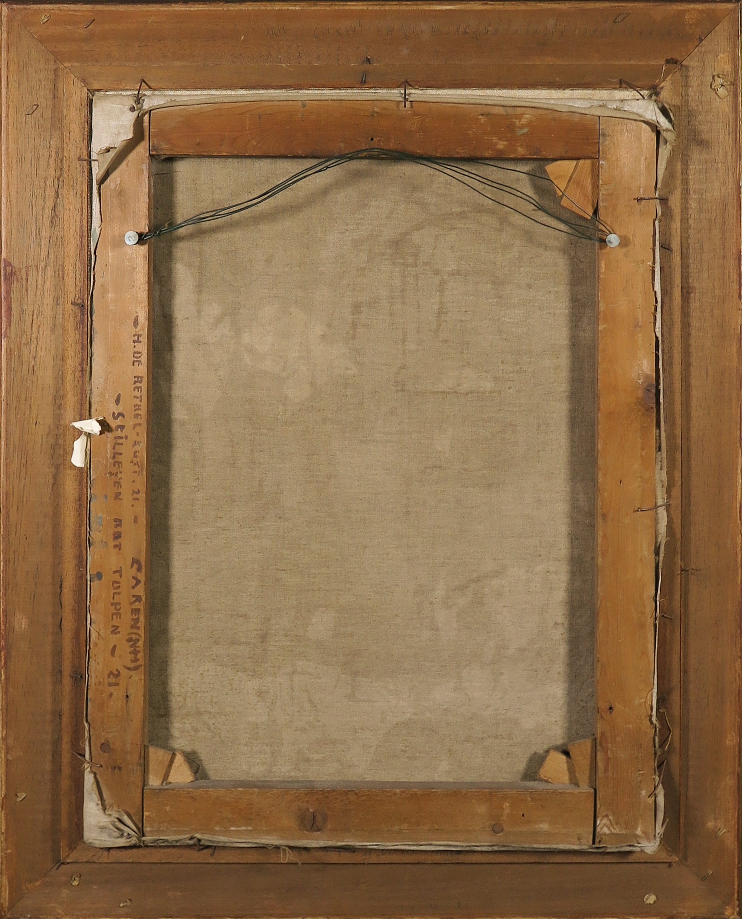 | Goede staat, doch met craquelé en een klein plekje verfverlies linksonder. . Lichte slijtage langs randen en hoeken (door speling tussen doek en lijst). Werk lijkt midden langs de onderste rand geretoucheerd te zijn, dit is niet zeker. | |
