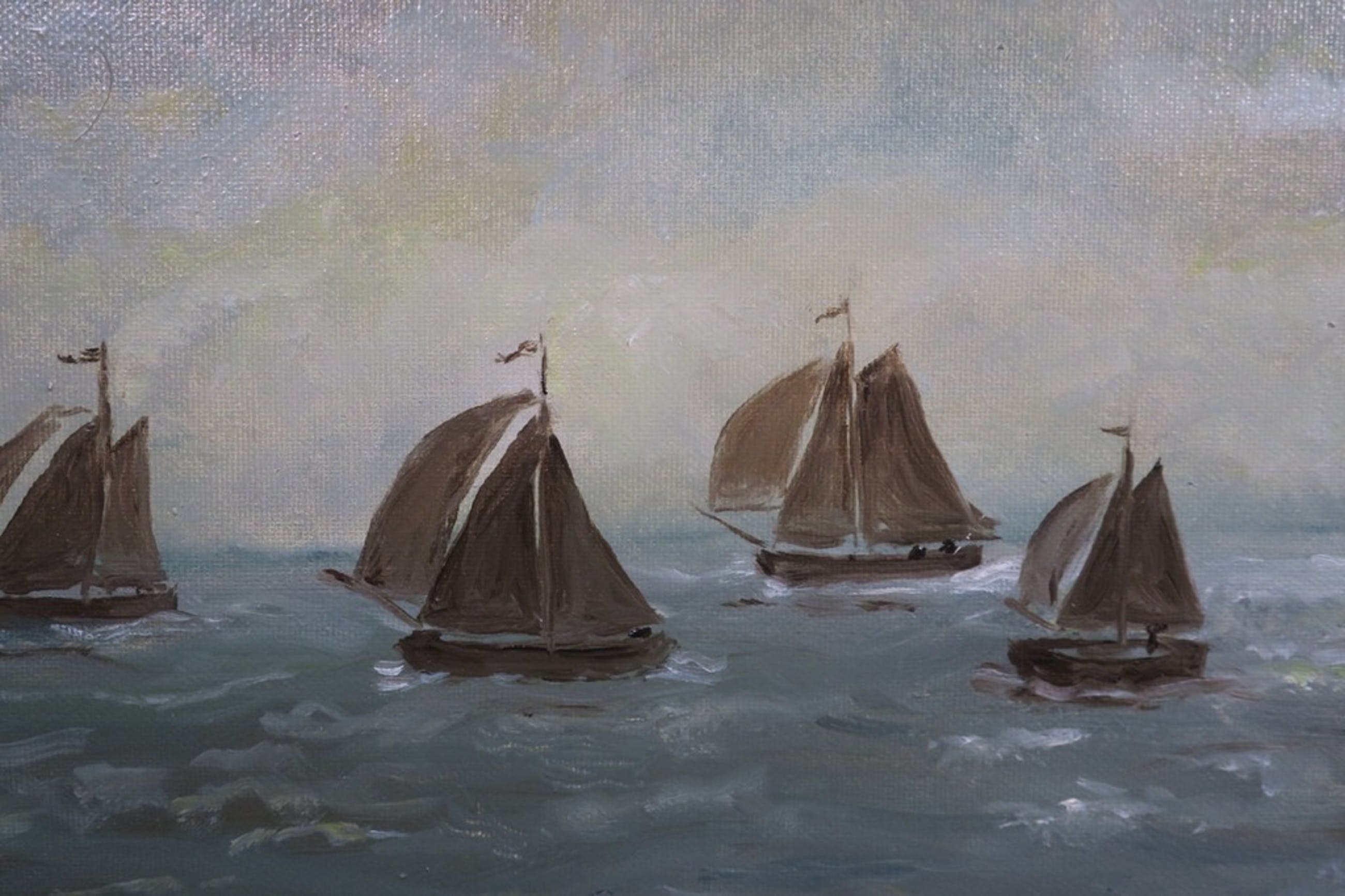Conditie: In goede staat, maar met een krasje in de onderrand van het doek (zie detailfoto)