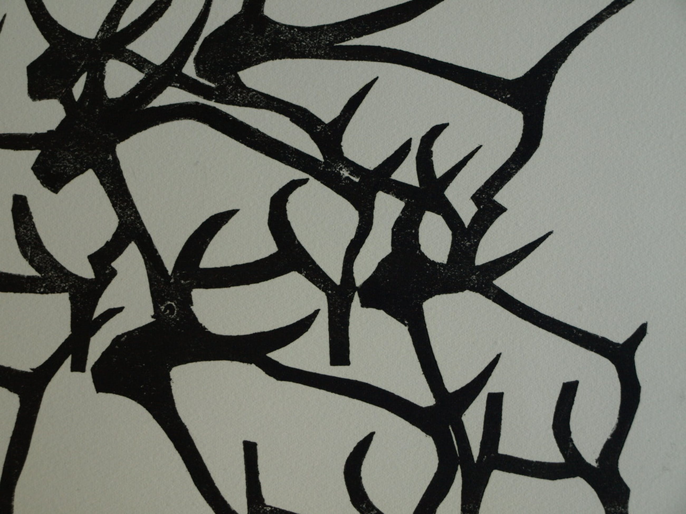 Techniek: Druk van een houtsnede op papier.