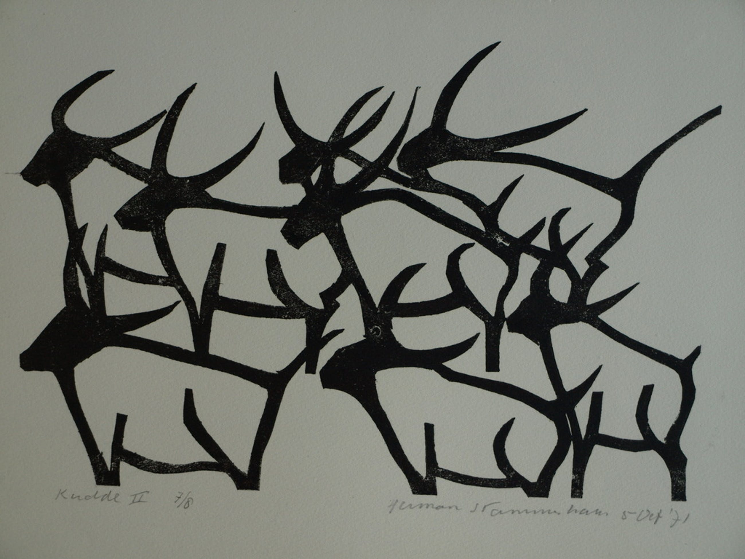 Een werk uit 1971 van de Nederlandse kunstenaar Herman Stammeshaus (1918-1991) met een voorstelling van een kudde.