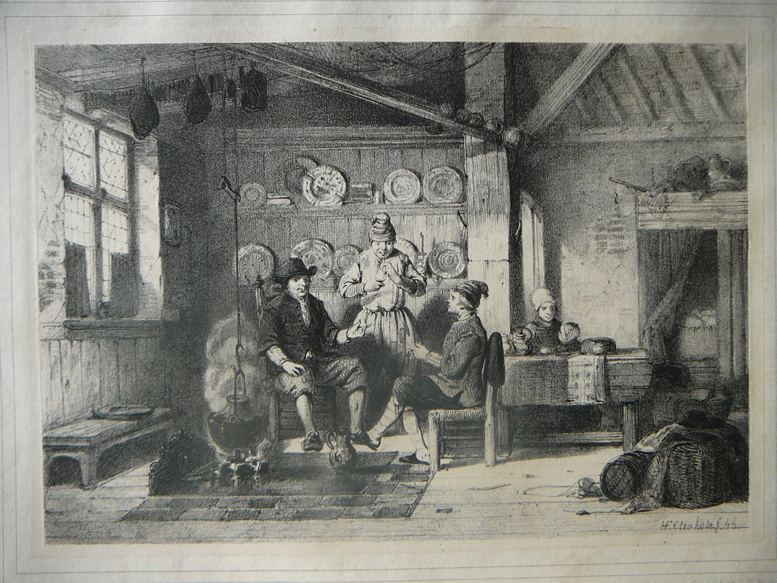Mooie Litho van H. F. C. ten Kate van een Marker Gezin 1846 gedrukt door C.W.Mieling