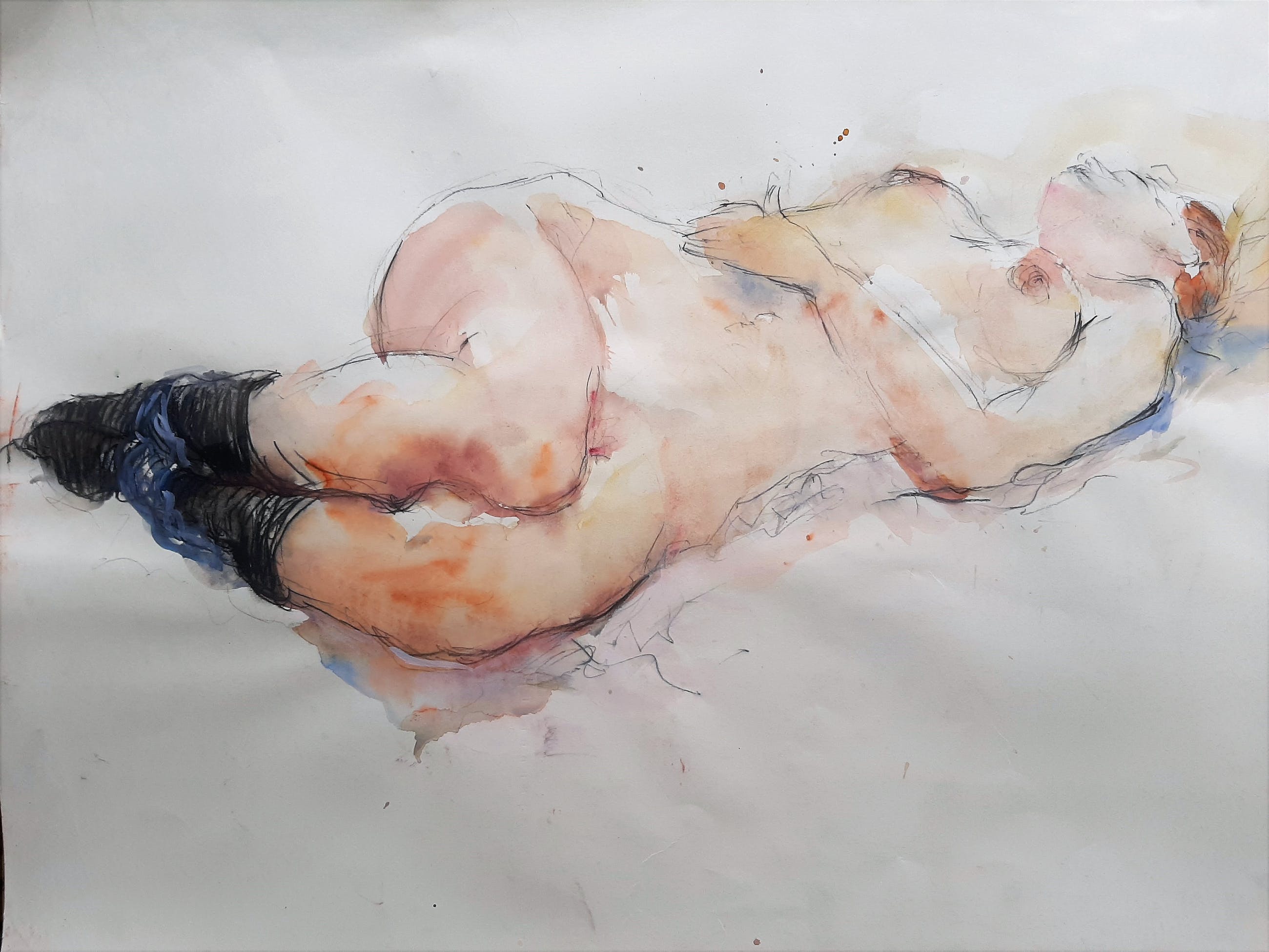 Achterover liggend naakt op papier zonder lijst