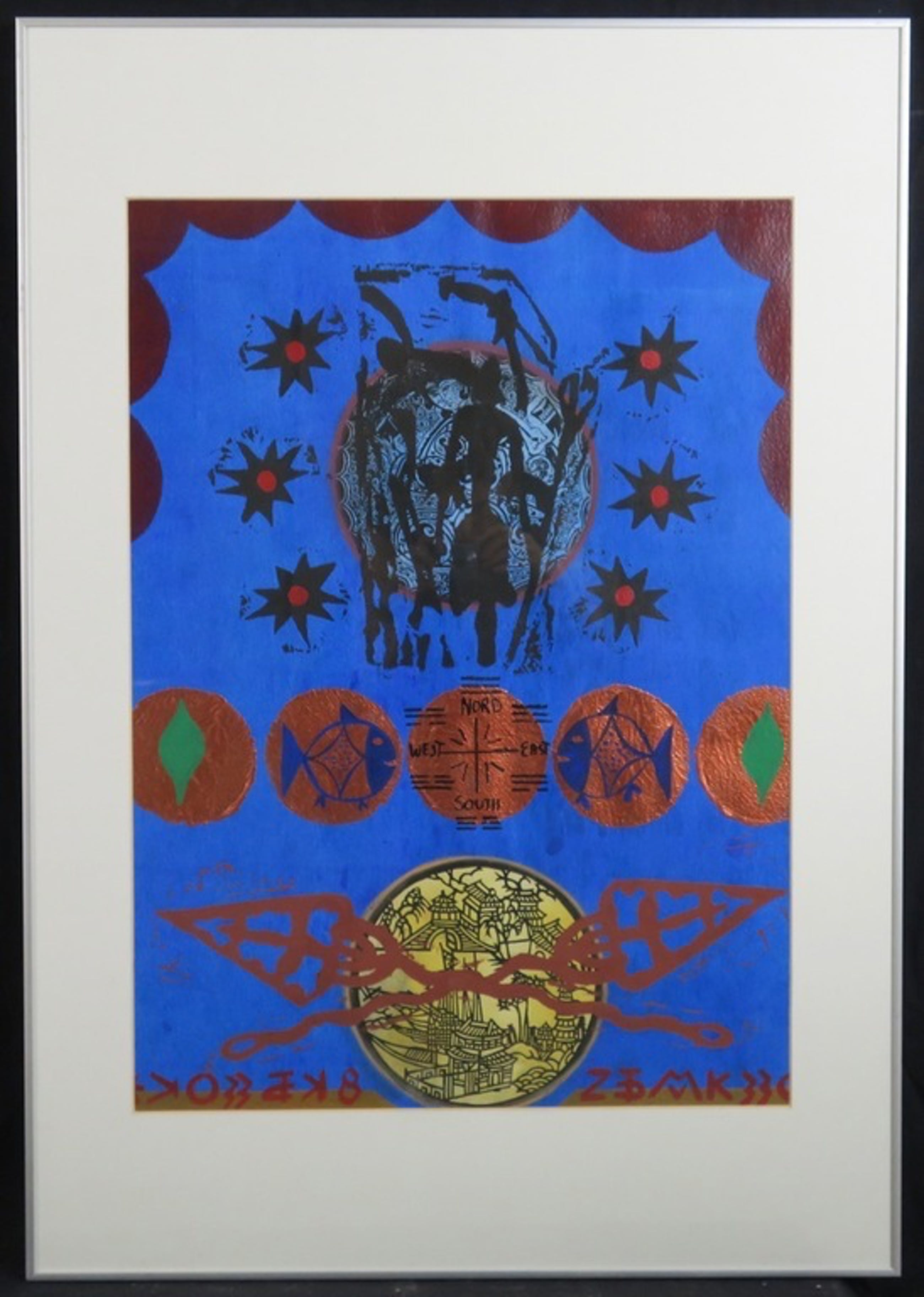 Materiaal: Gemengde techniek op papier, o.a. acryl en collage