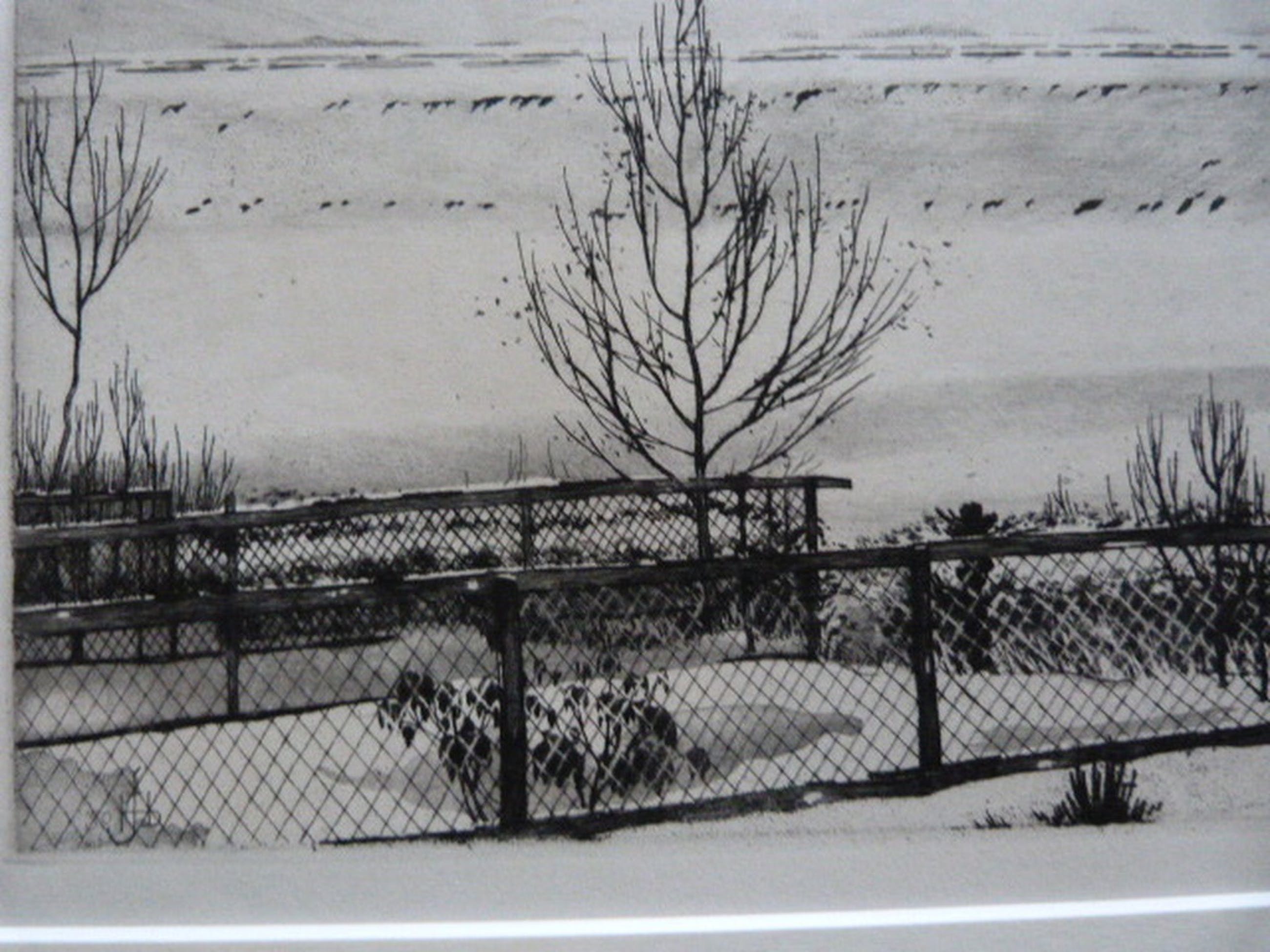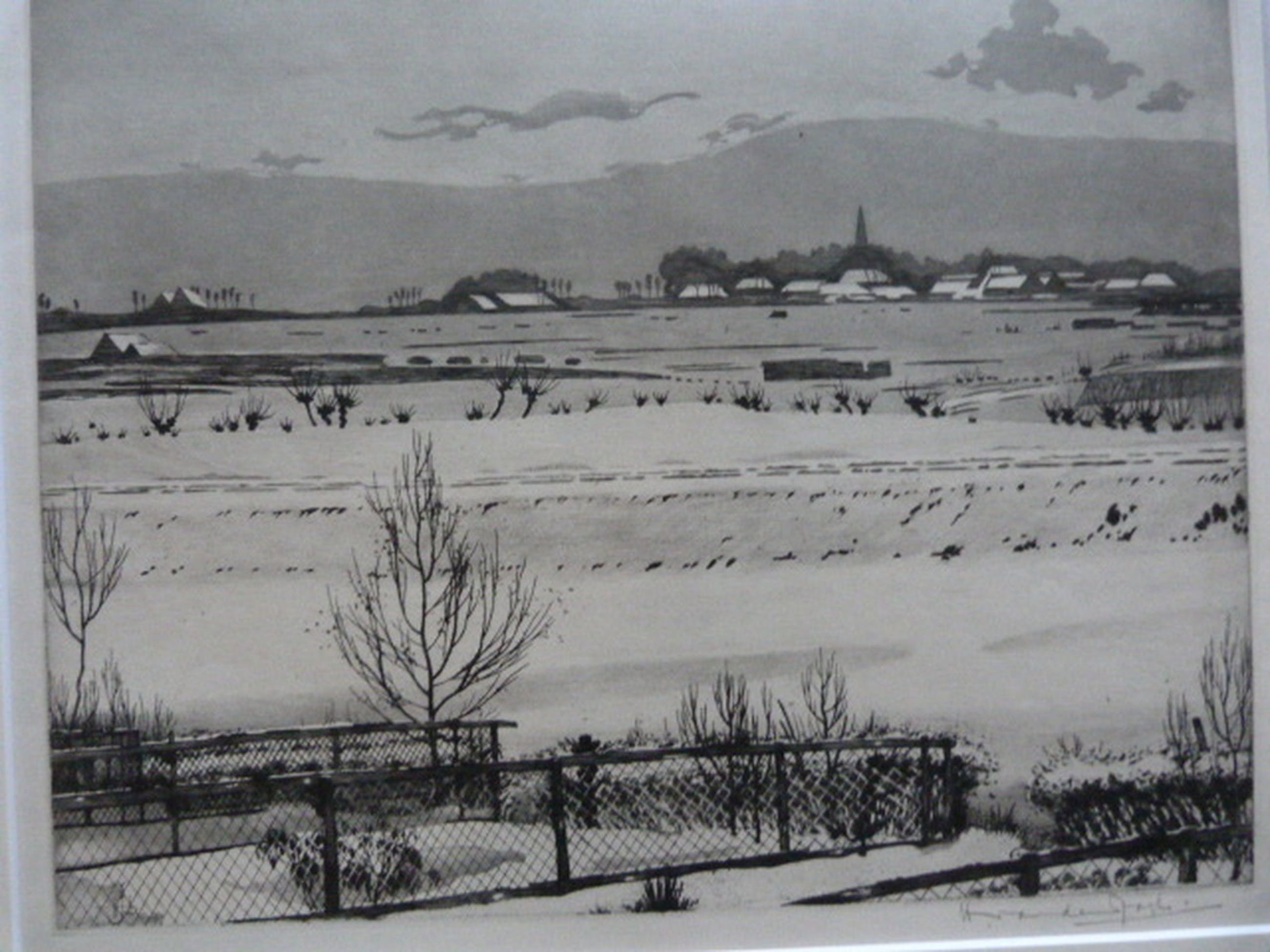 Ets is rechtsonder met potlood gesigneerd.