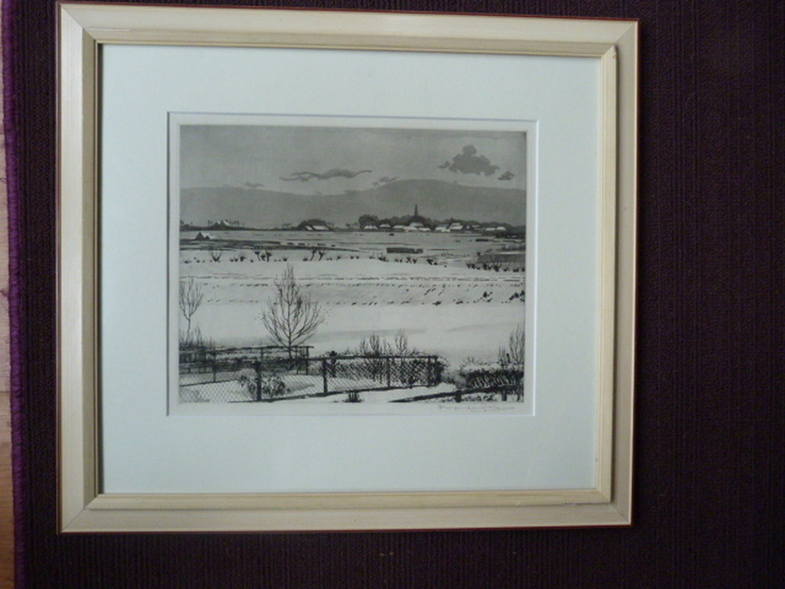 Ets : 25 x 31,5 cm. met passe-partout en lijst : 48 x 53 cm.