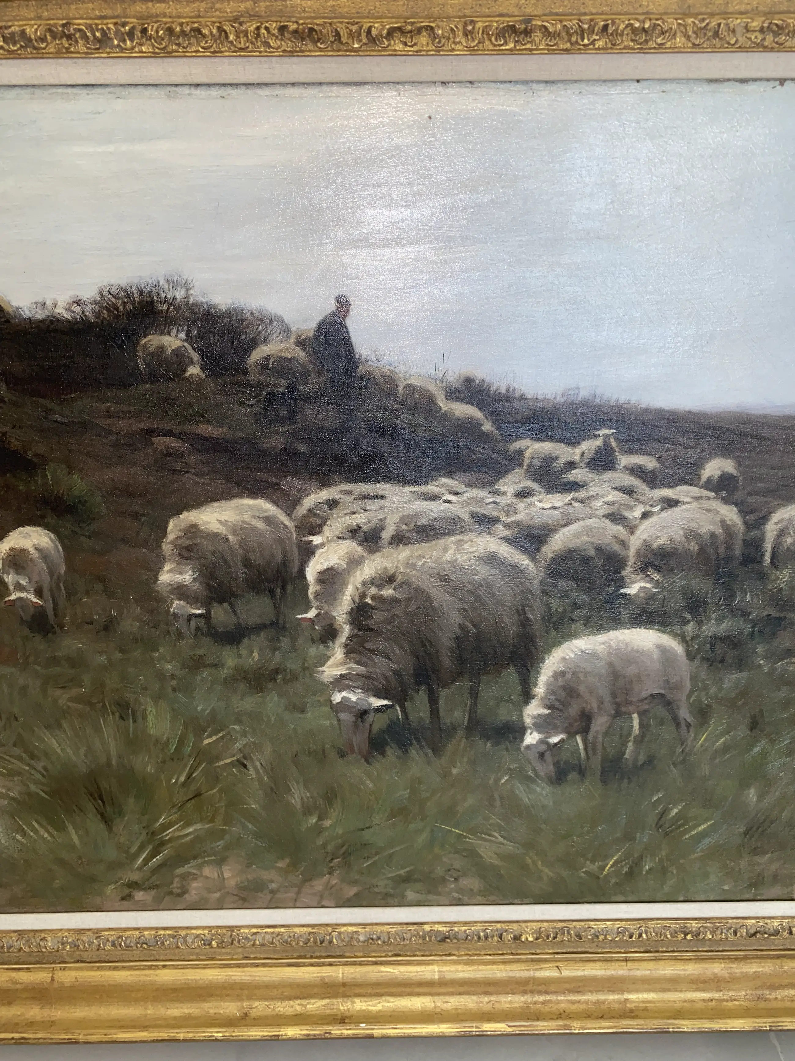 Herder met schaapskudde op de hei