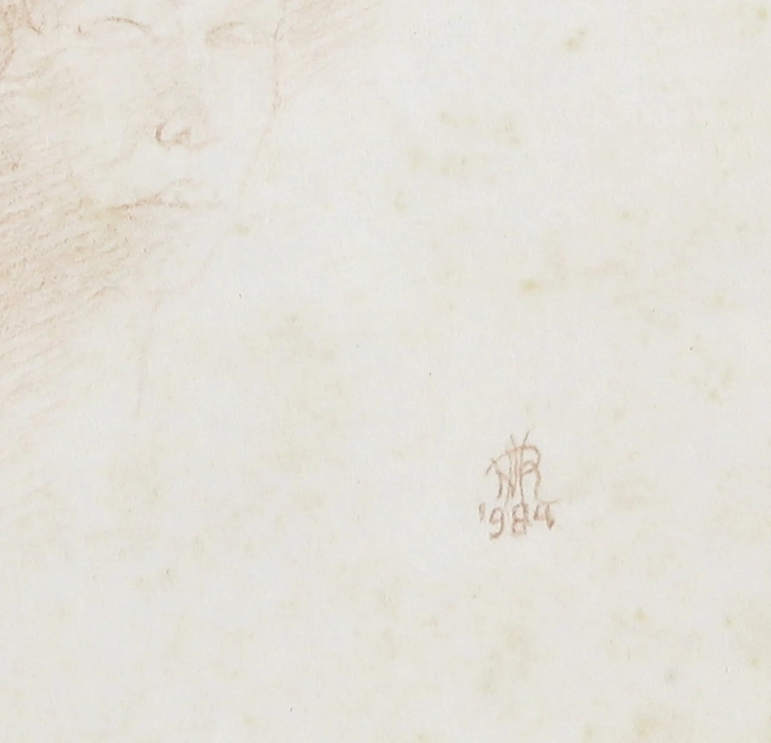 | Goede staat. Wat foxing verspreid over de tekening. Lichte golving in het blad. | |||||||||||