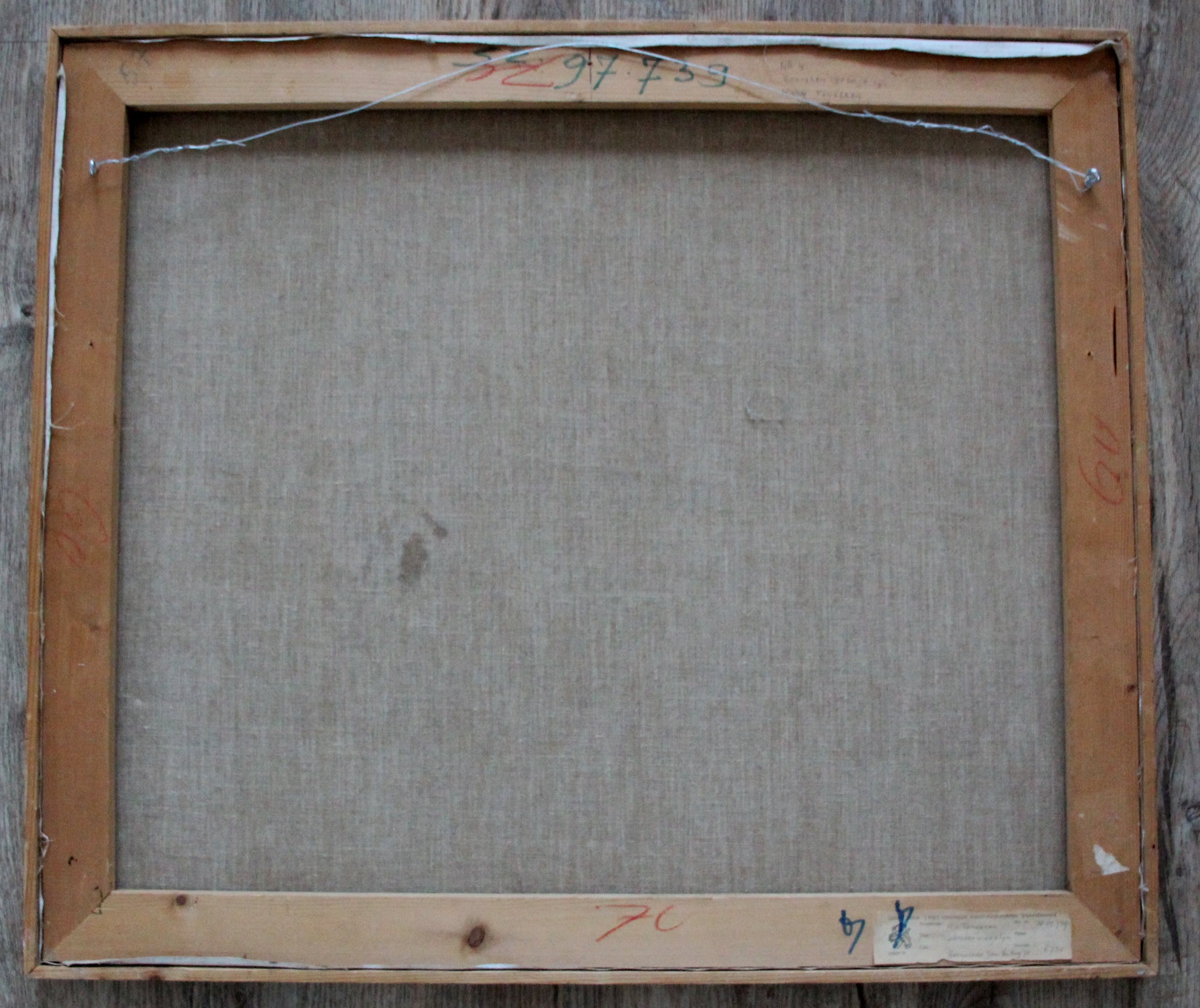 Lijsten: Beschadigingen aan lijsten worden niet beschreven. Indien een werk achter glas is ingelijsten het glas is kapot, zal dit wel vermeld worden. Bij foto's van ingelijste werken kan spiegeling zichtbaar zijn.