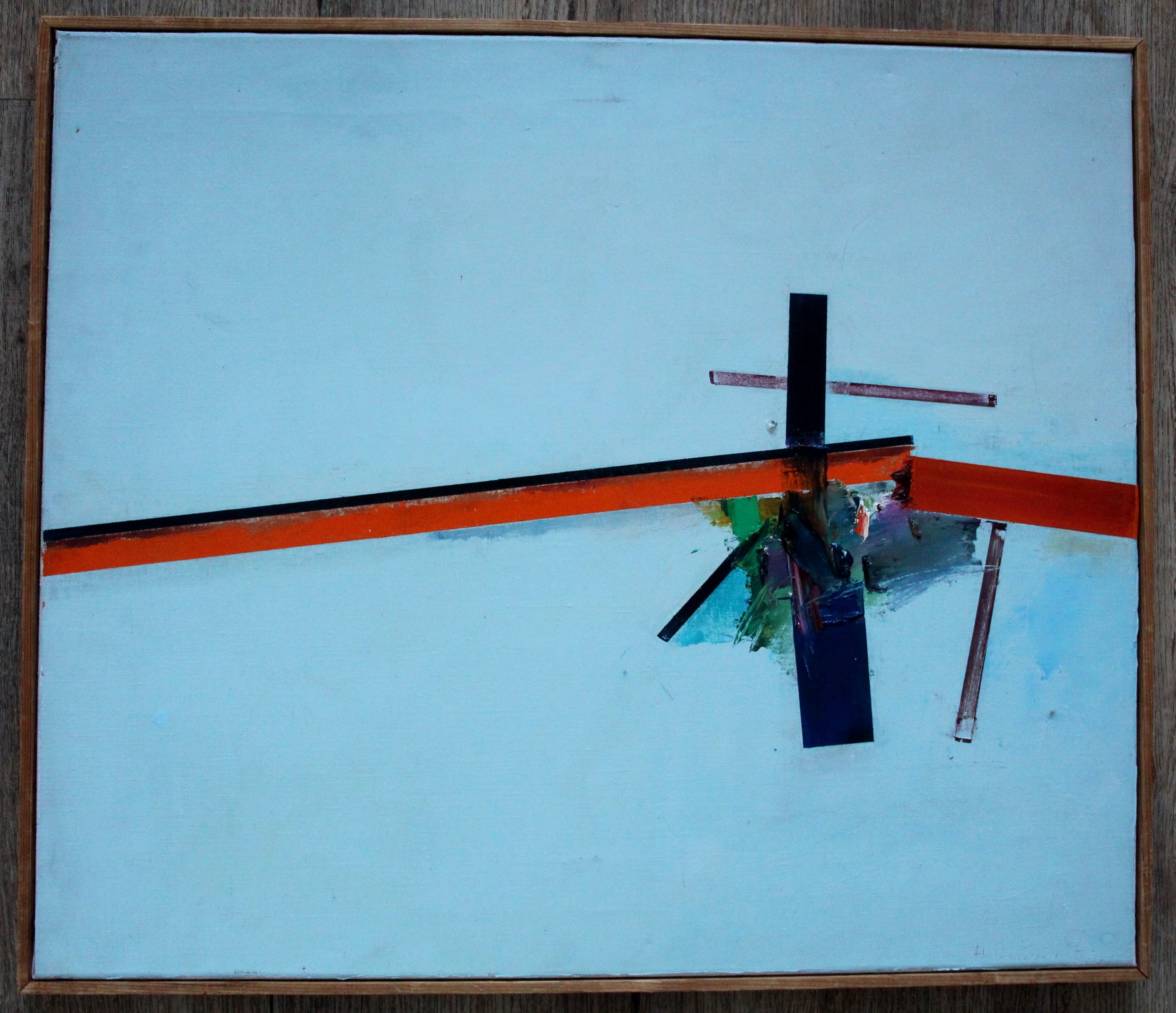 Olieverf op doek van Herman van Tongeren. Titel: "Gebroken oranje lijn". Jaar: 1975. Afmetingen incl lijst: H62 x b72cm. Afmetingen voorstelling: H60 x b70cm. Het werk is, rechts onderaan, gesigneerd en door de kunstenaar. De authenticiteit van het aangeboden werk wordt volledig gegarandeerd. Een certificaat van echtheid kan, op aanvraag, worden gemaild.