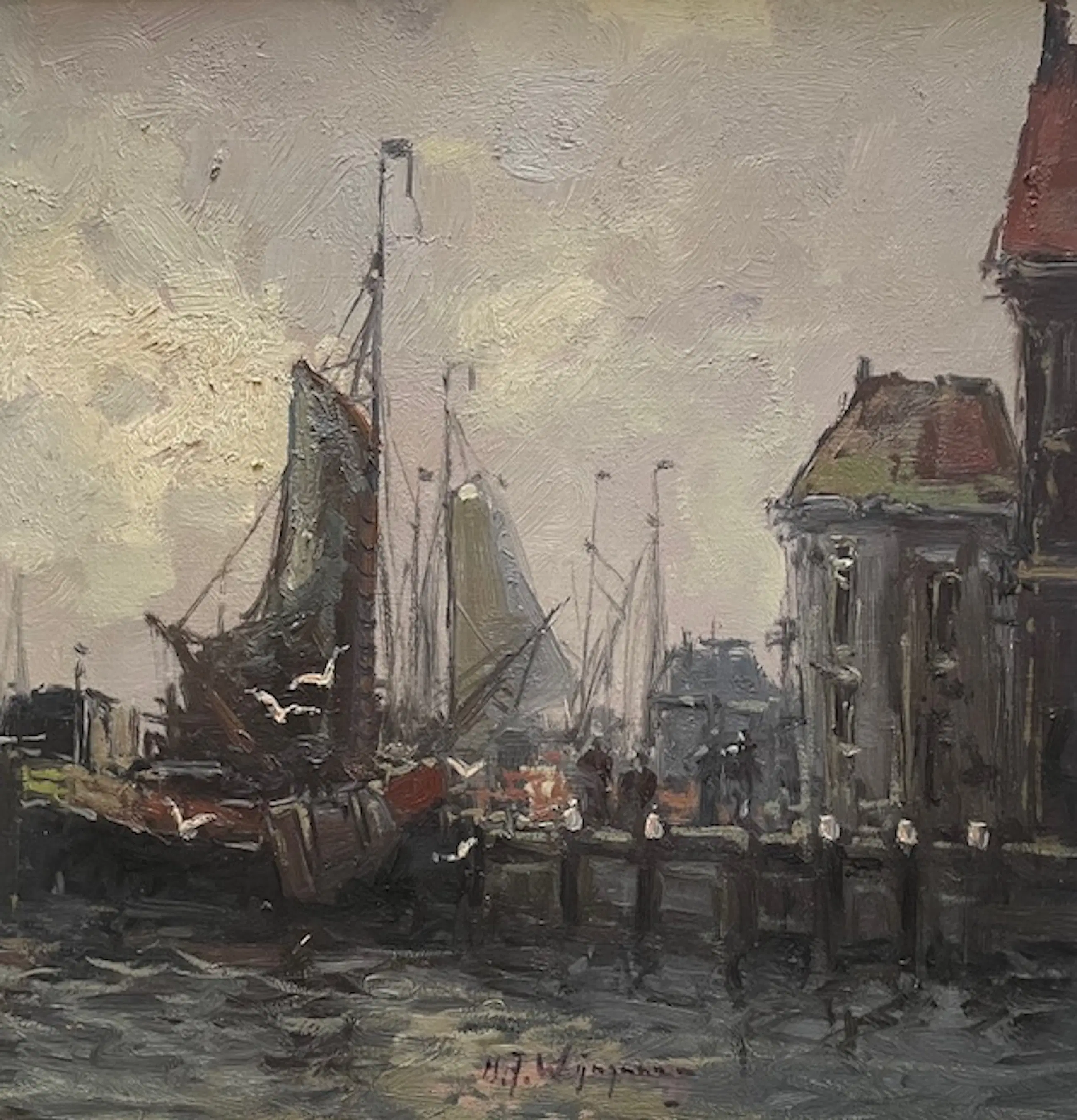 Herman Wijngaard - Haven Gezicht - Olieverf Schilderij