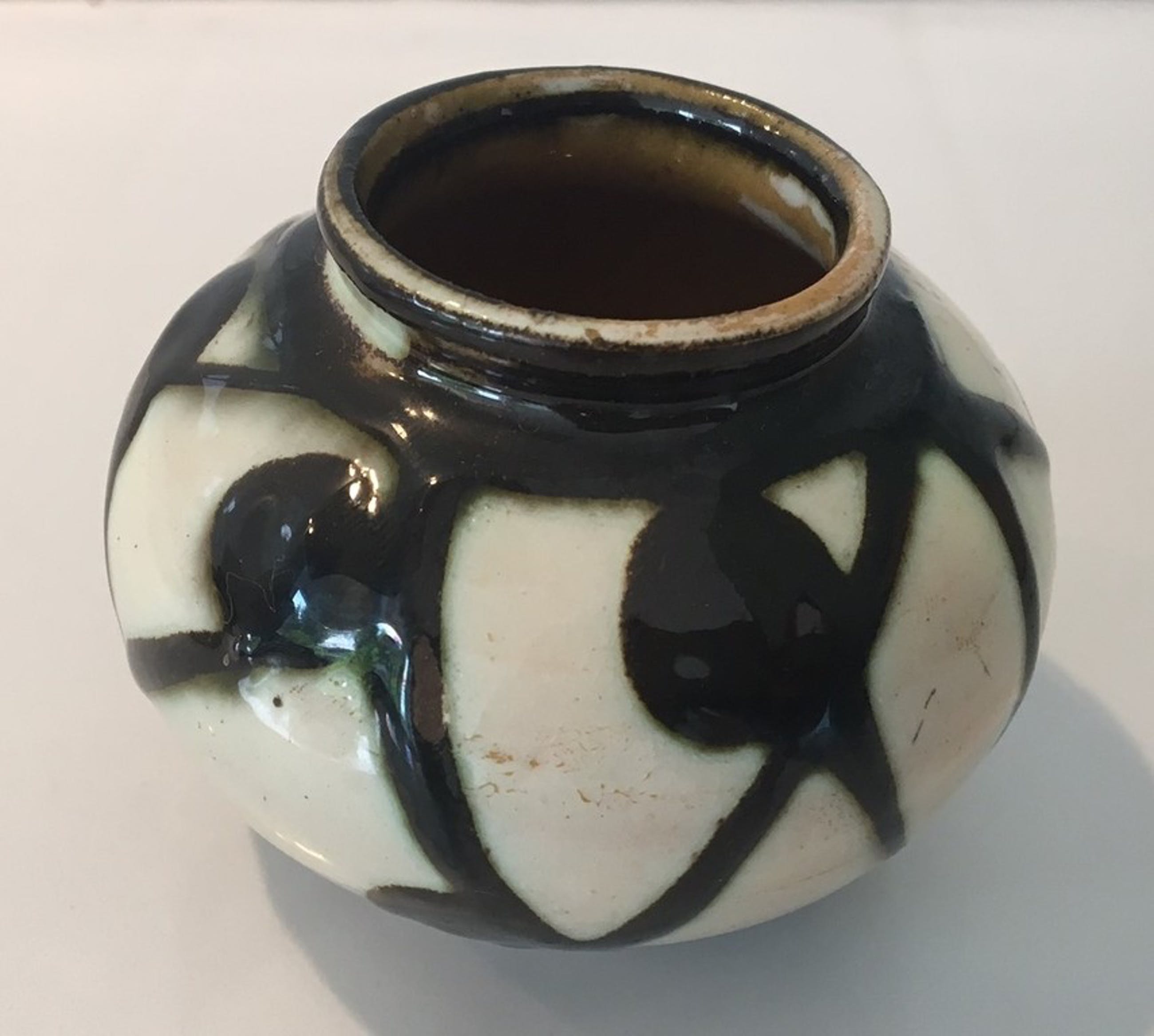 Hermann August Kähler (HAK) - Art nouveau aardewerk bibelotje voorzien van slibdecoratie en hoogglans glazuur. Mooi en zeldzaam stukje antiek aardewerk. Aan de onderzijde met de hand gemerkt HAK. In prima conditie, maar een fleebite onderaan de voet.