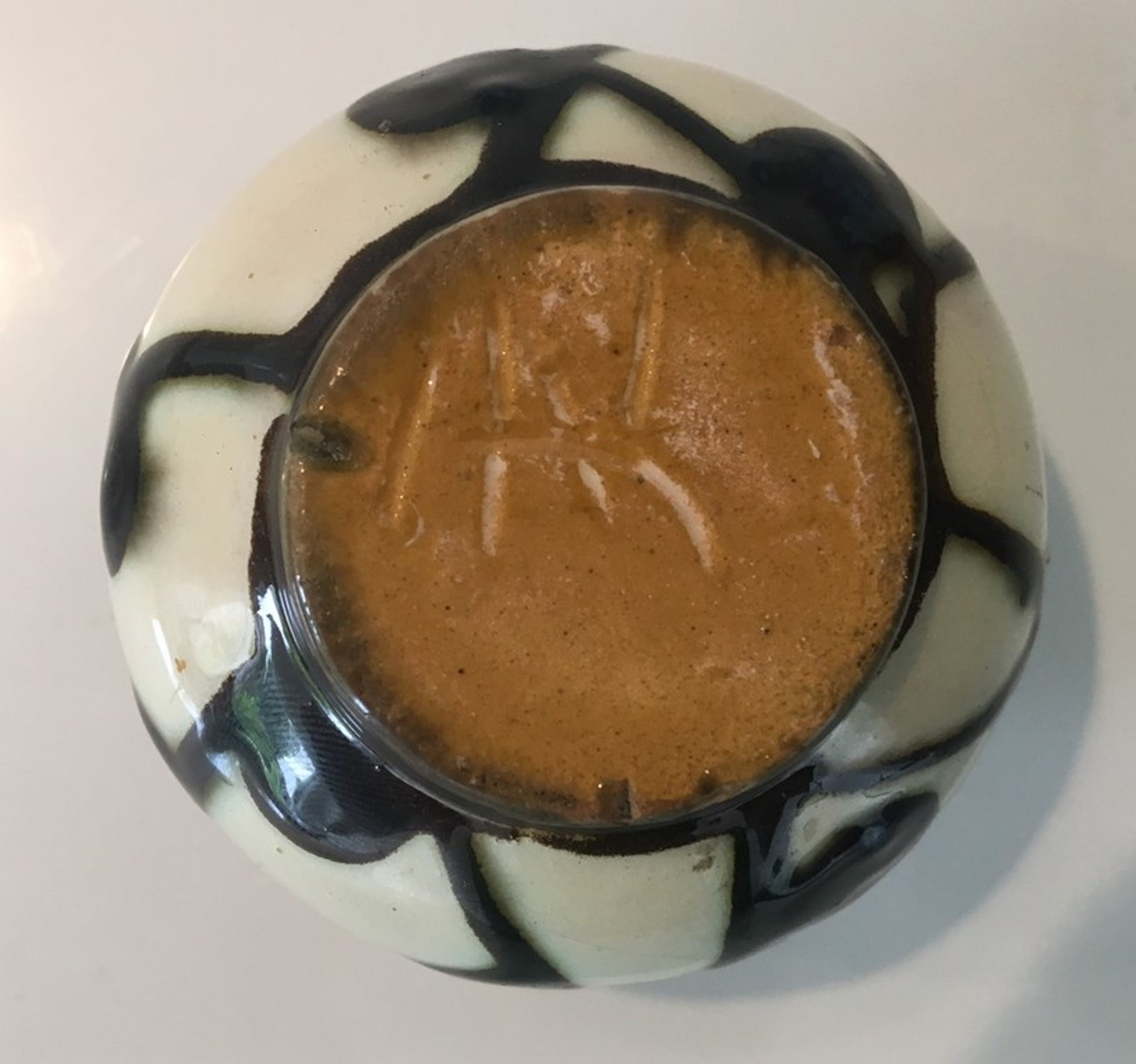 Afmetingen; 6 cm hoog en 7,5 cm in diameter