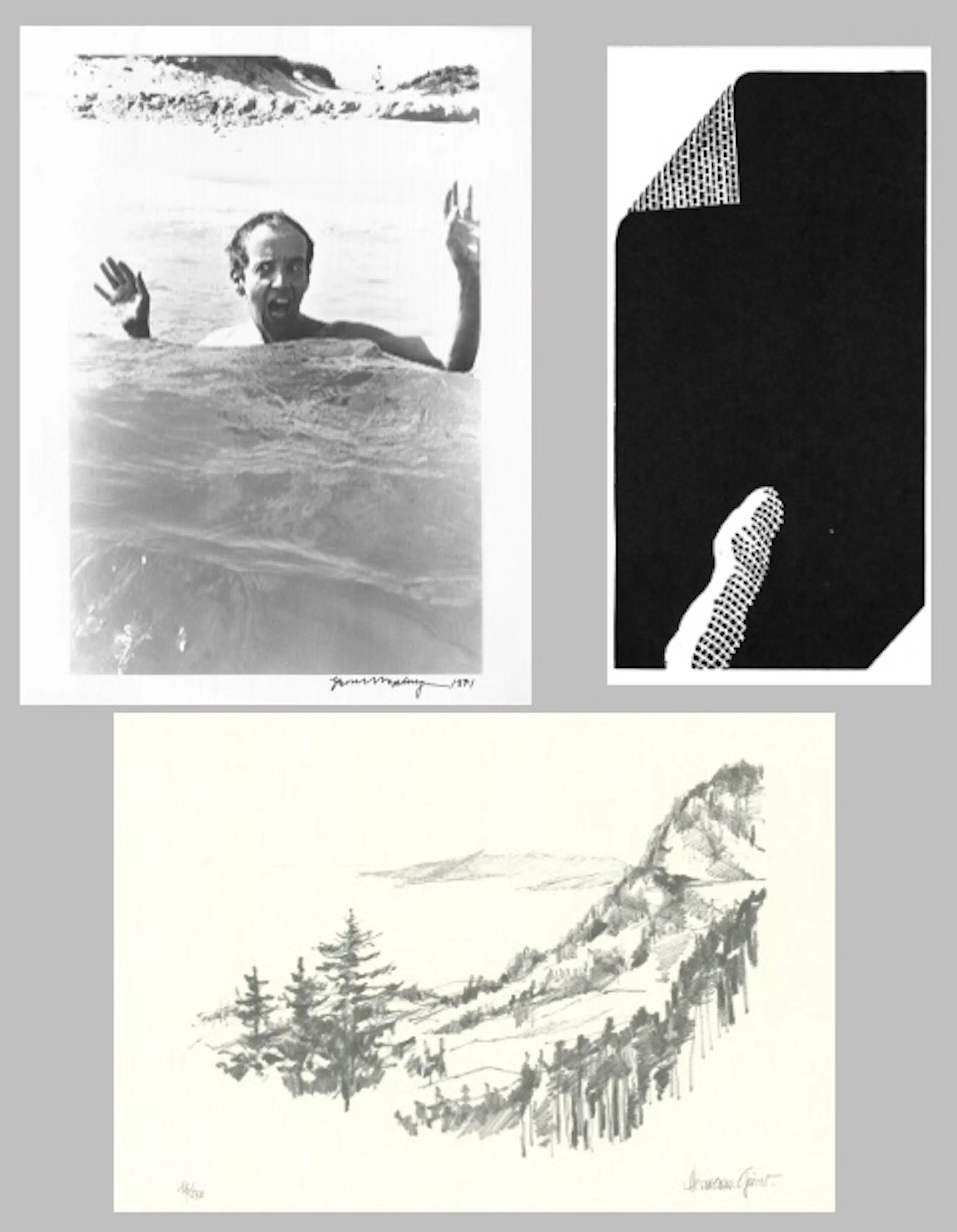 Lot van drie kunstwerken: handgesigneerde lithografie, foto (in druk gesigneerd), niet-gesigneerde litho