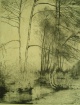 Hermann Kätelhön - Bäume am Bachufer, frühe Radierung, handsign, gerahmt - Verkocht