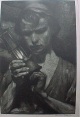 Große Lithopraphie mit dem Portait eines jungen Bergmannsknappen (Lehrhauer) aus der Mappe "Arbeit" Handsigniert und nummeriert( D.150-200).
