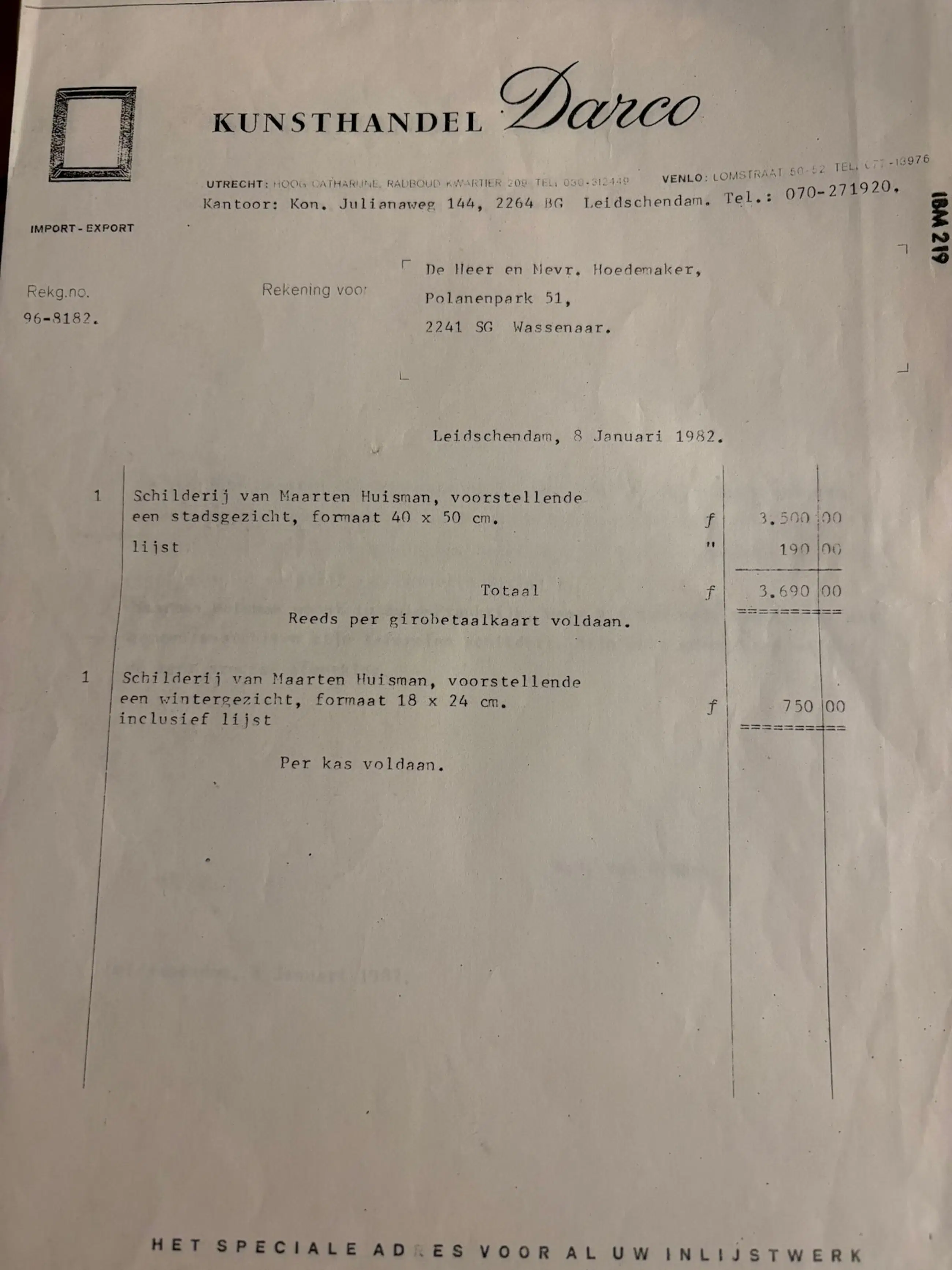 Het werk is af te halen op locatie. Als koper dient u zelf verpakkingsmateriaal mee te nemen. De locatie is: Voorhout, Nederland