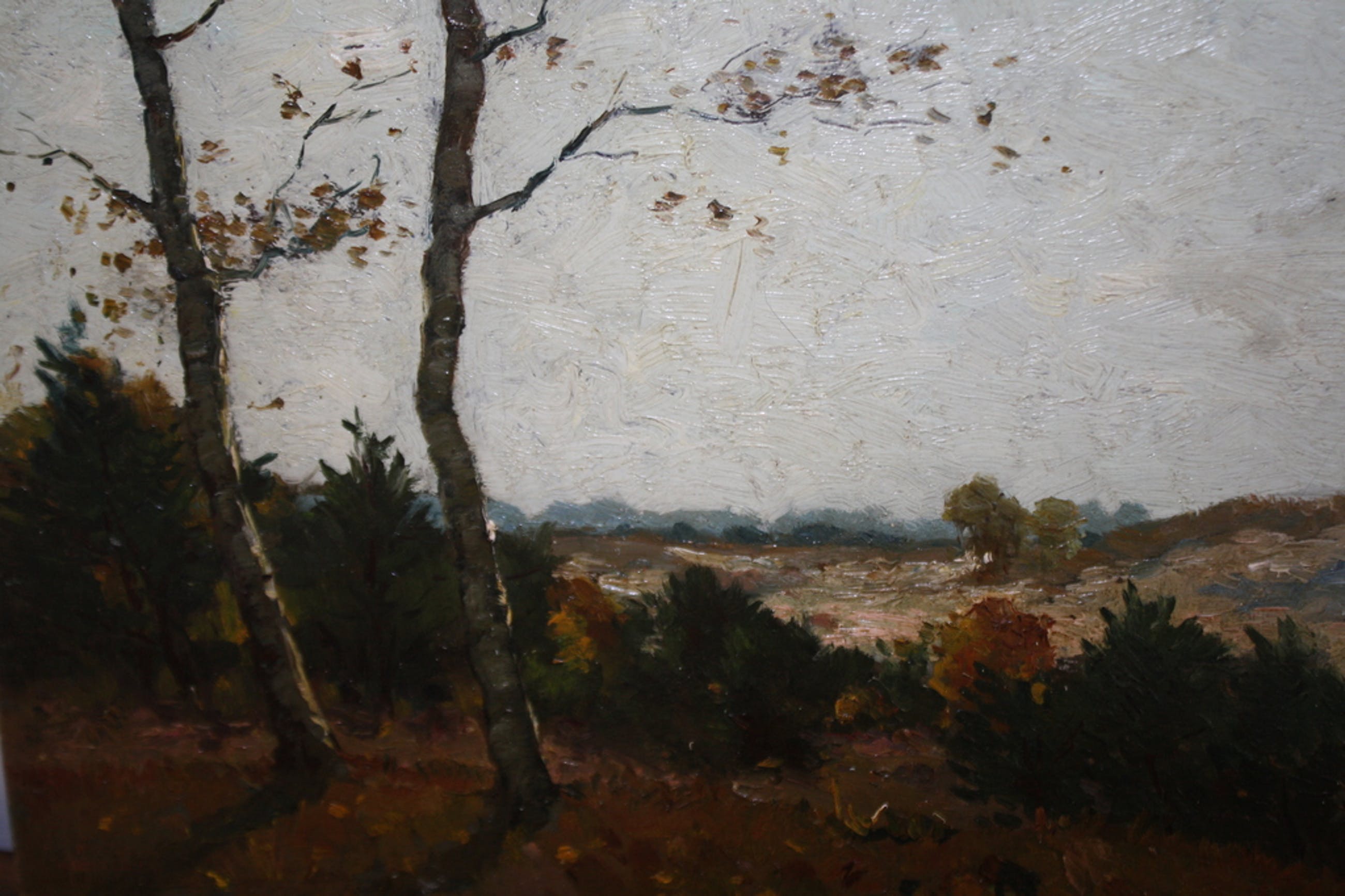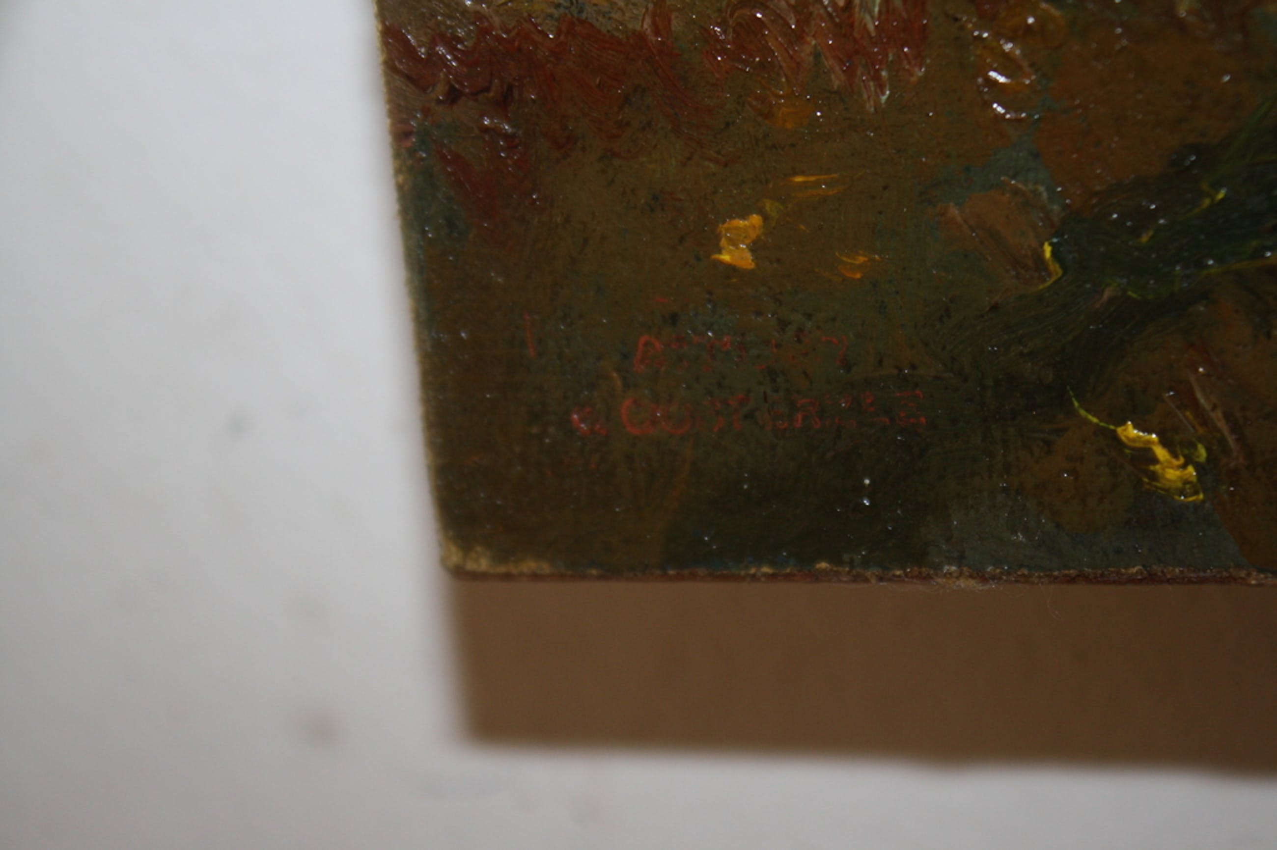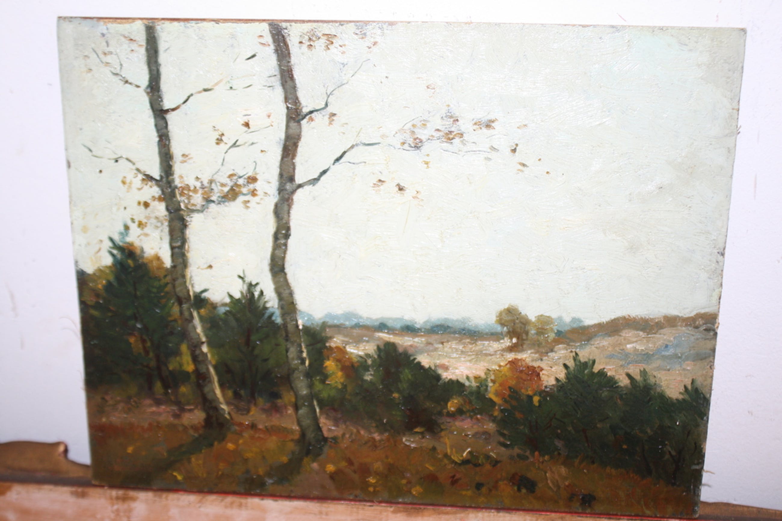OLIEVERF OP LINNEN GEPLAKT OP BOARD IN DE MAAT 29 X 38 CM