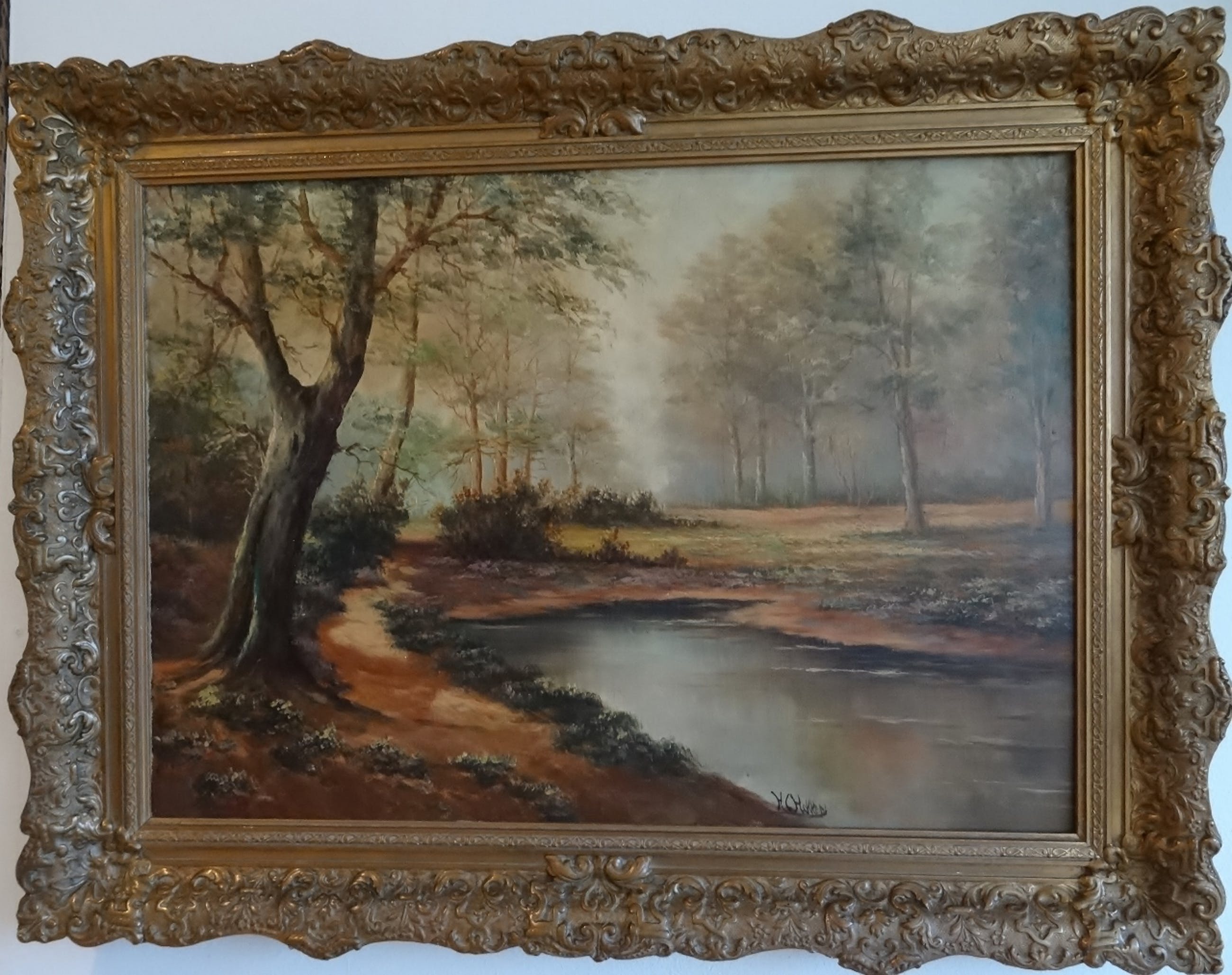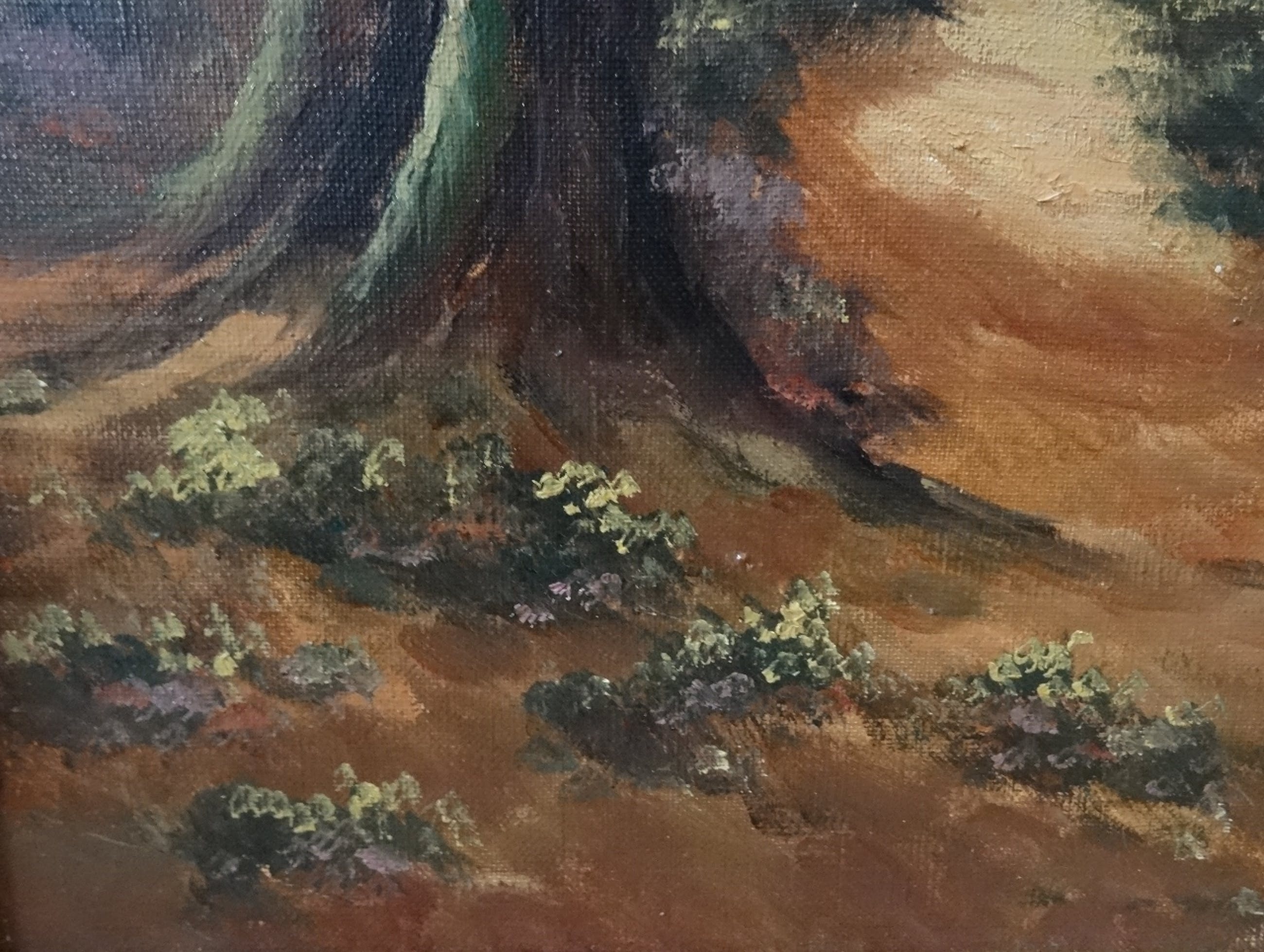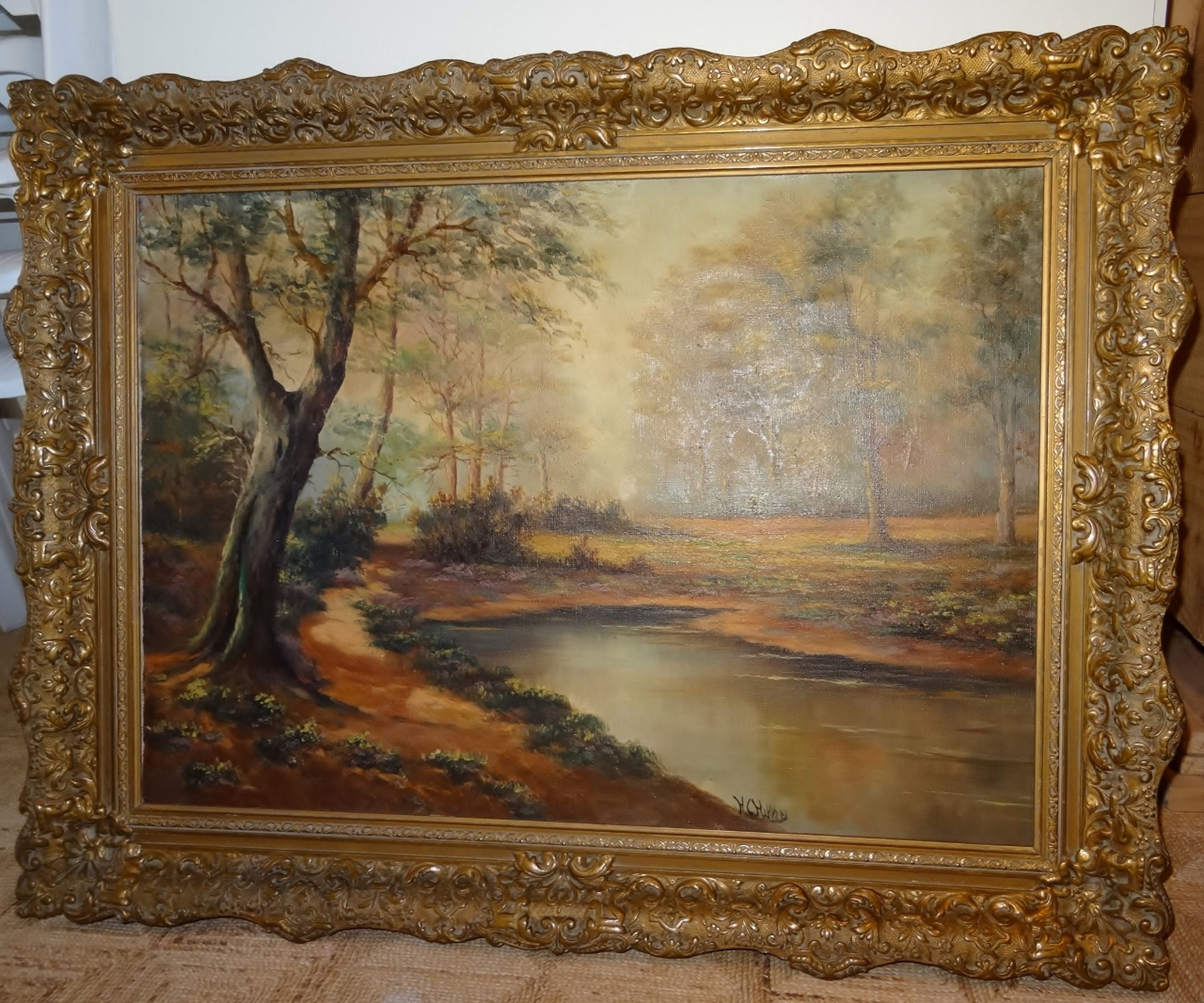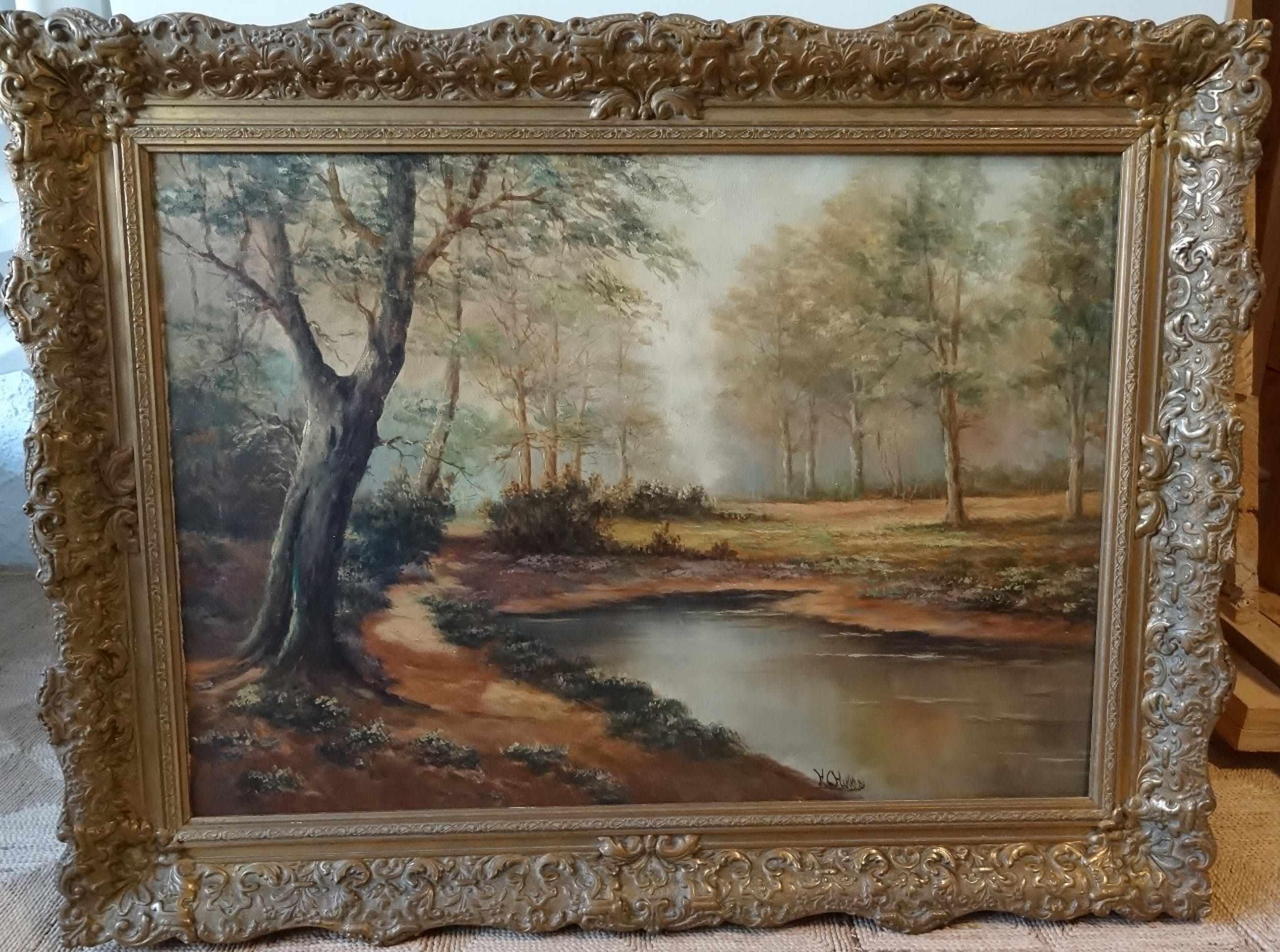 Dit schilderij is een mooi voorbeeld van een bosgezicht van H.C. Hokken. Het schilderij is waarschijnlijk ouder dan 60 jaar en in goede conditie. Hokken is bekend geworden door zijn schilderijen van eendjes en bosgezichten. Hokken had een winkel in Sliedrecht, waar hij werken van zichzelf en andere kunstenaars verkocht. Ook was hij lijstenmaker.