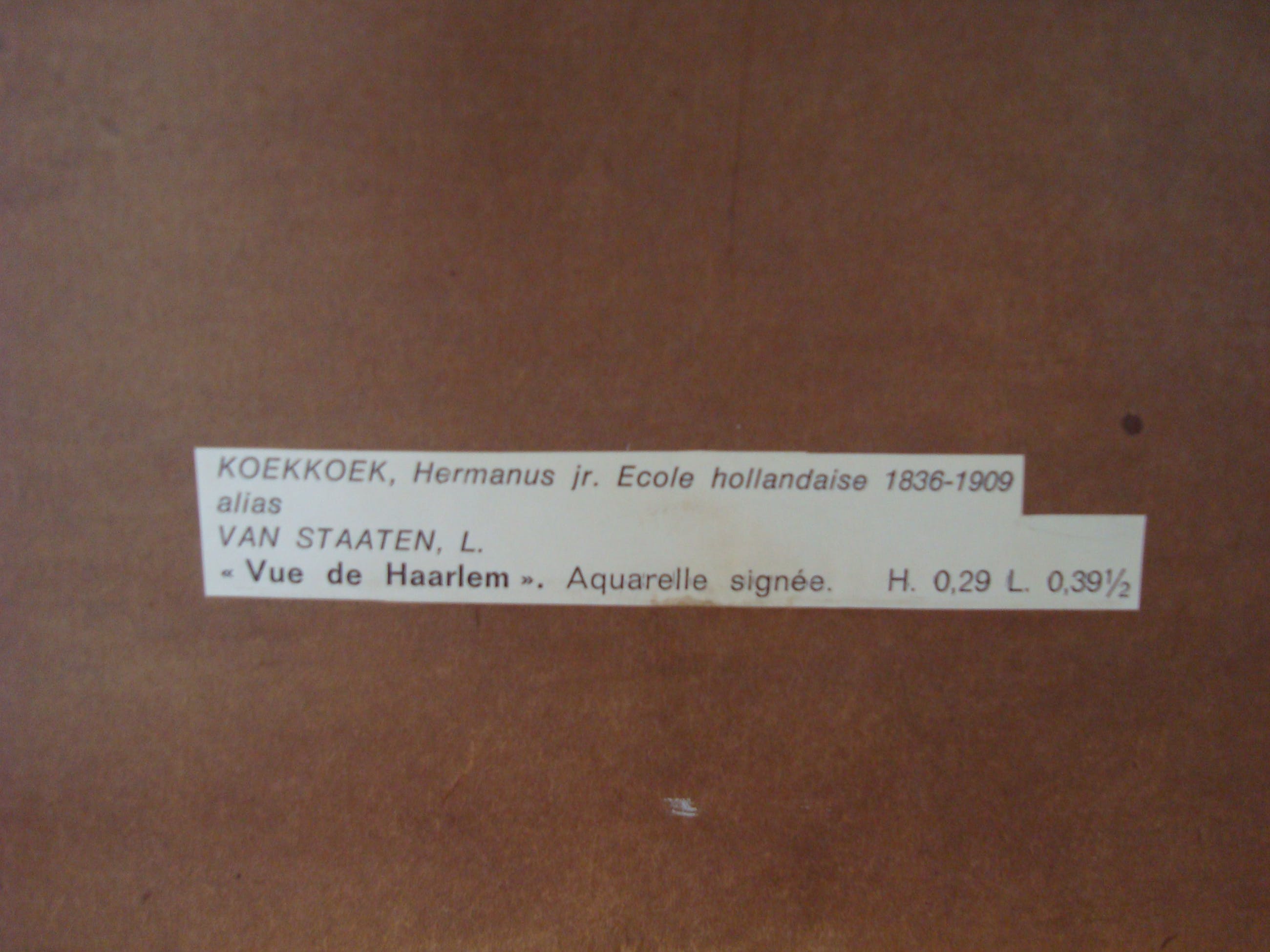 Werk is r.o. gesigneerd met L. van Staaten, een pseudoniem wat hij gebruikte tijdens zijn periode in Londen. Het aquarel verkeert in een bijzonder goede conditie, geen vlekken of verkleuringen etc. zichtbaar.