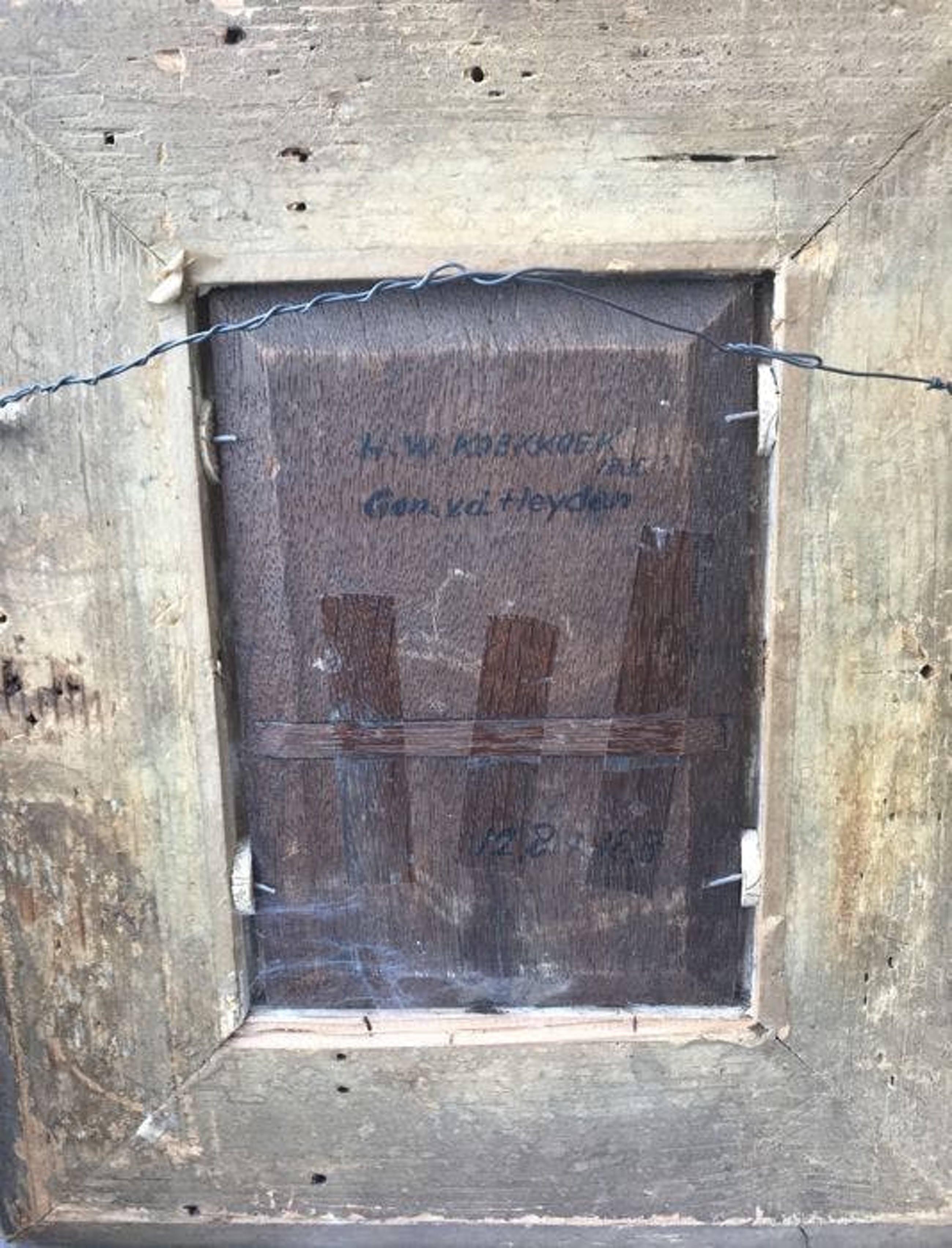 Bijzonder portret van een generaal waar veel info over is. Gemaakt in opdracht door bekend schilder van militaire taferelen. Links onder Gemonogrammeerd en zit in een antieke lijst uit de tijd. Werkje is postuum geschilderd en stelt de gemaal in zijn jongere jaren voor. Werk staat in de databank van het RKD. Erg bijzonder werkje doordat er niet veel olieverf portretten bekend zijn van H.W Koekkoek. In goede staat en kan zo aan de muur. Dit schilderij is gevraagd deel te nemen aan de tentoonstelling van HW Koekkoek bij het koekoek-Haus.