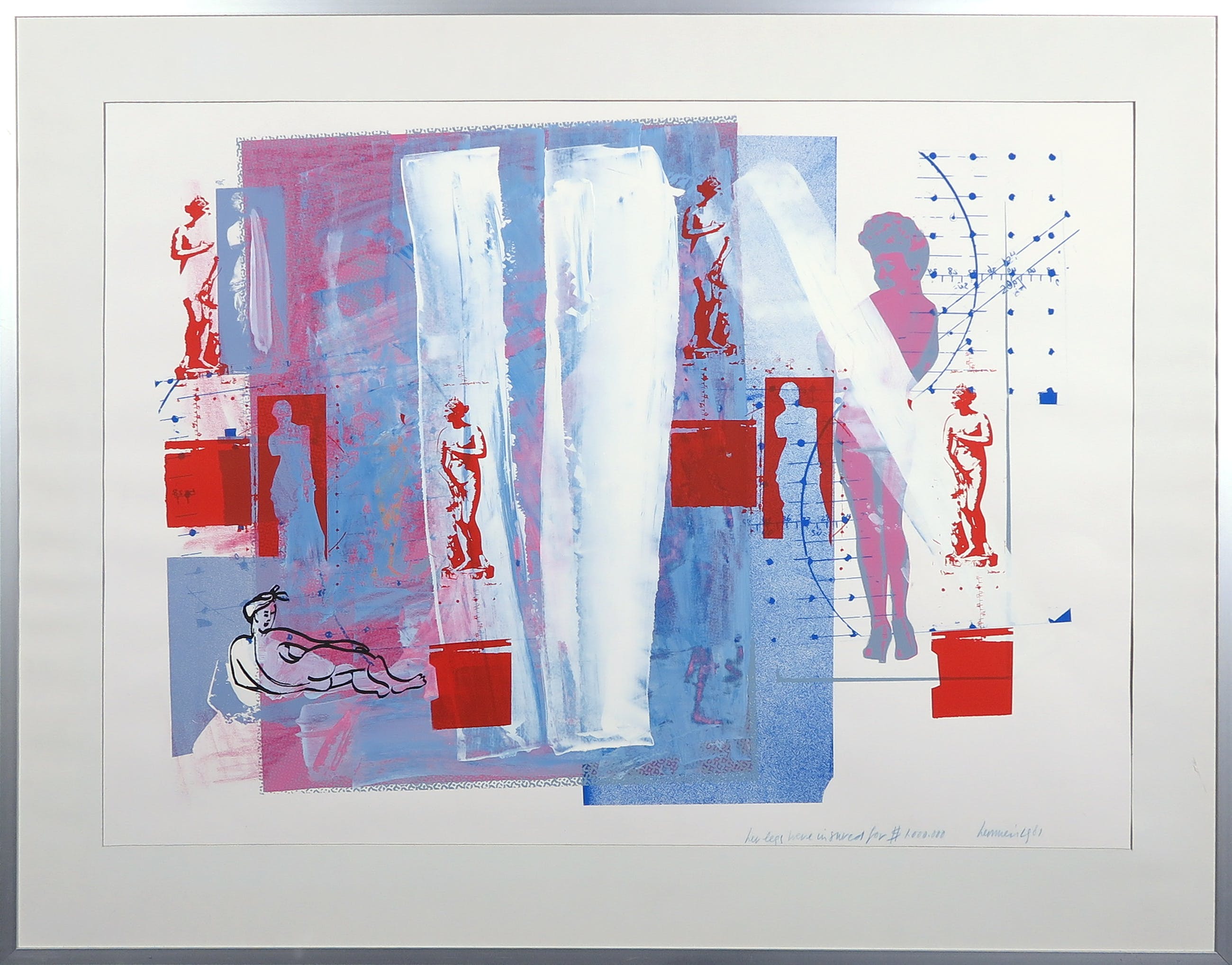 Het werk bevat geen glasplaat. Het passe-partout is heeft hier en daar een lichte golving in het blad. Verder is het werk in goede staat. | |