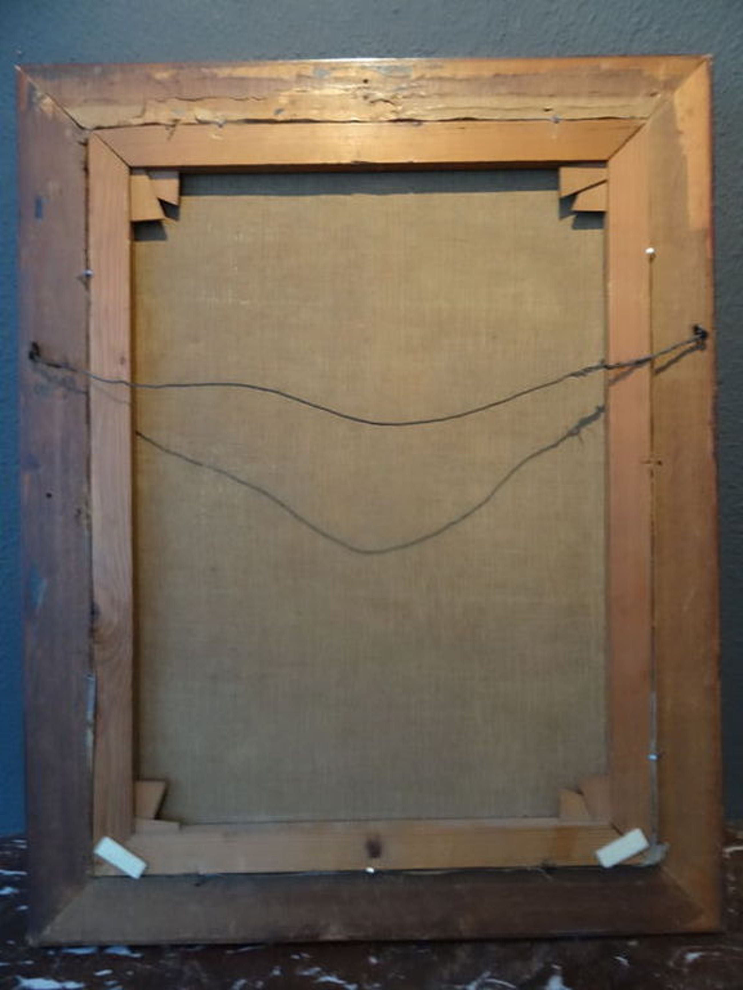 Het schilderij heeft een mooi donker / zwart frame met een gedetailleerde gouden inleg.