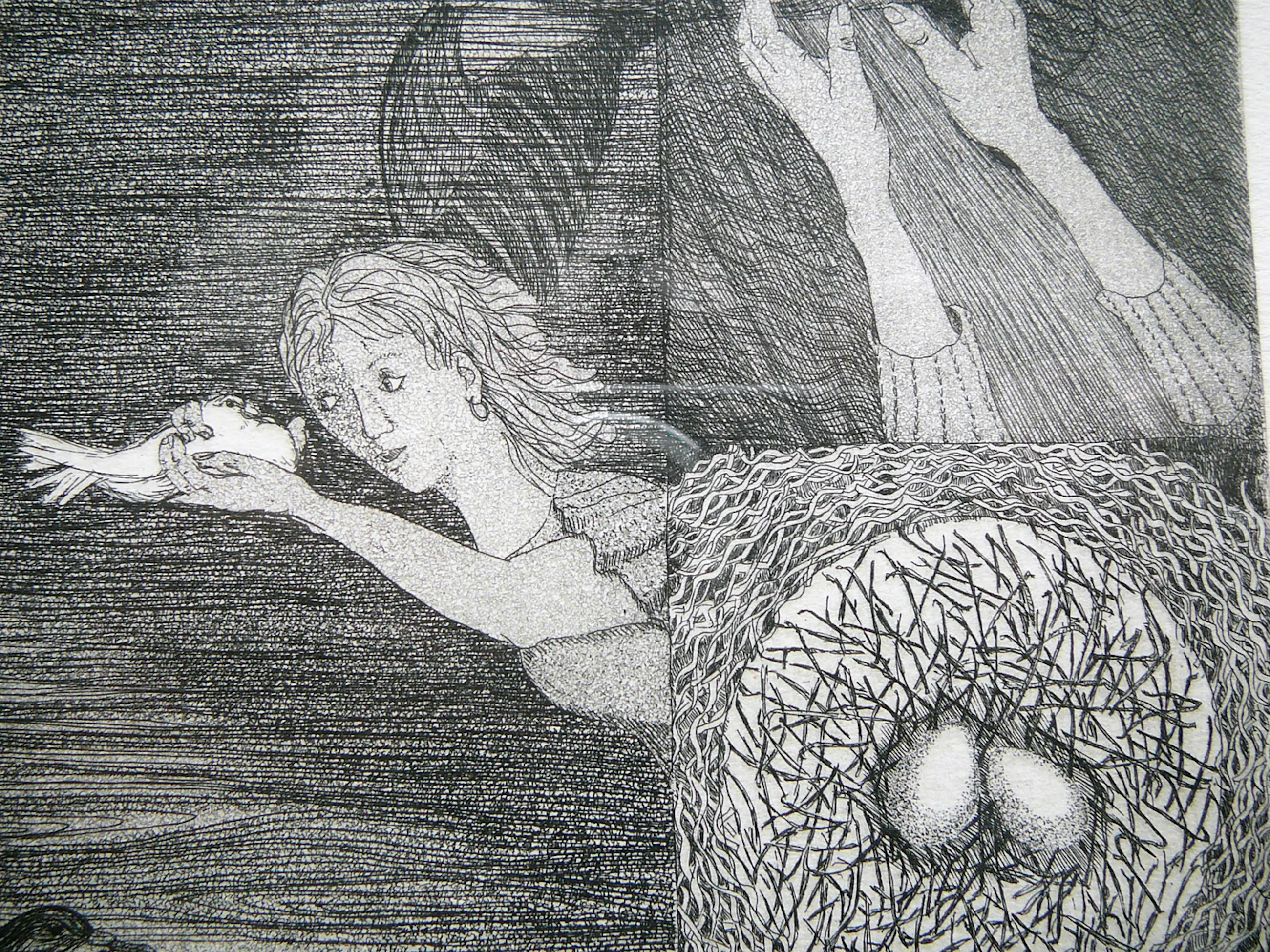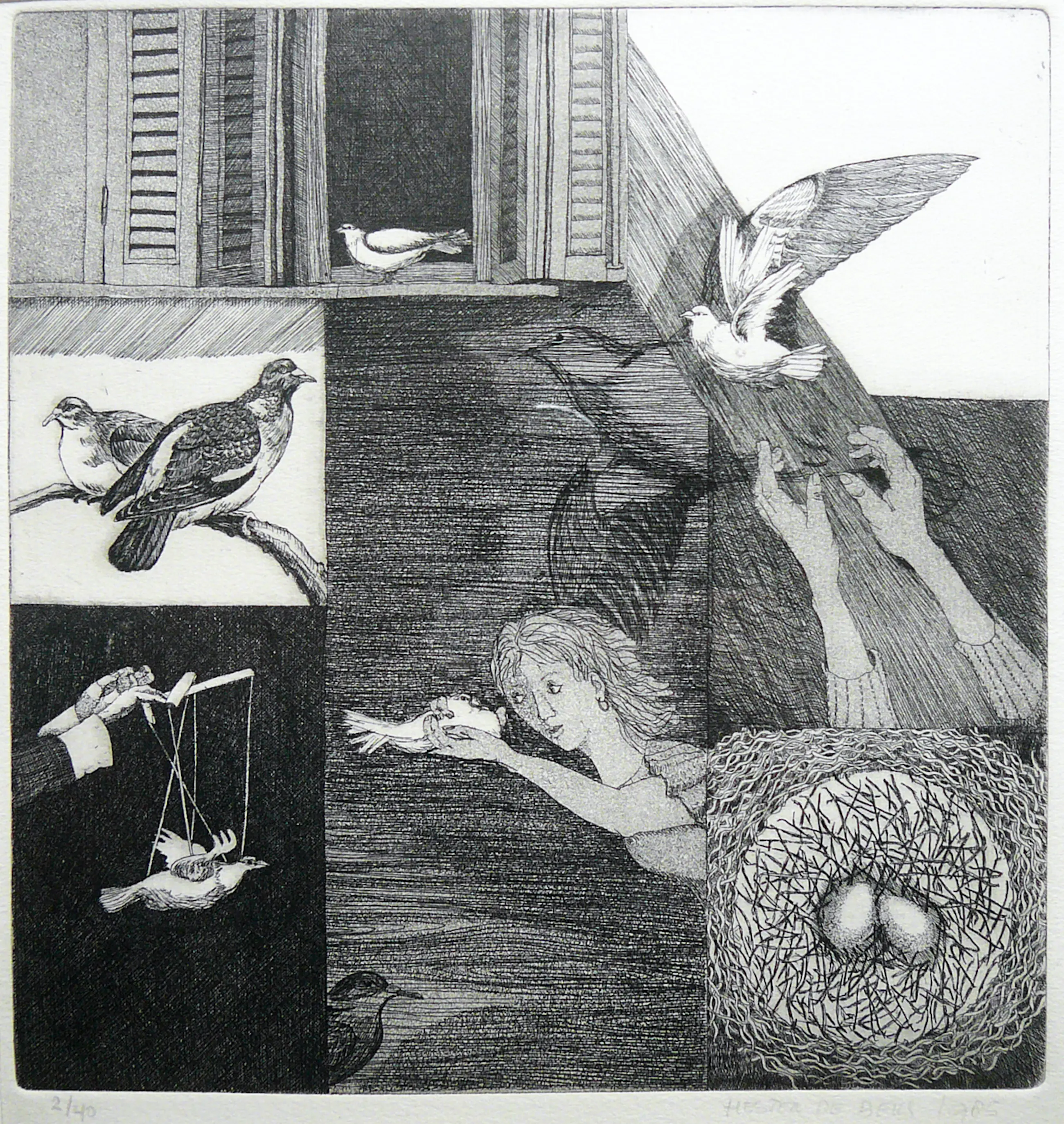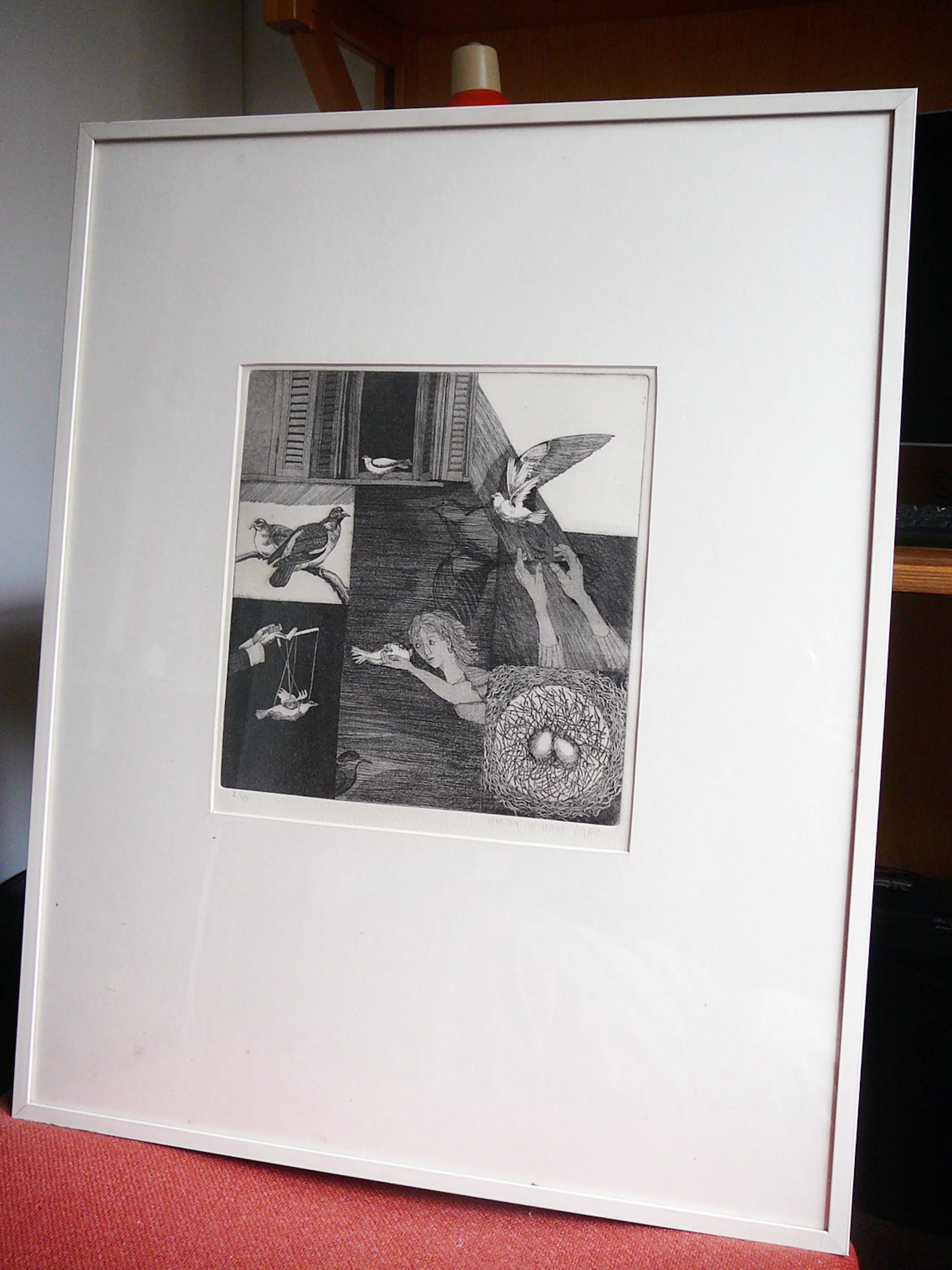 Fraaie ets van de hand van Hester de Beus uit 1985. Potlood gesigneerd en In perfecte staat. Degelijke , wit gelakte barthlijst. Herkomst SBK Amsterdam.