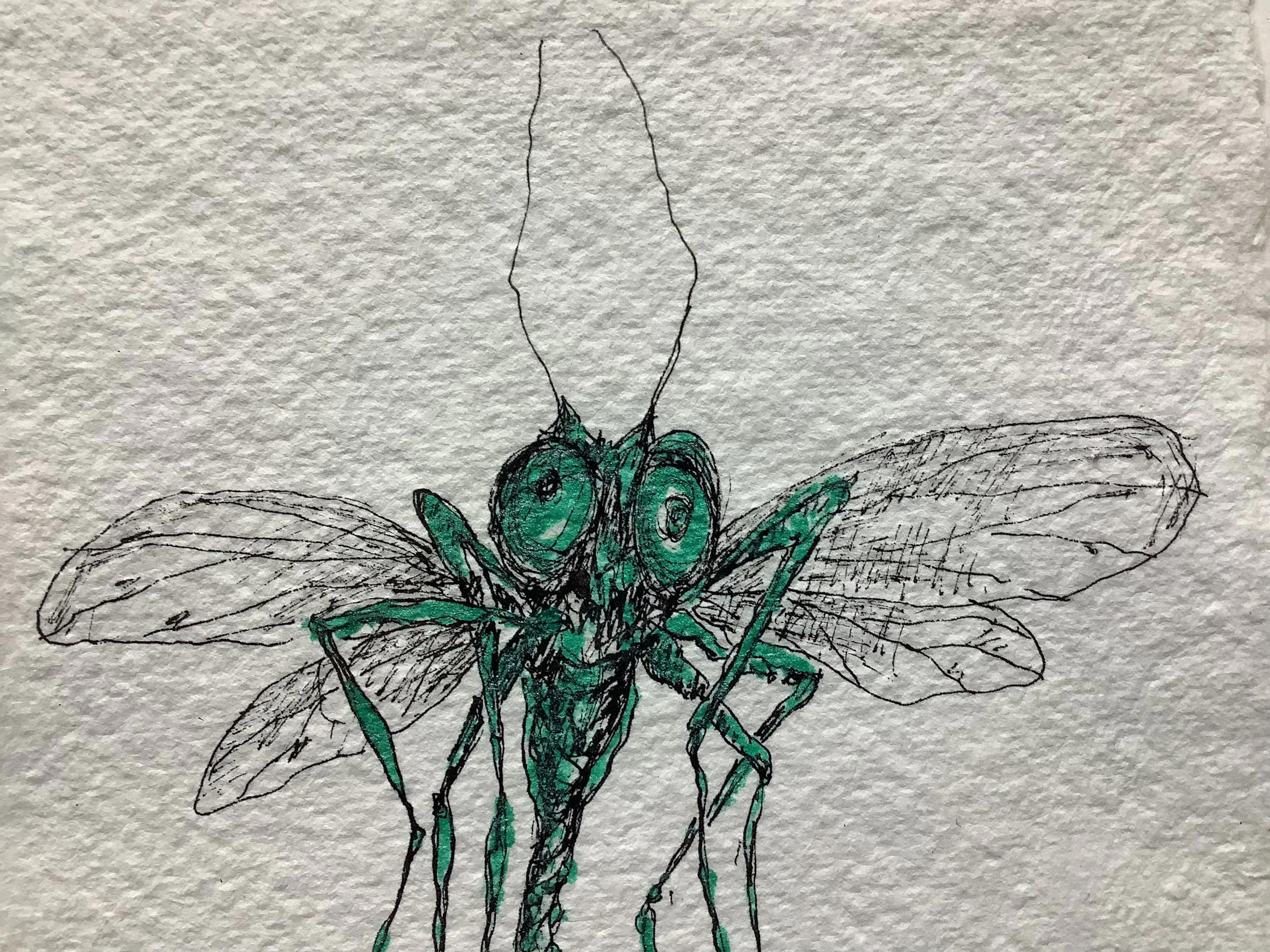 Techniek: Oost-indische inkt, ecoline, gemengde techniek op geschept papier.