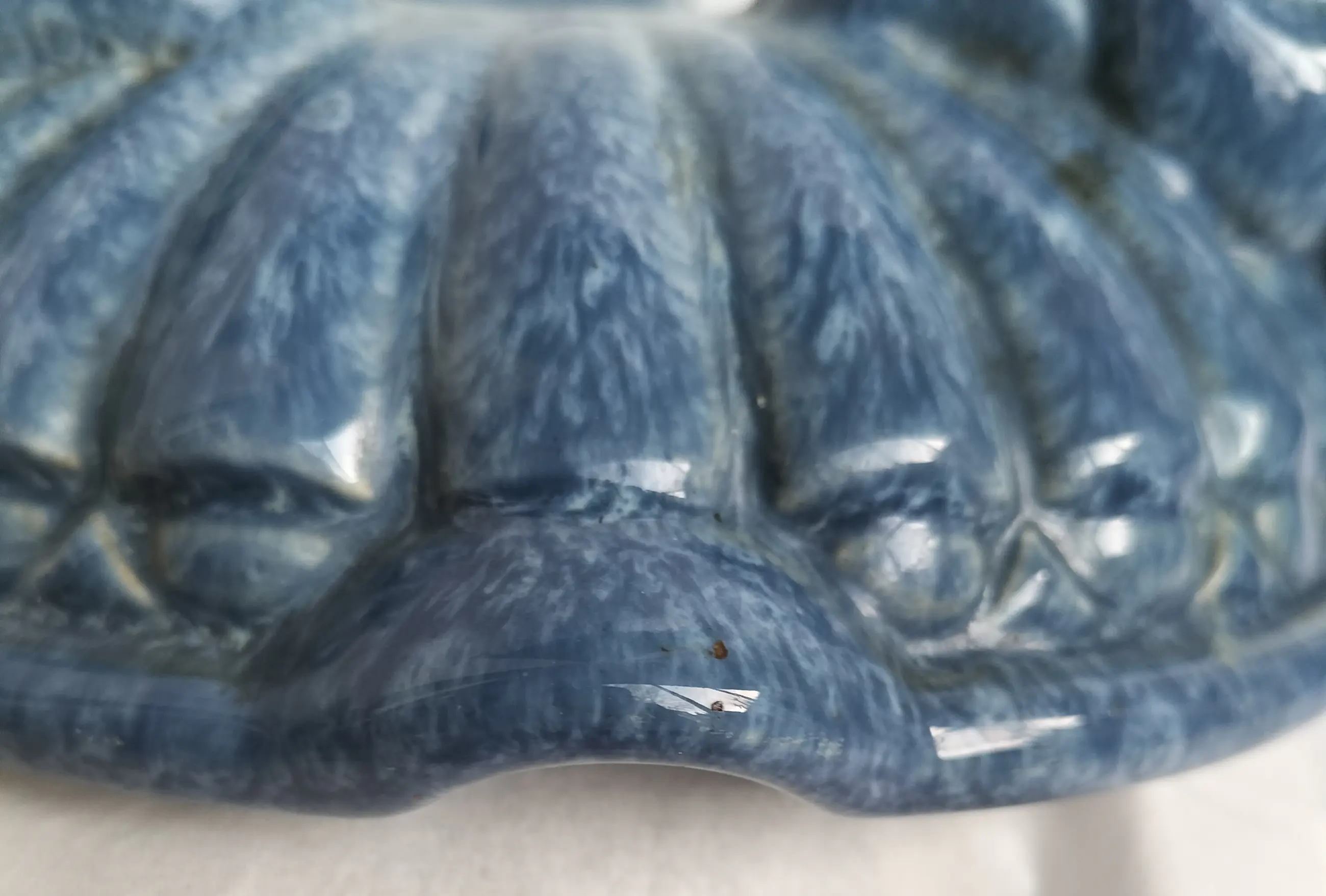 De asbak is in uitstekende staat, maar helaas heeft iemand (niet ik) een provisorische restauratie bij een chip aan de onder/zijkant gedaan, de kleur is niet geslaagd (zie laatste foto), maar toch valt de beschadiging niet zo op. Verder is de asbak in zeer fraaie staat, geen andere beschadigingen, het glazuur is perfect.