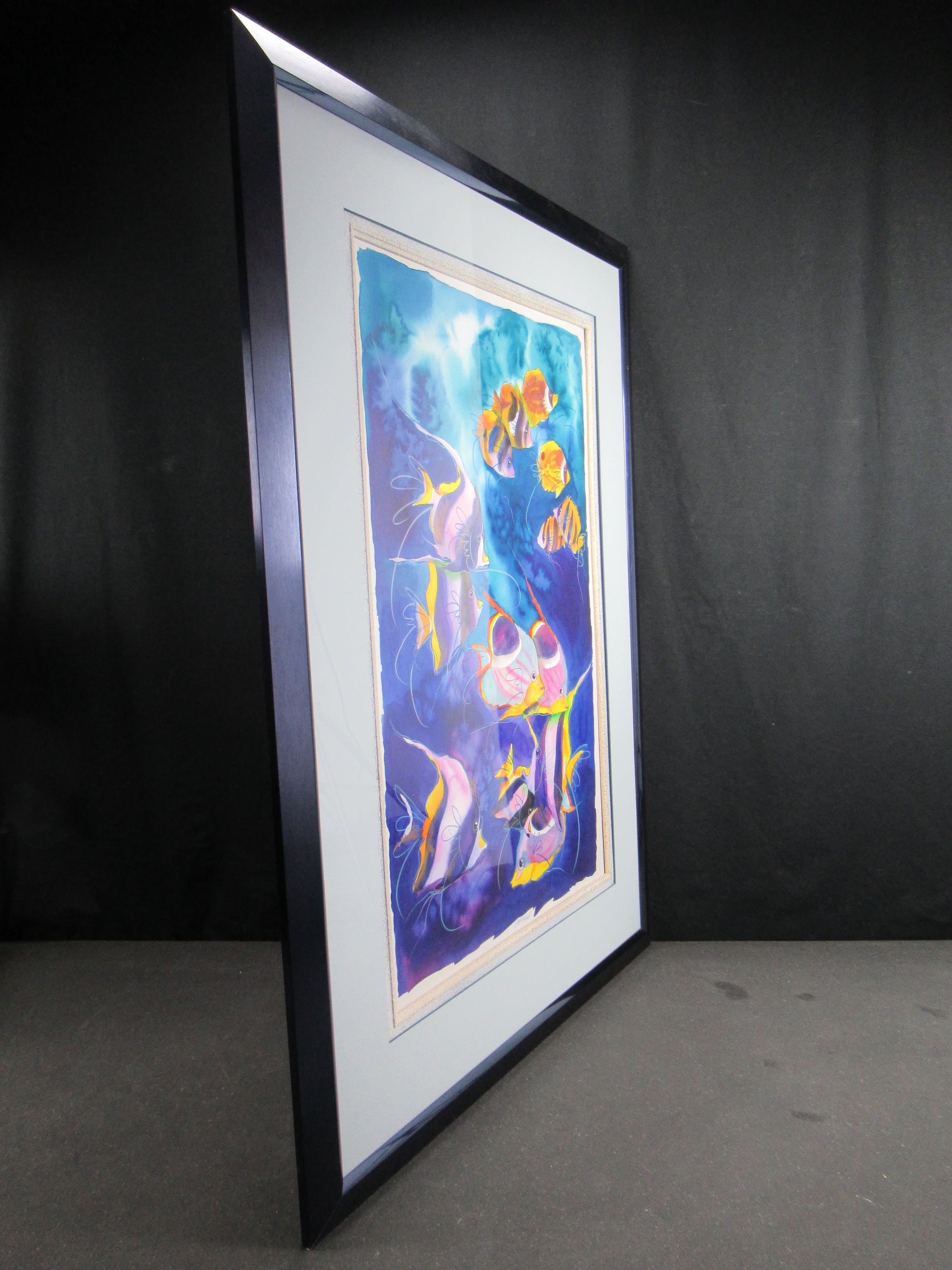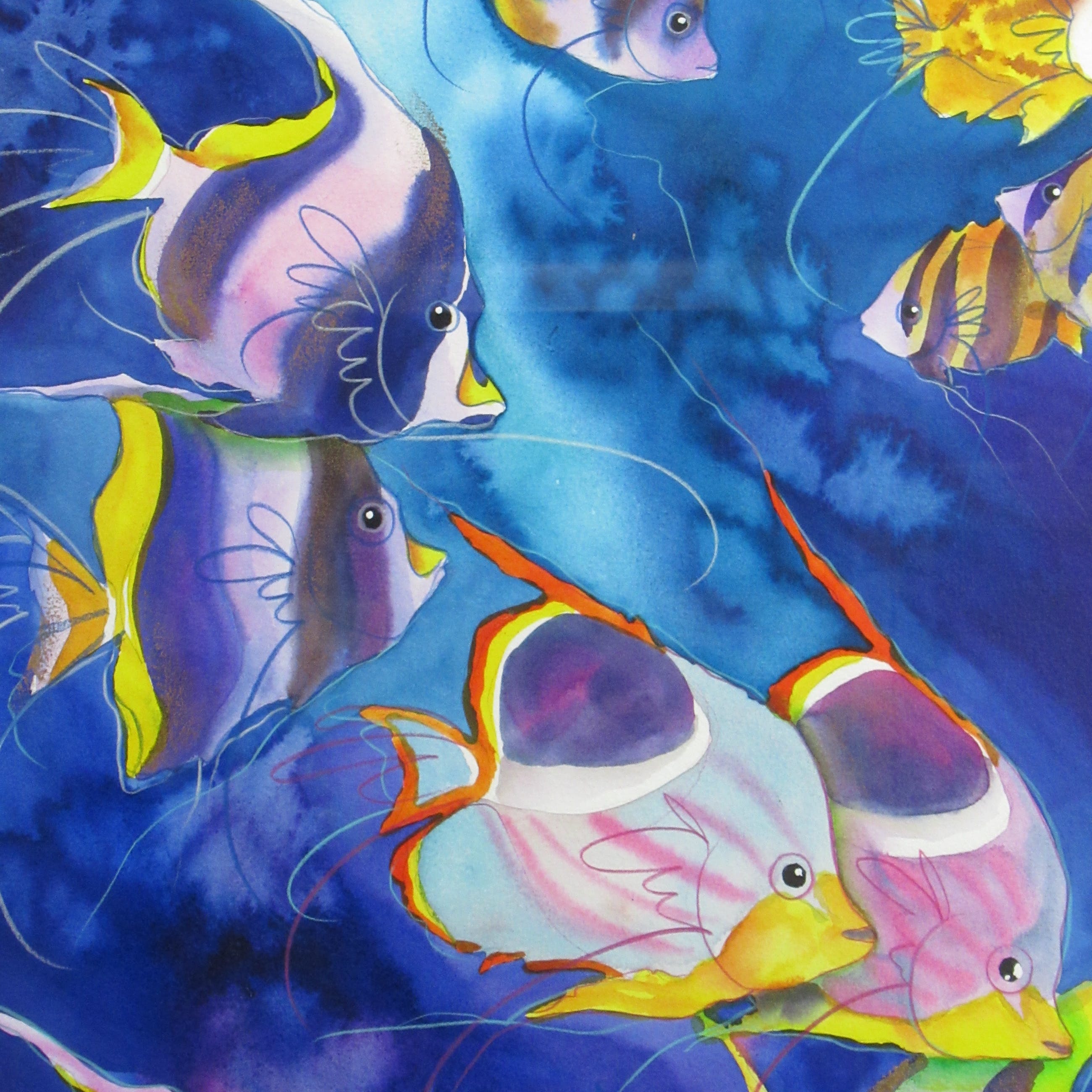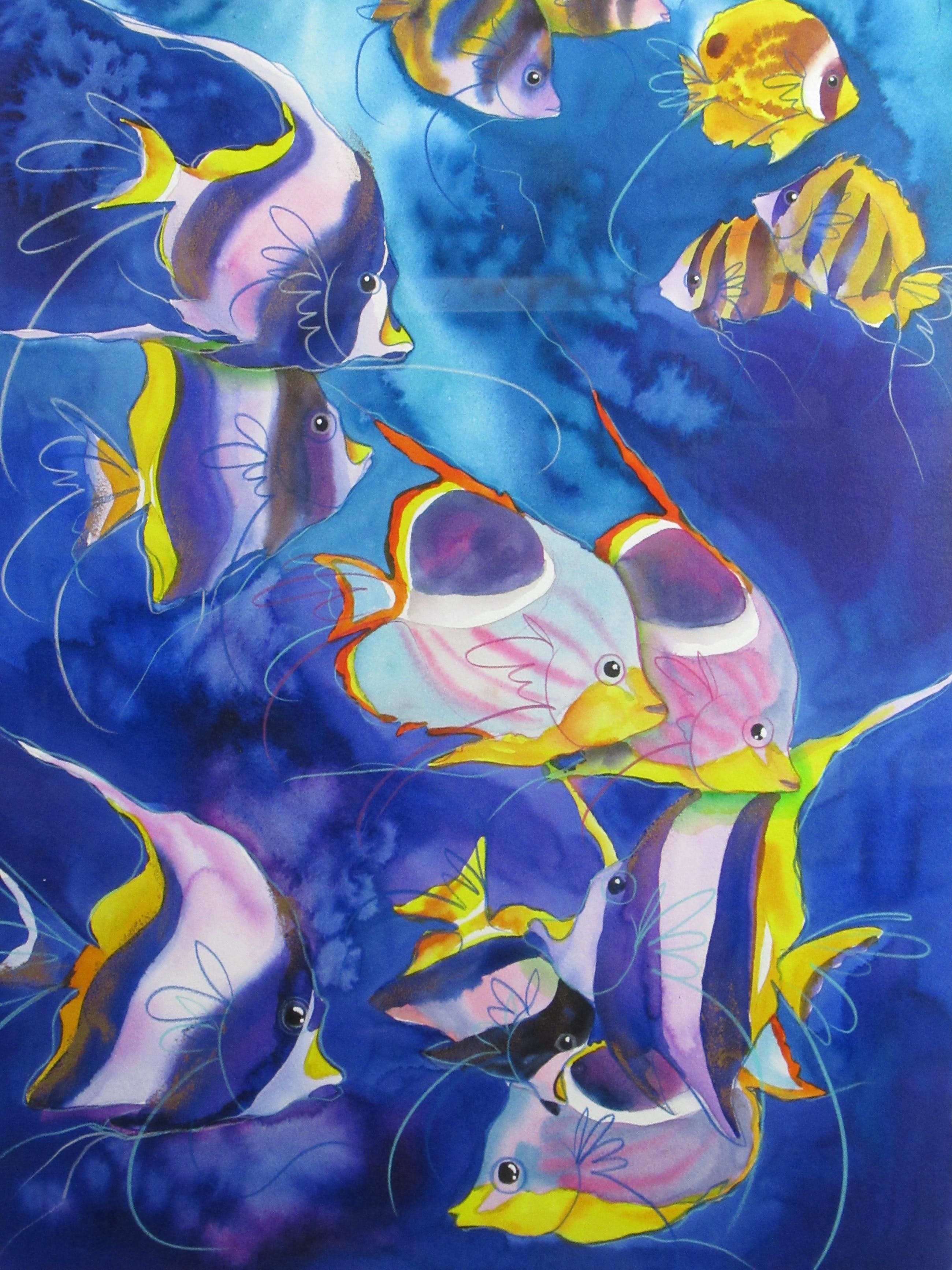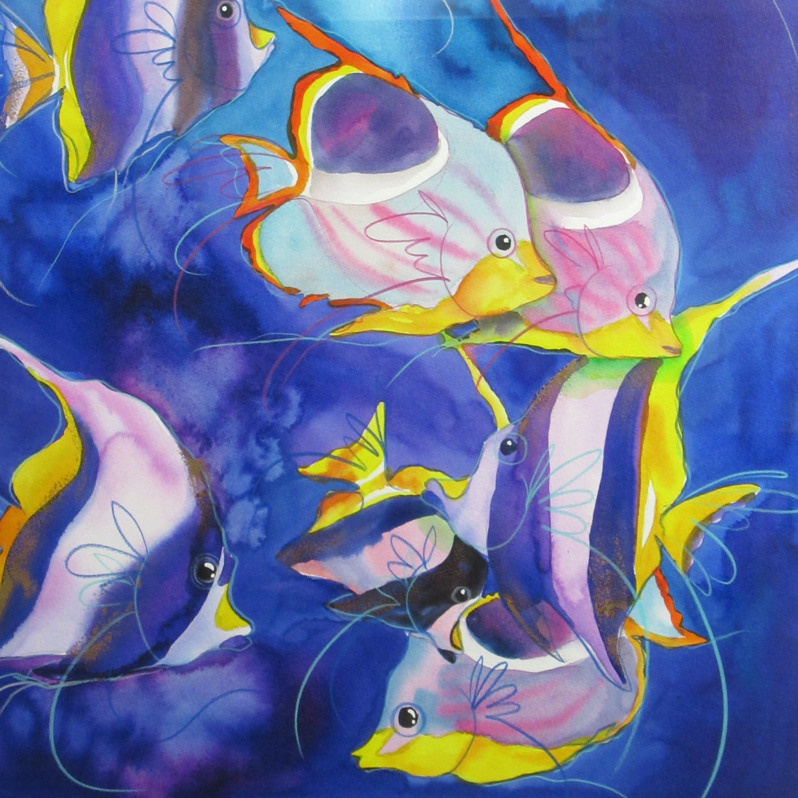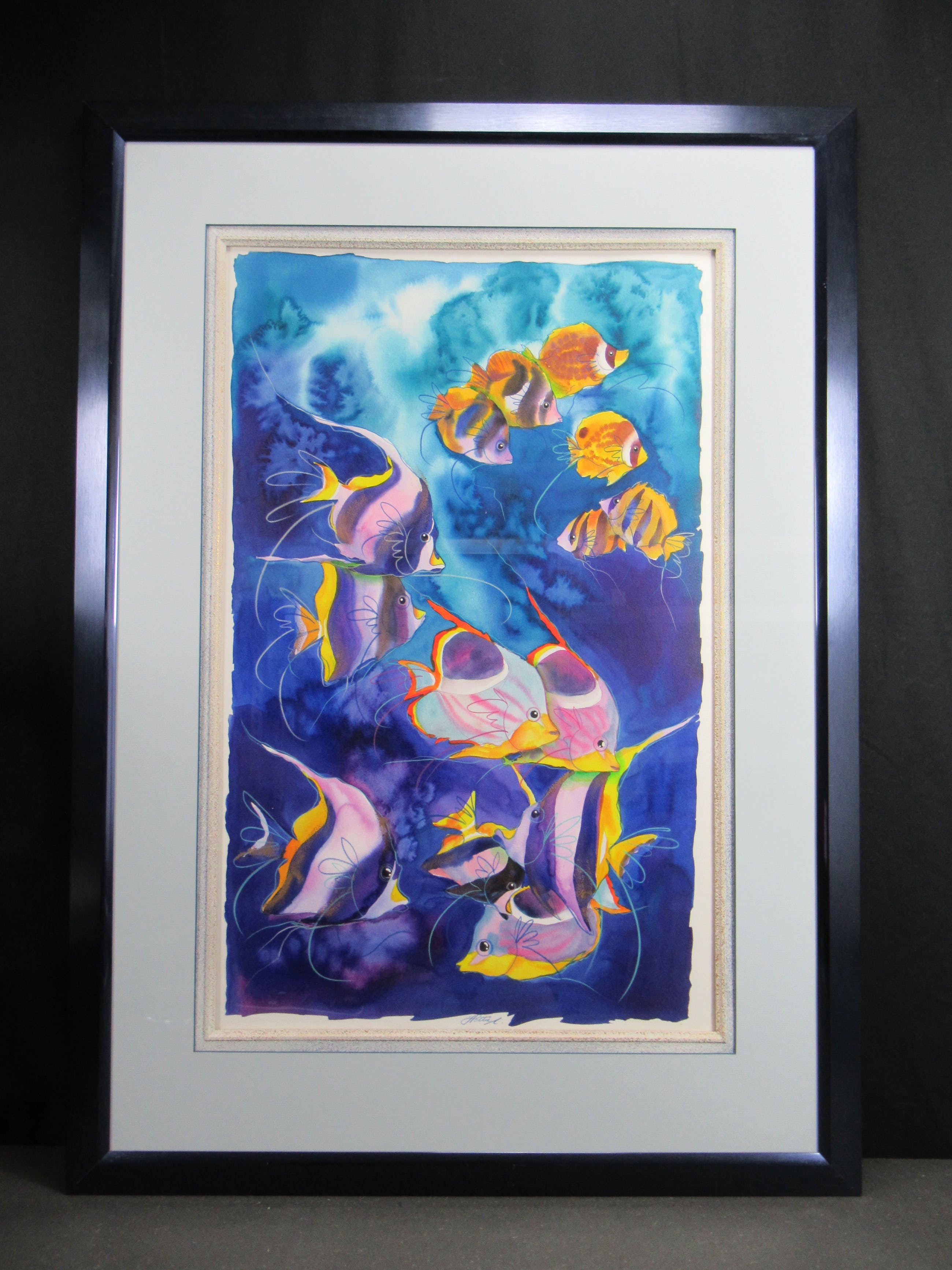 Vrolijk werk van formaat van de hand van de Zuid-Afrikaanse Hettie Saaiman. Het werk is professioneel ingelijst. Het heeft een mooie passe-partout. Kan direct aan de muur worden gehangen! Wordt zorgvuldig verpakt en gebracht binnen Nederland.