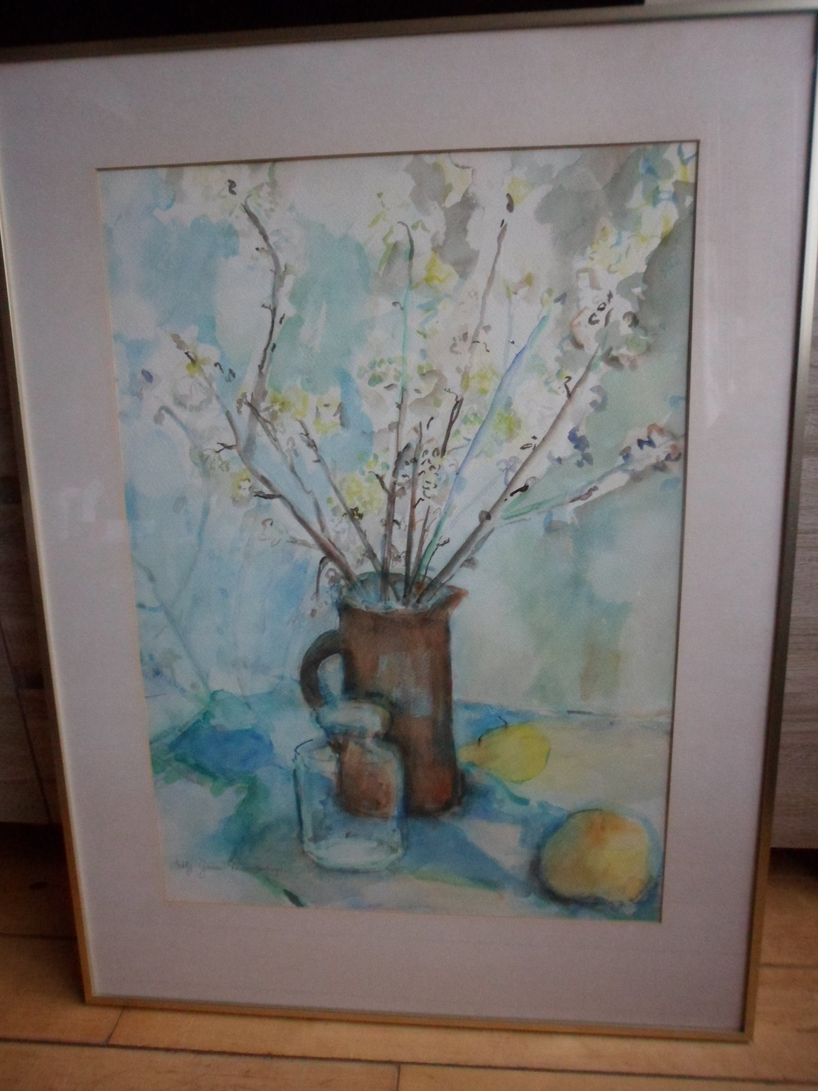 Mooie aquarel van Hetty Giezen-Nieuwenhuys. Het werk en lijst zijn goed van kwaliteit. Het werk kan zo aan de wand.