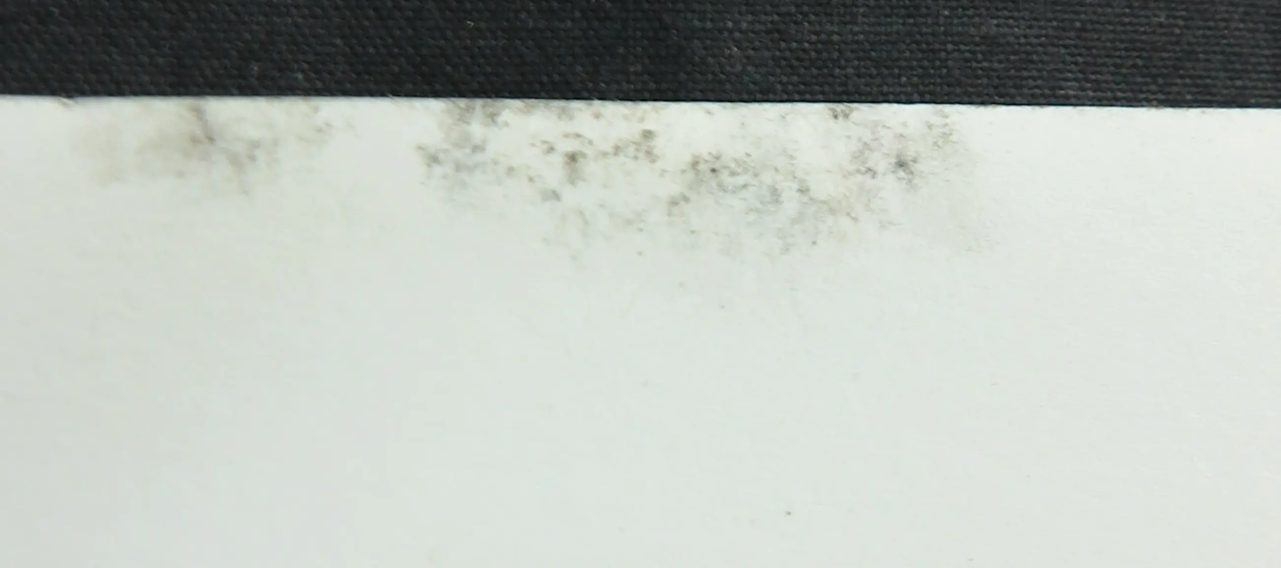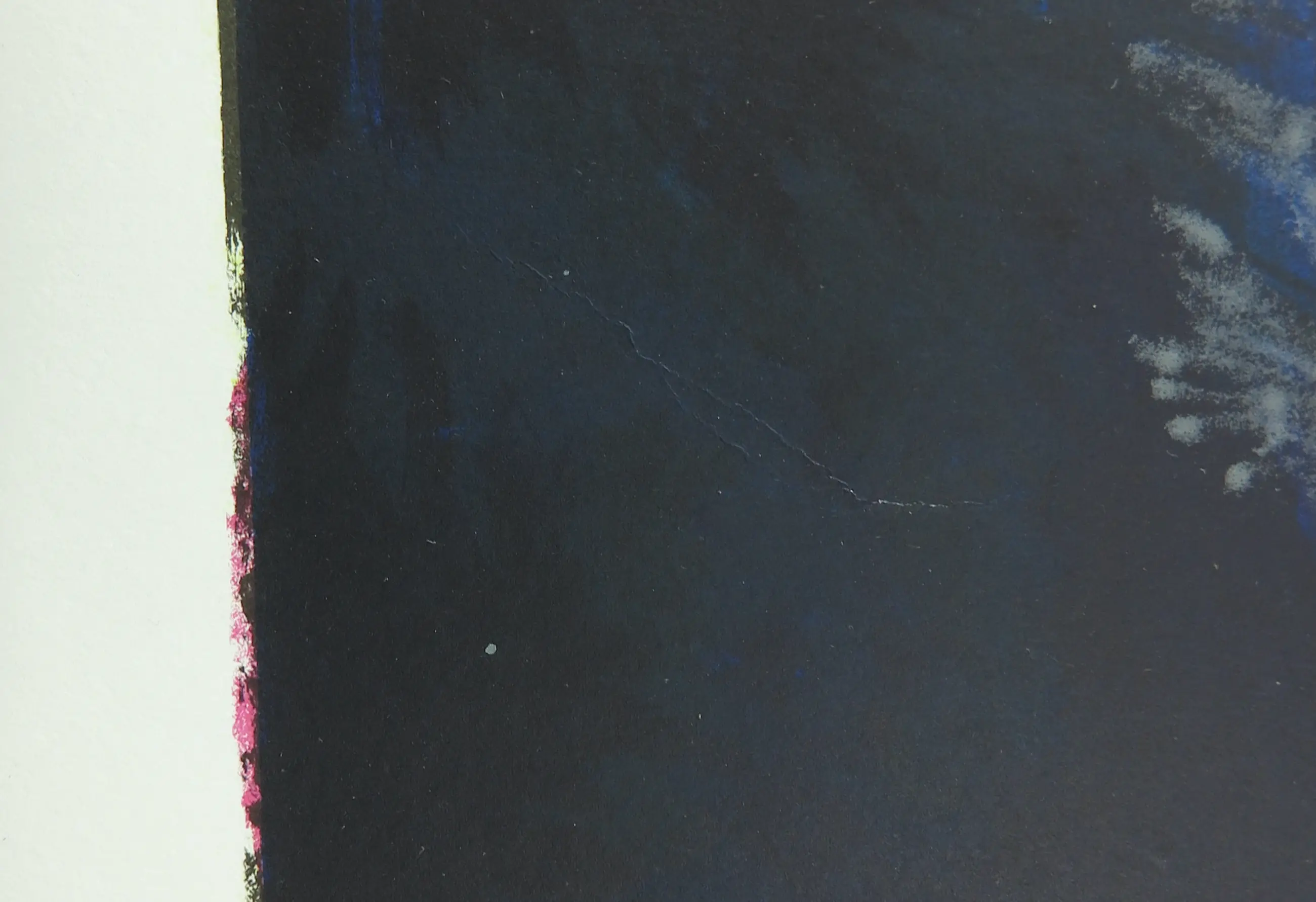 Enkel licht vlekjes, veegjes en vouwlijnen te zien. (Zie detailfoto's)