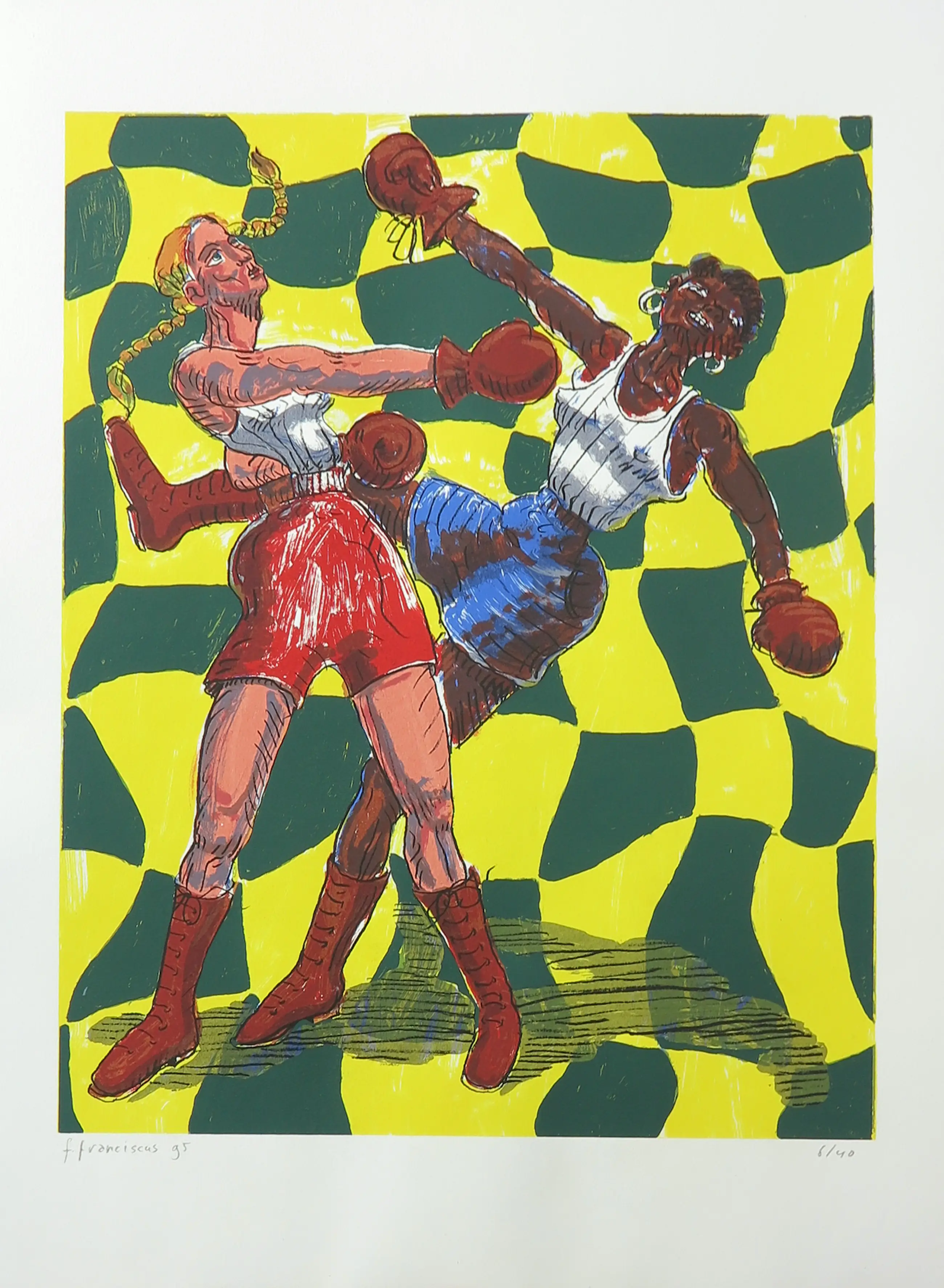 Techniek, conditie en afmetingen kunnen onderling verschillen. Het werk linksboven is ongesigneerd.