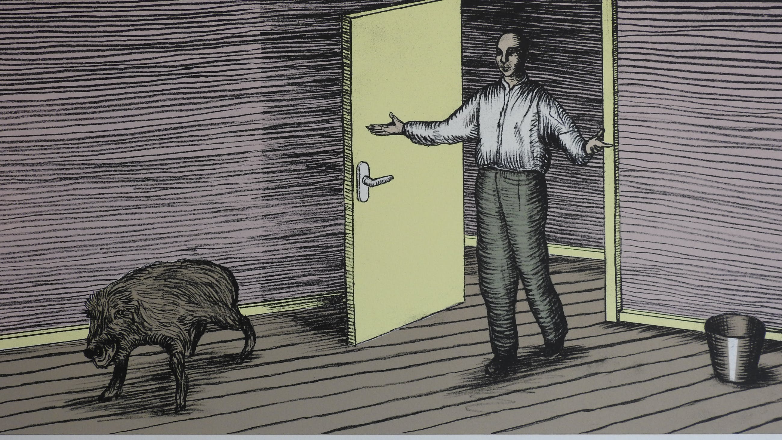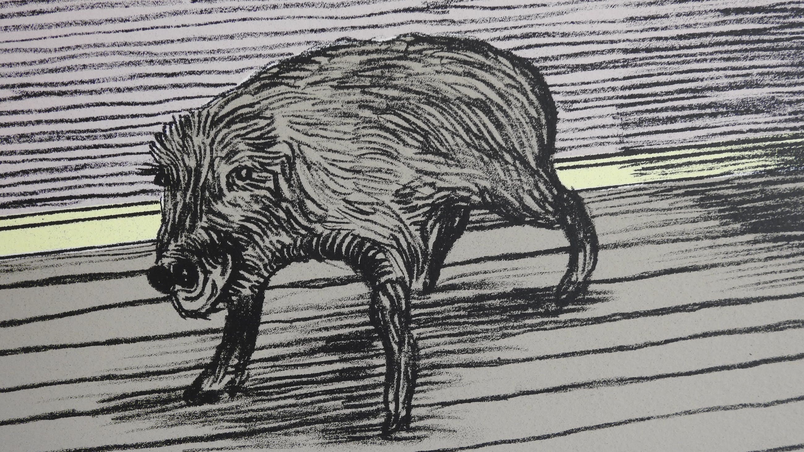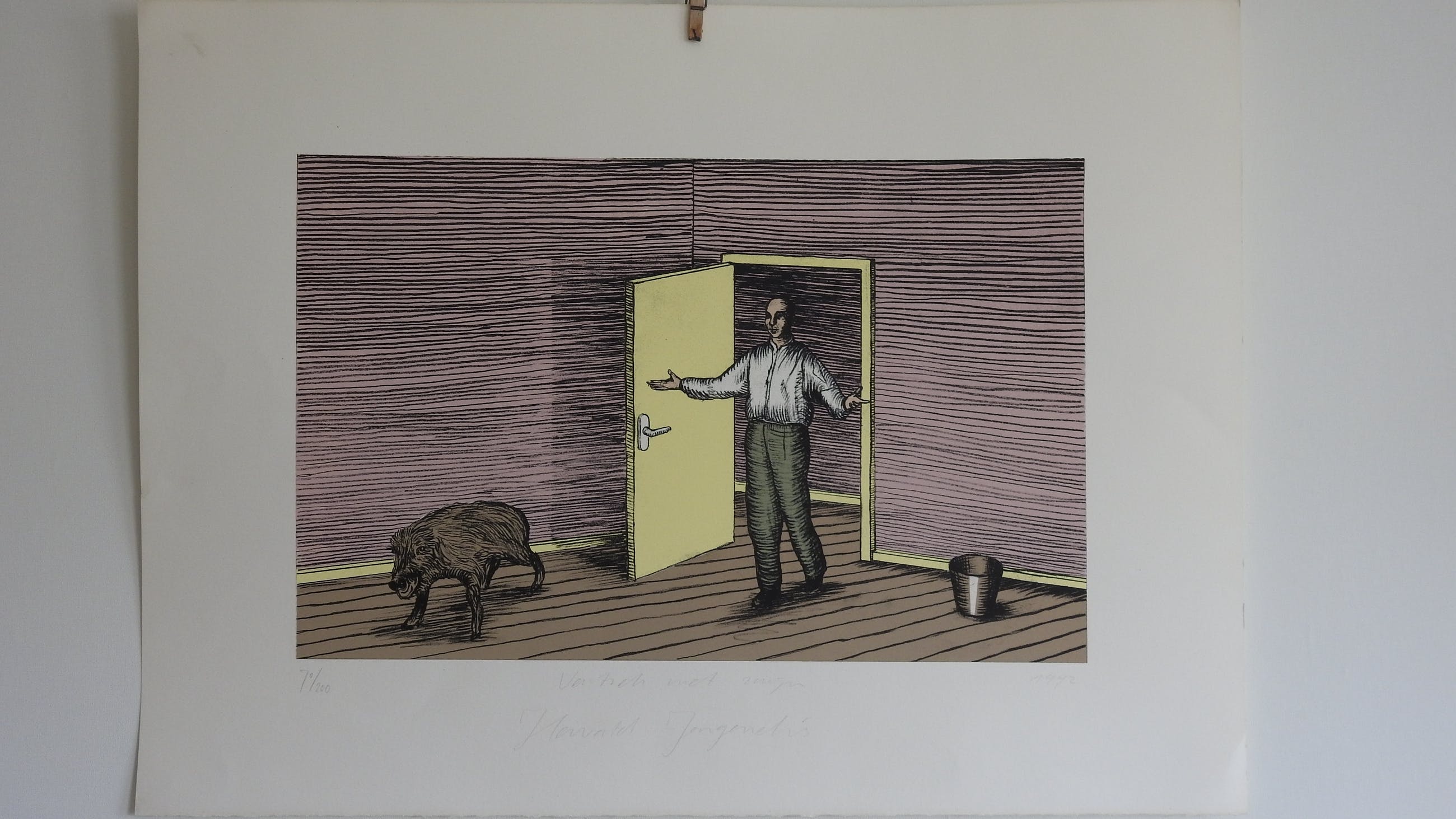 Vertrek met een zwijn - gesigneerde zeefdruk - 1992