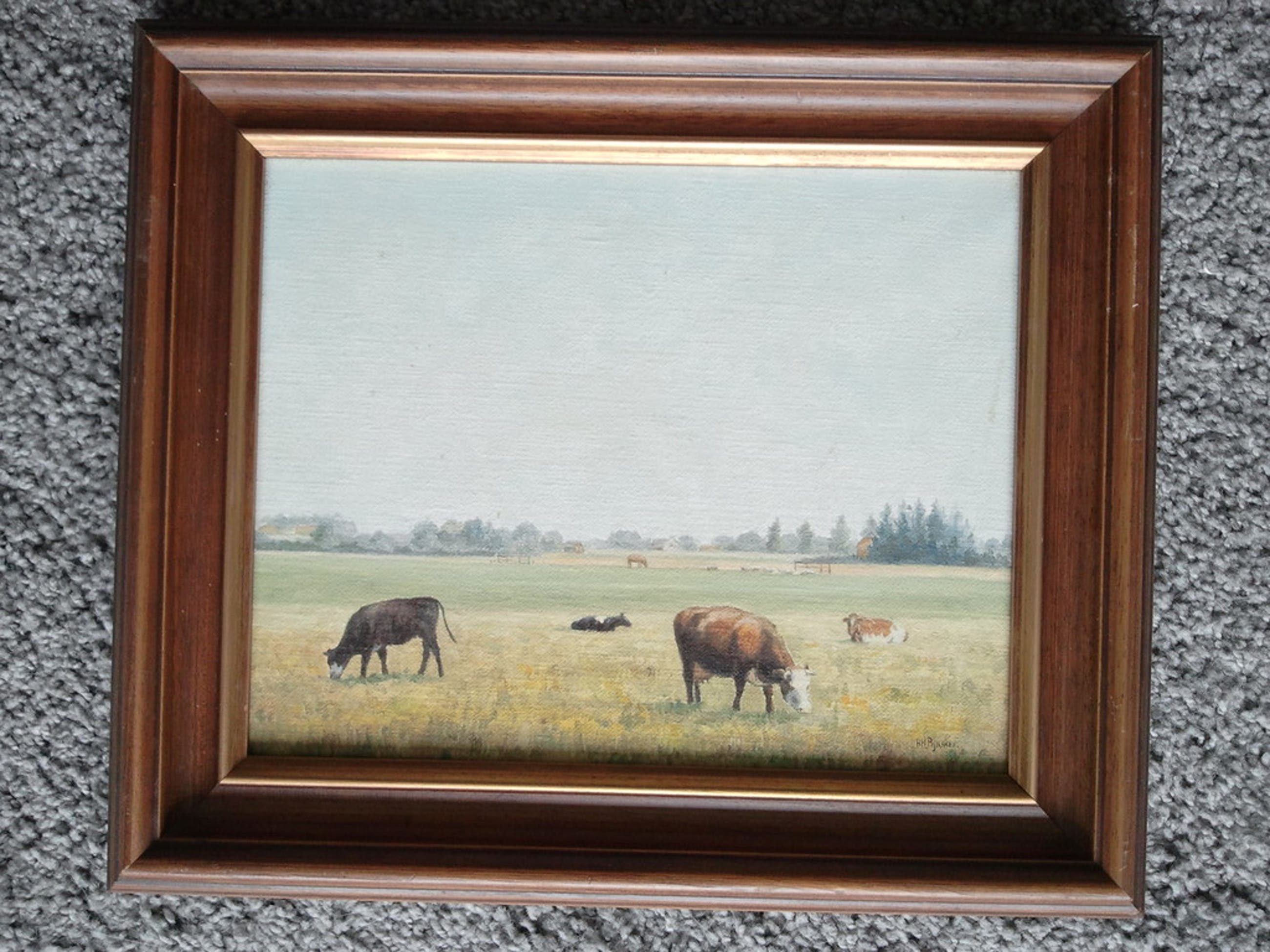 H.H. Pijnakker - Landschap met koeien doek - 24 x 30 cm