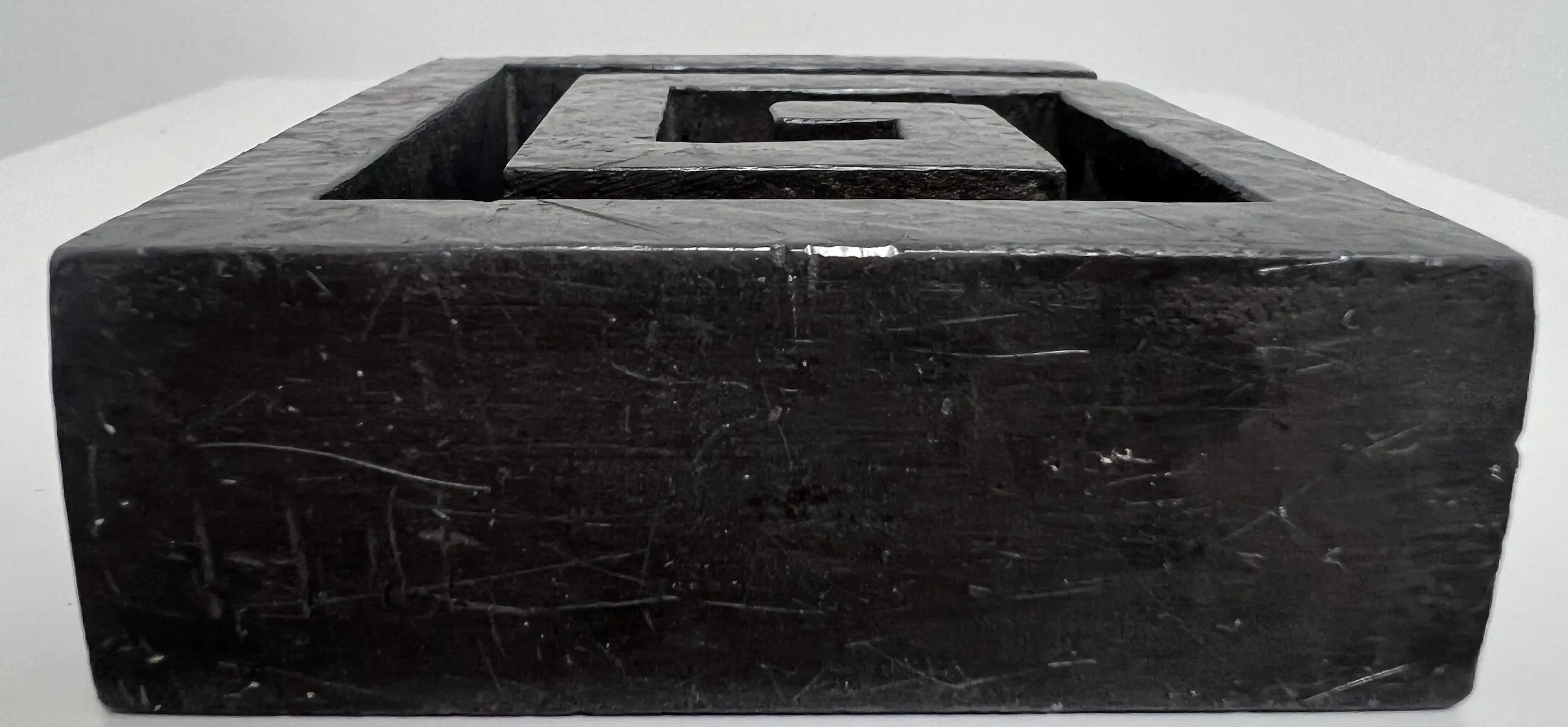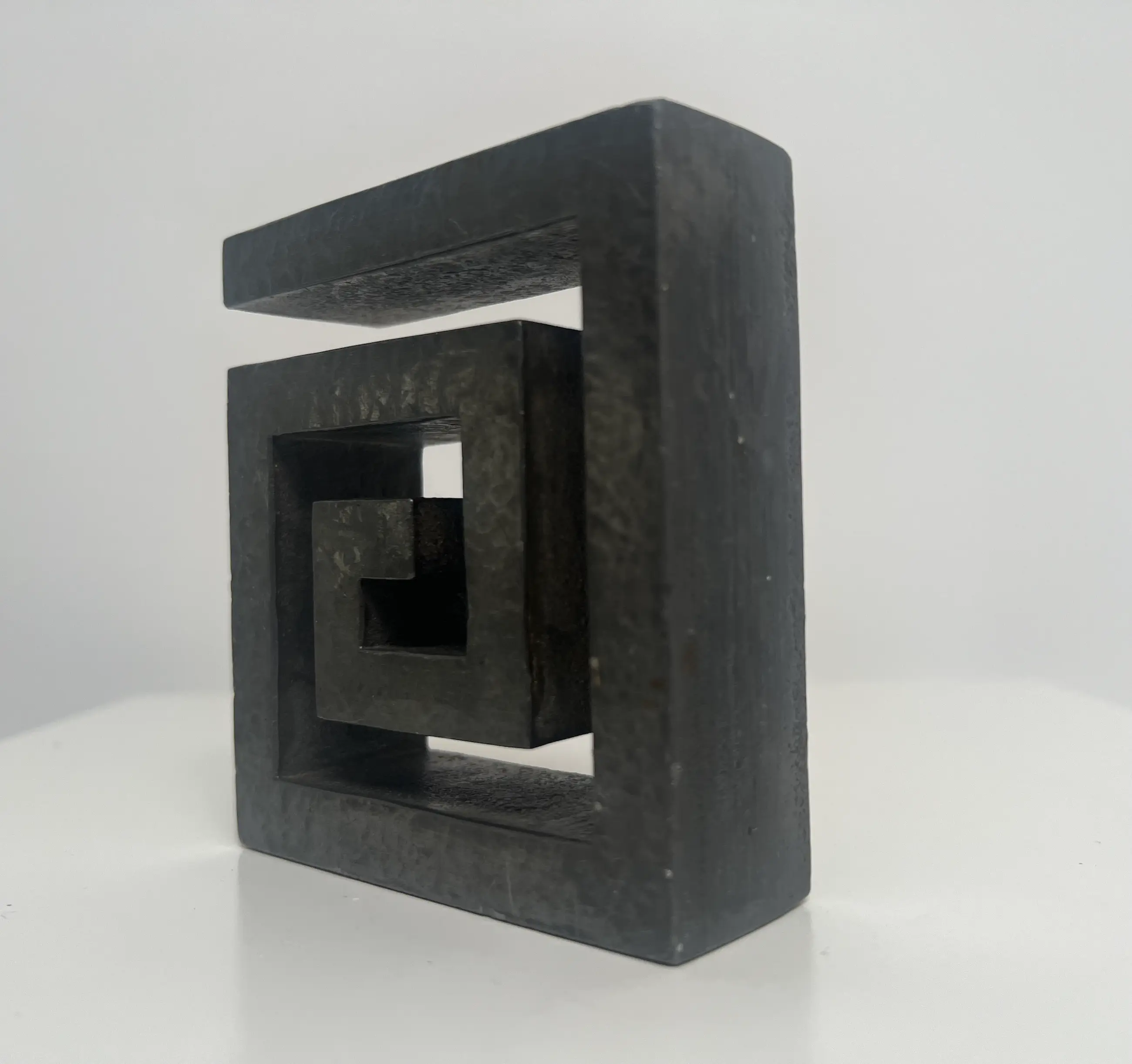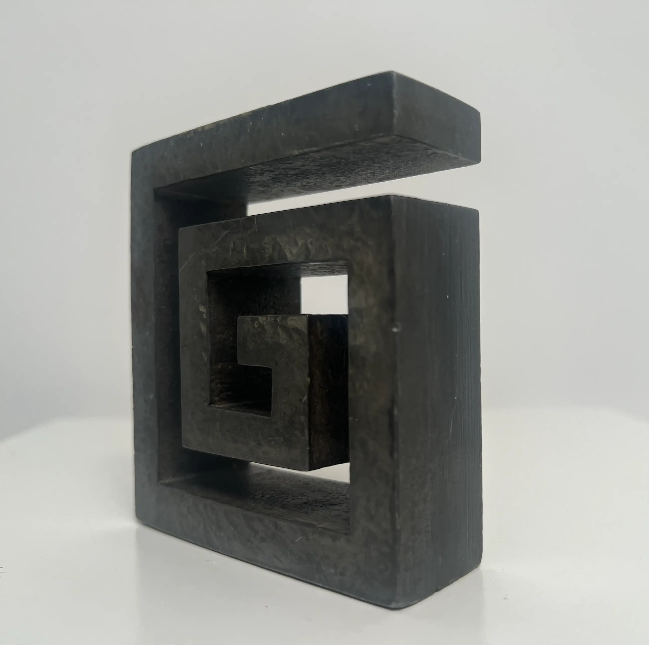 Bijzonder ijzeren sculptuur van de hand van Hil Andringa. Het zou ook brons kunnen zijn, maar dat is lastig te zien. De structuur aan de buitenzijde lijkt 'gehamerd'.