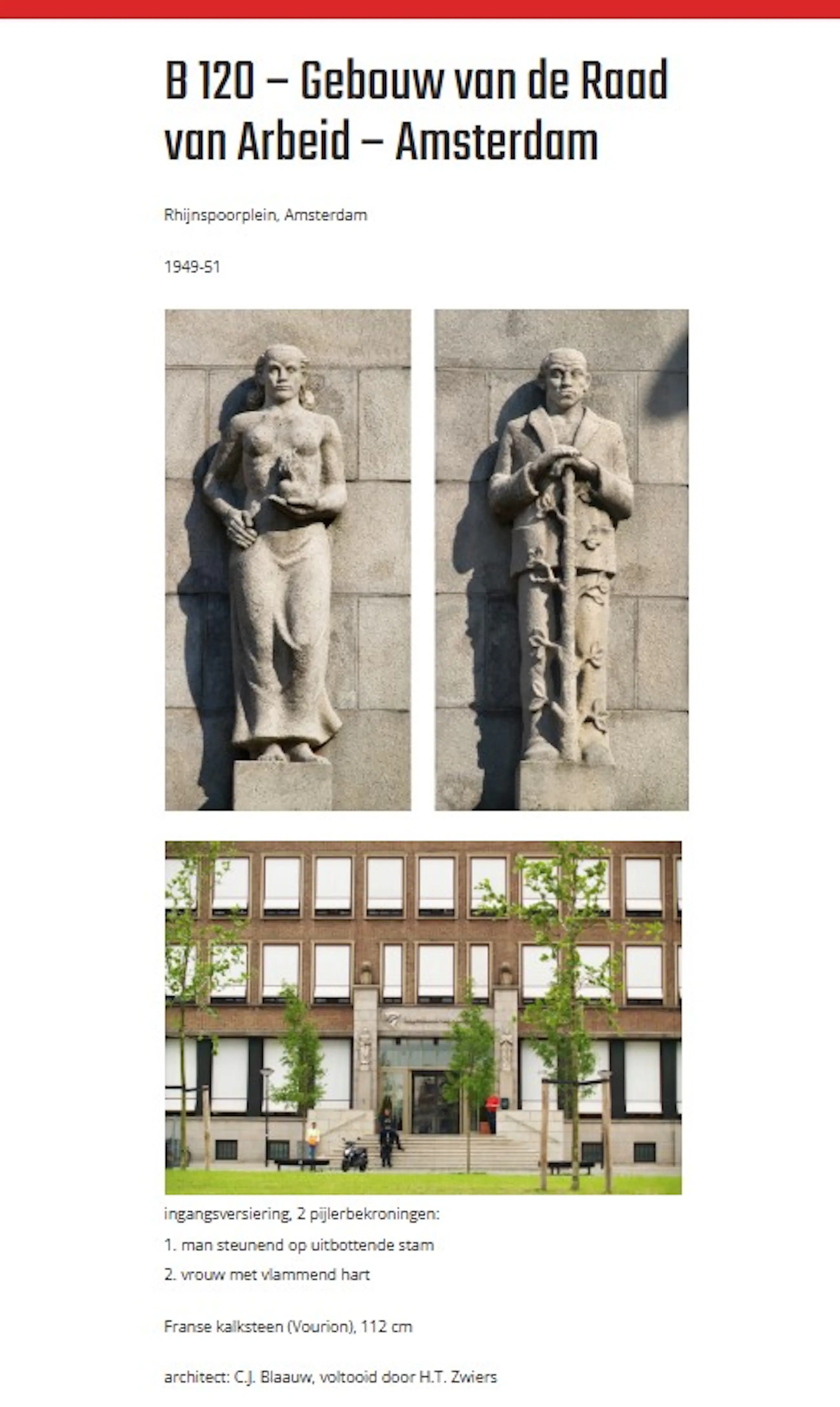 Op de foto is Krop bezig met het beeld Man steunend op uitbottende stam dat geplaatst is ter rechterzijde van de ingang van het Gebouw van de Raad van Arbeid, tegenwoordig een gebouw van de Hogeschool van Amsterdam (Rhijnspoorplein, Wibautstraat).