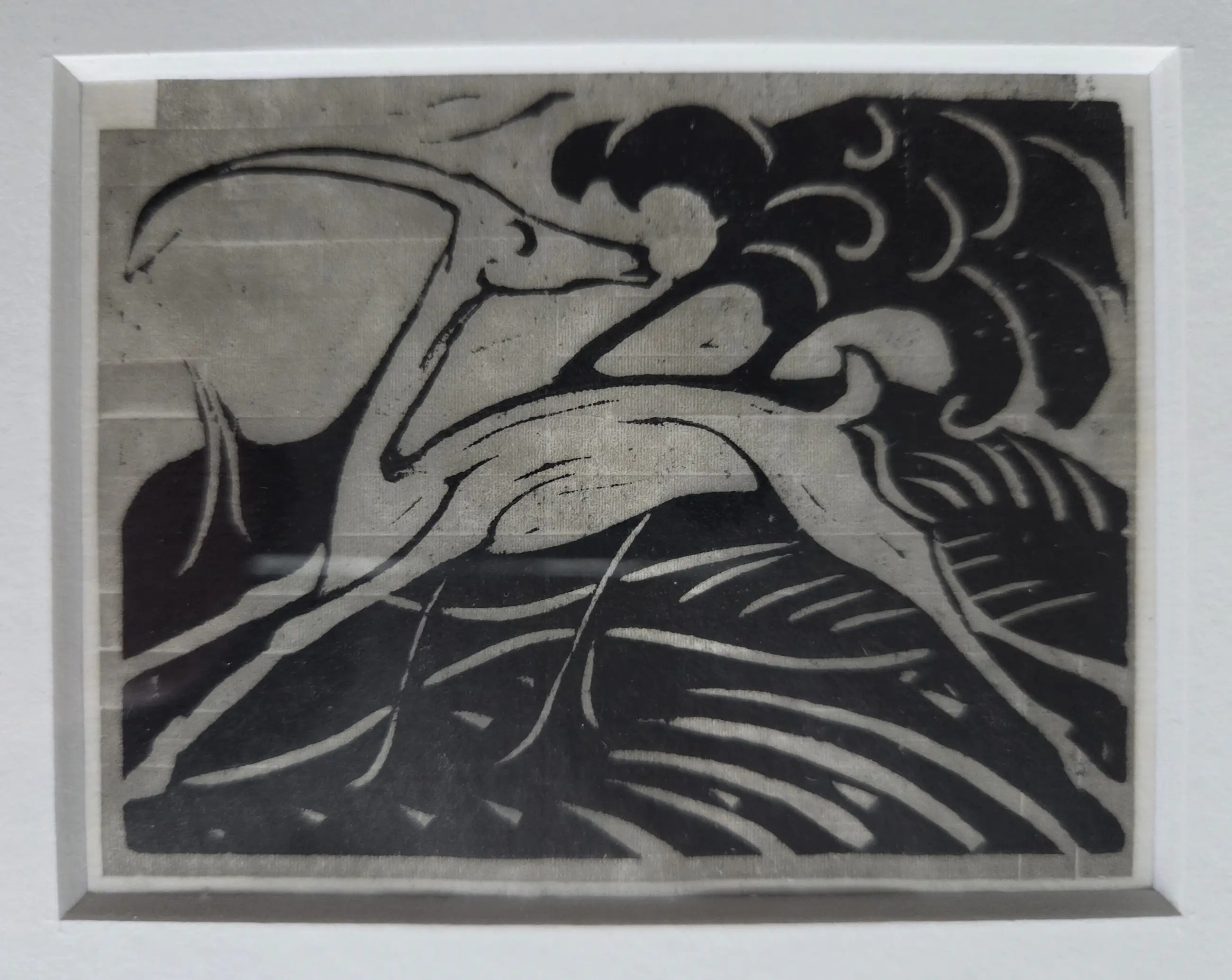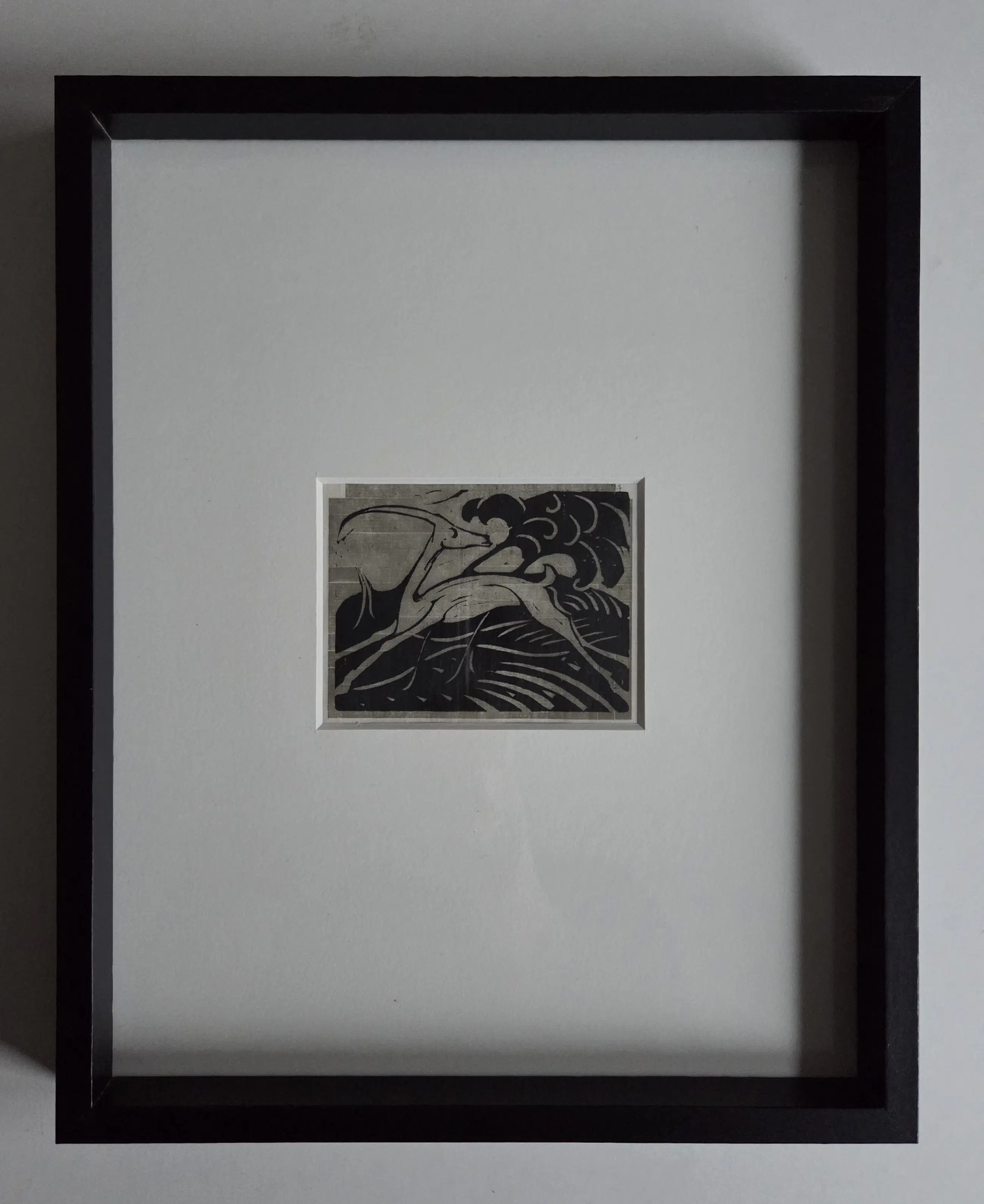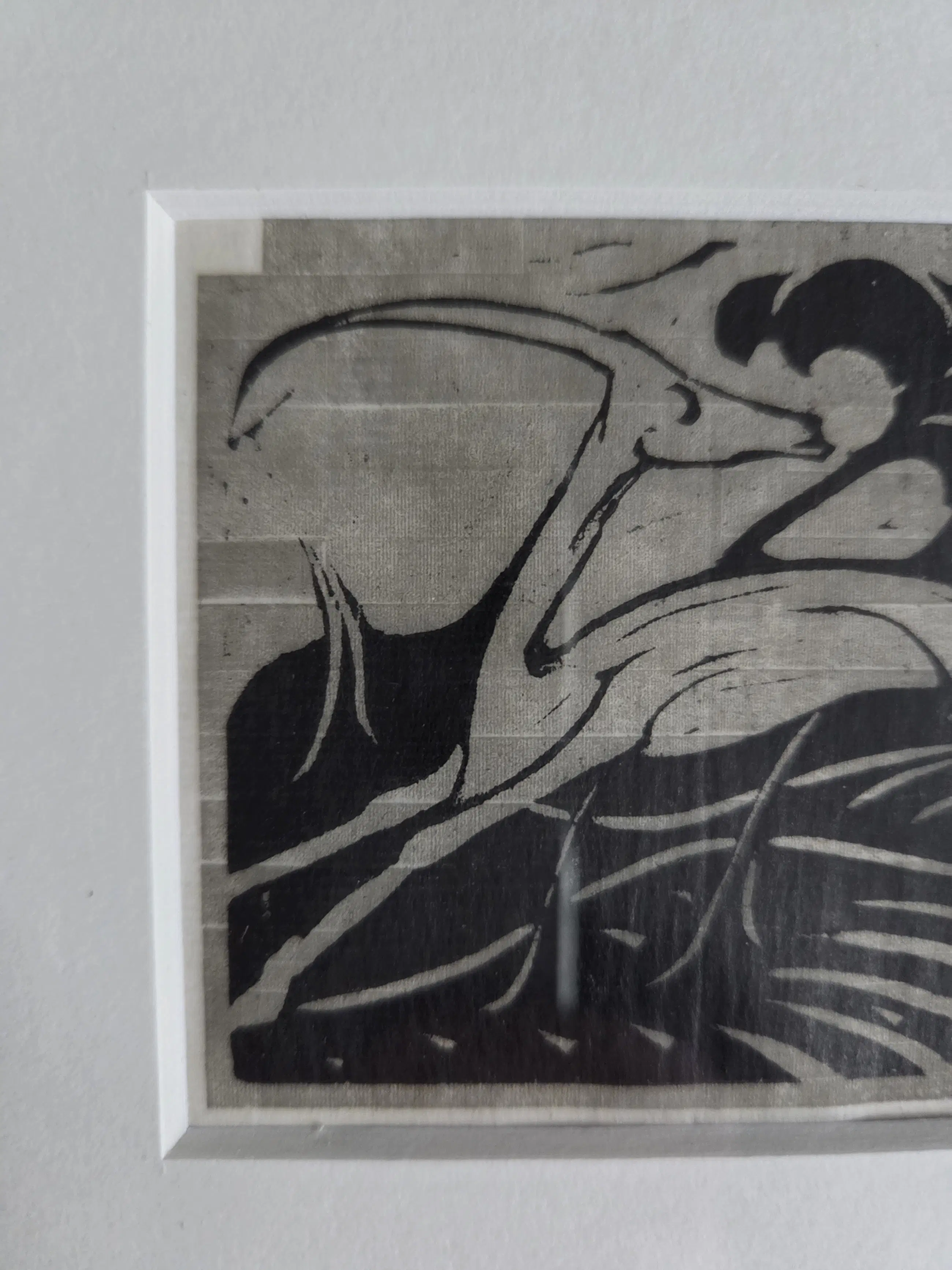 Karakteristiek werk. Herkomst Houtsnijdersnummer van Wendingen. Algemeen goede staat. Net passe partout en lijst. Zie foto's voor eigen oordeel kwaliteit.