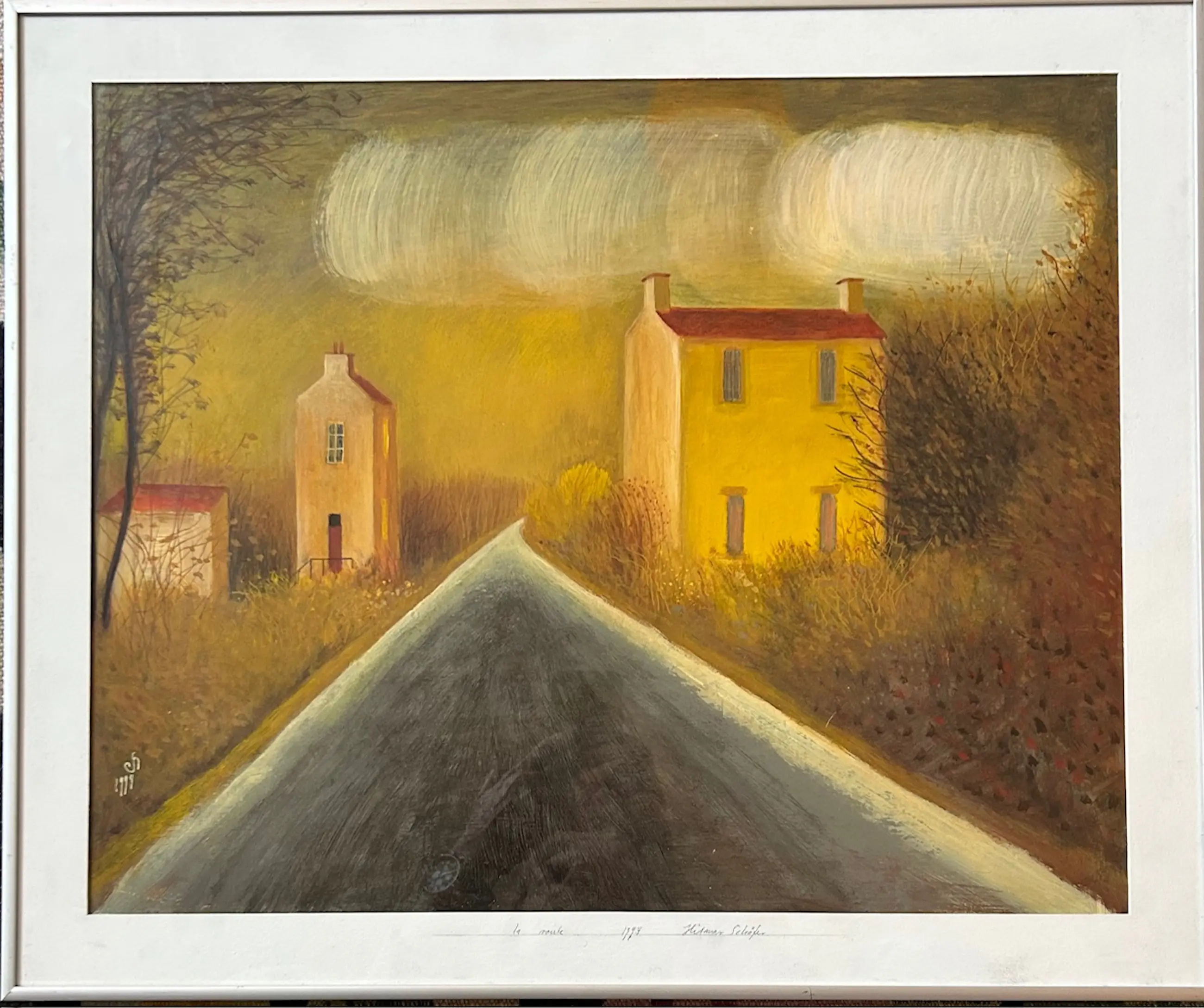 Voormalig werk van de kunstuitleen. Getiteld La Route. door Hilmar Schäfer. In potlood getiteld en gesigneerd. Zie foto's.