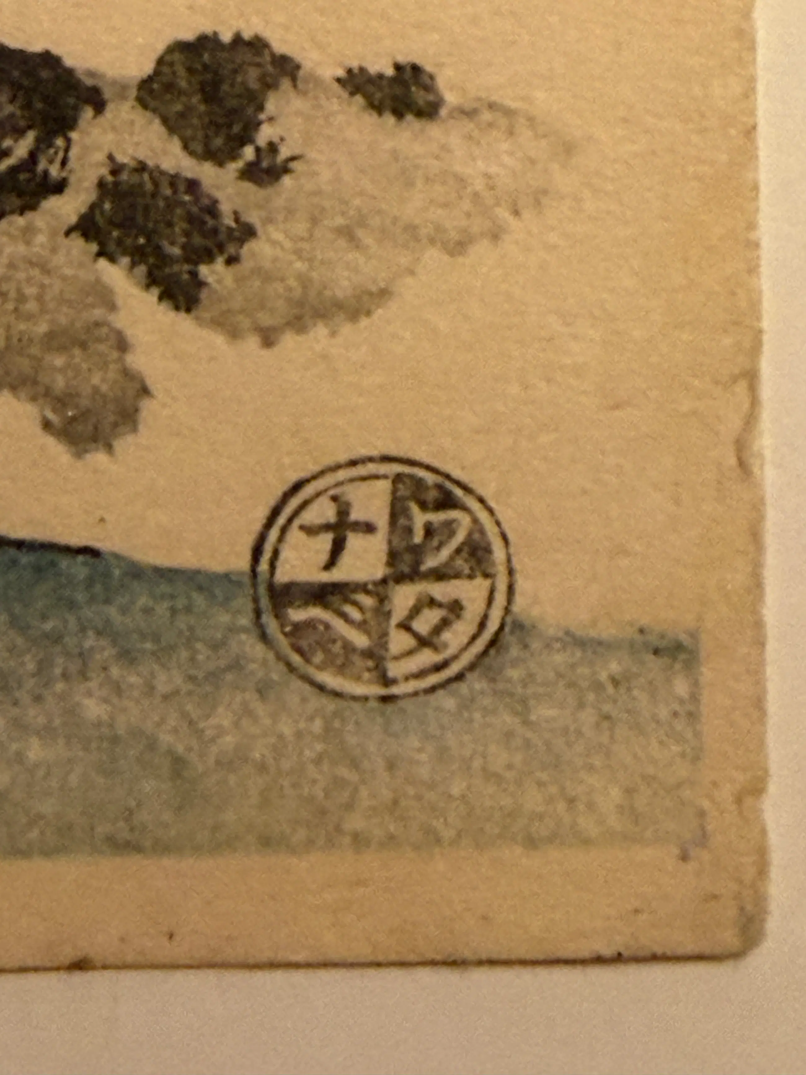 Geen foxing of beschadigingen. Binnen de lijst gevat in een passe partout, met twee kleine plakbandjes daaraan bevestigd.