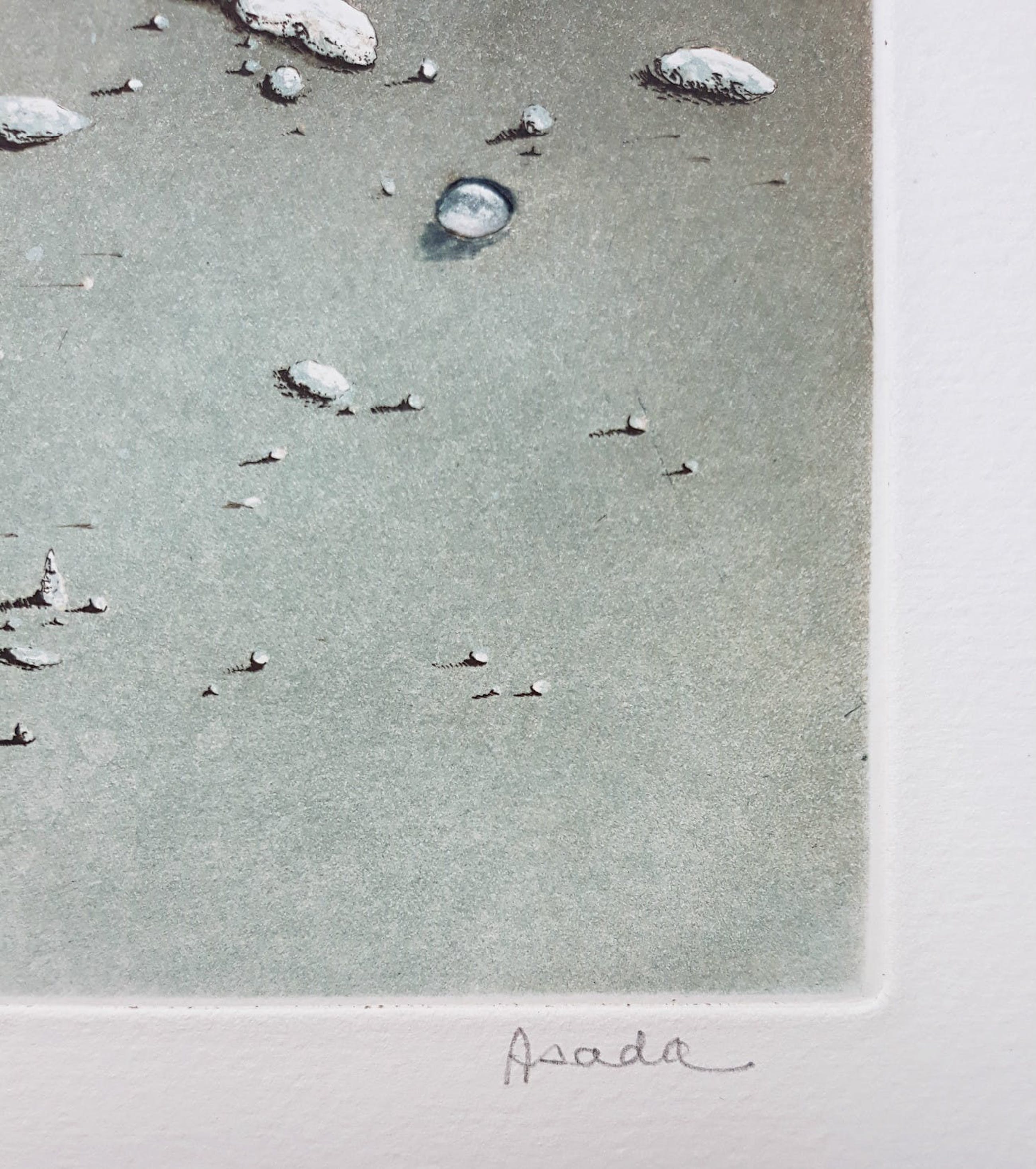 Asada was een tijd woonachtig in Frankrijk, en waarschijnlijk is deze ets in die periode gemaakt (1971-1982). Het werk past ook perfect in zijn hyper-realistische / surrealistische stijl van die tijd. Voor een interessant (engelstalig) artikel over Asada, zie: