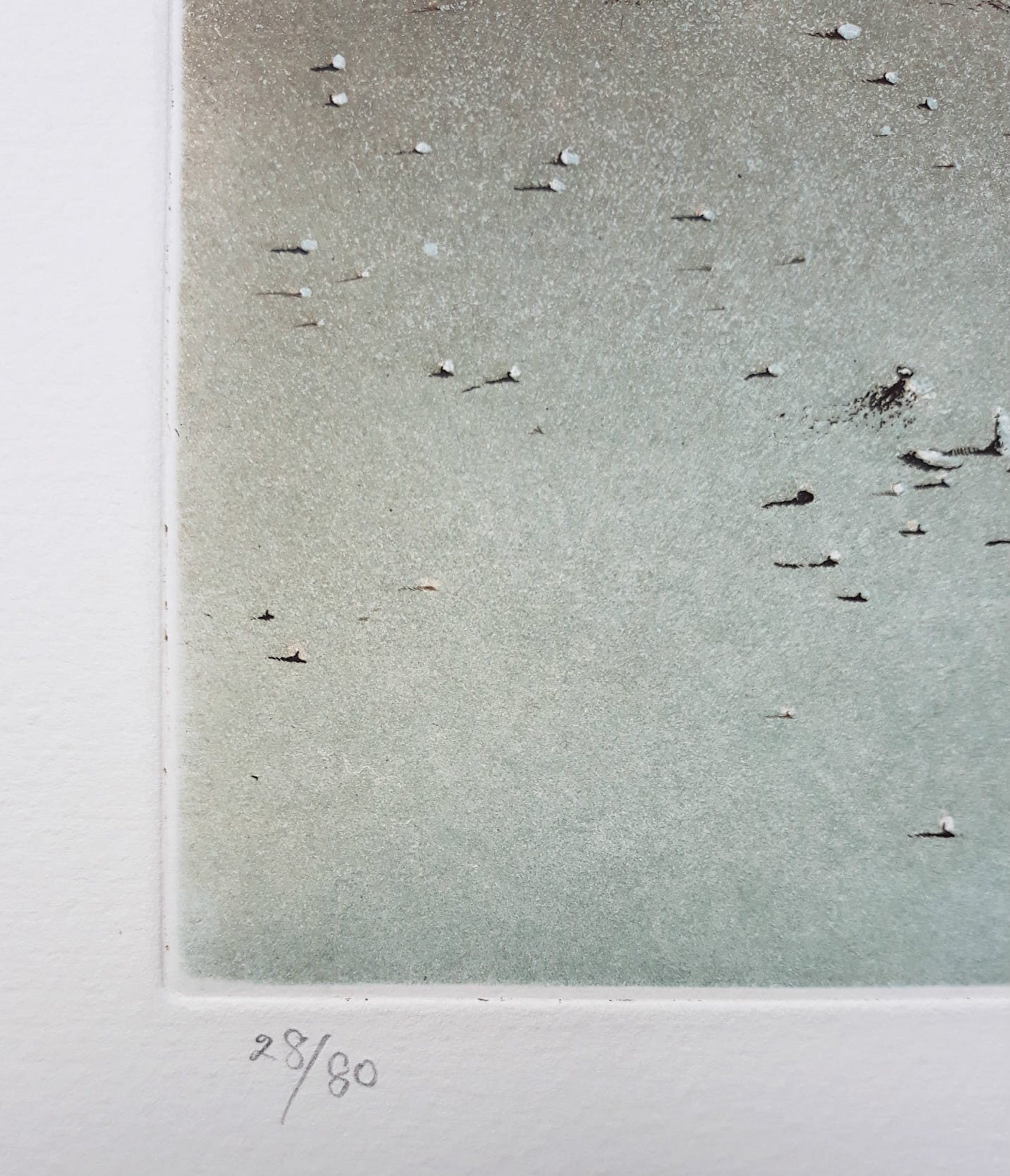 Prachtig werk van Hiroshi Asada. Aquatint ets op Arches papier, met potlood gesigneerd en genummerd (28/80). Linksonder op het blad een blindstempel met “Editions de l’Ermitage - Paris”. In uitstekende conditie.