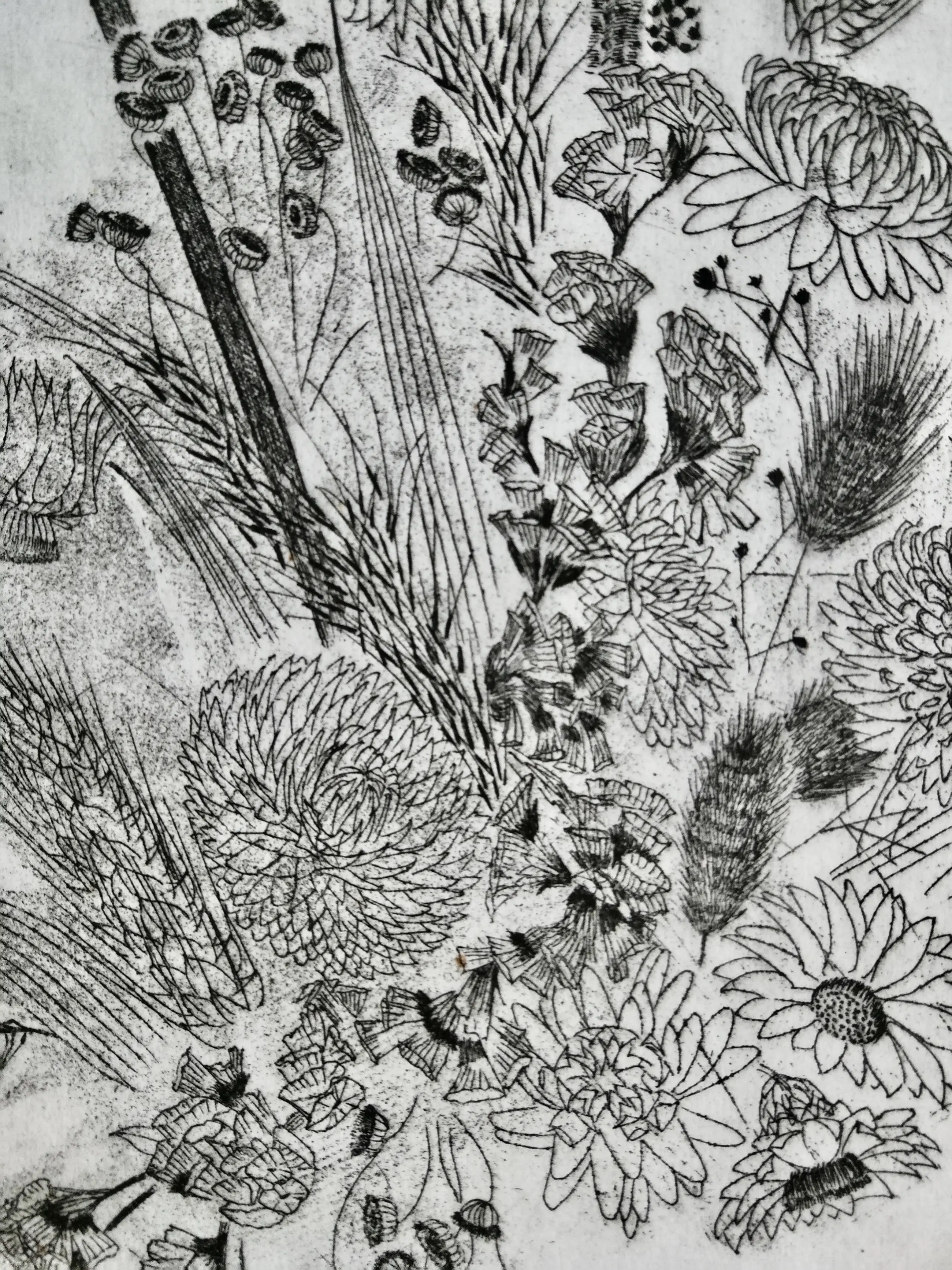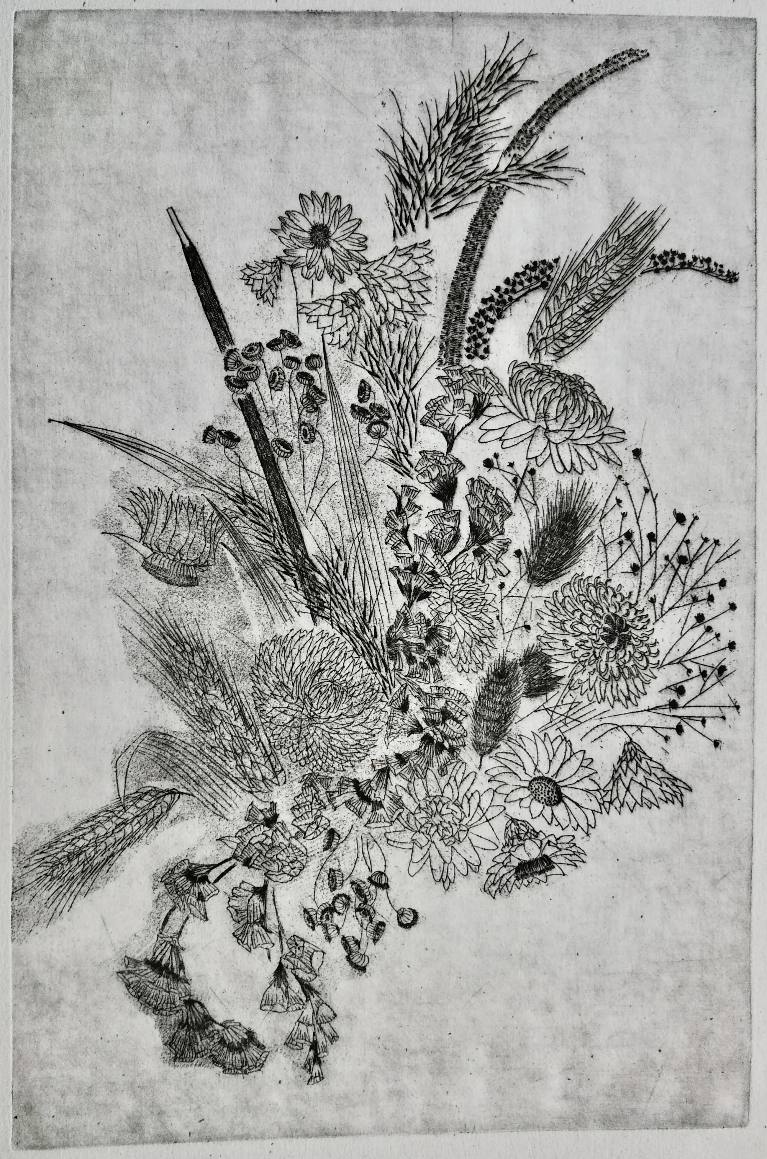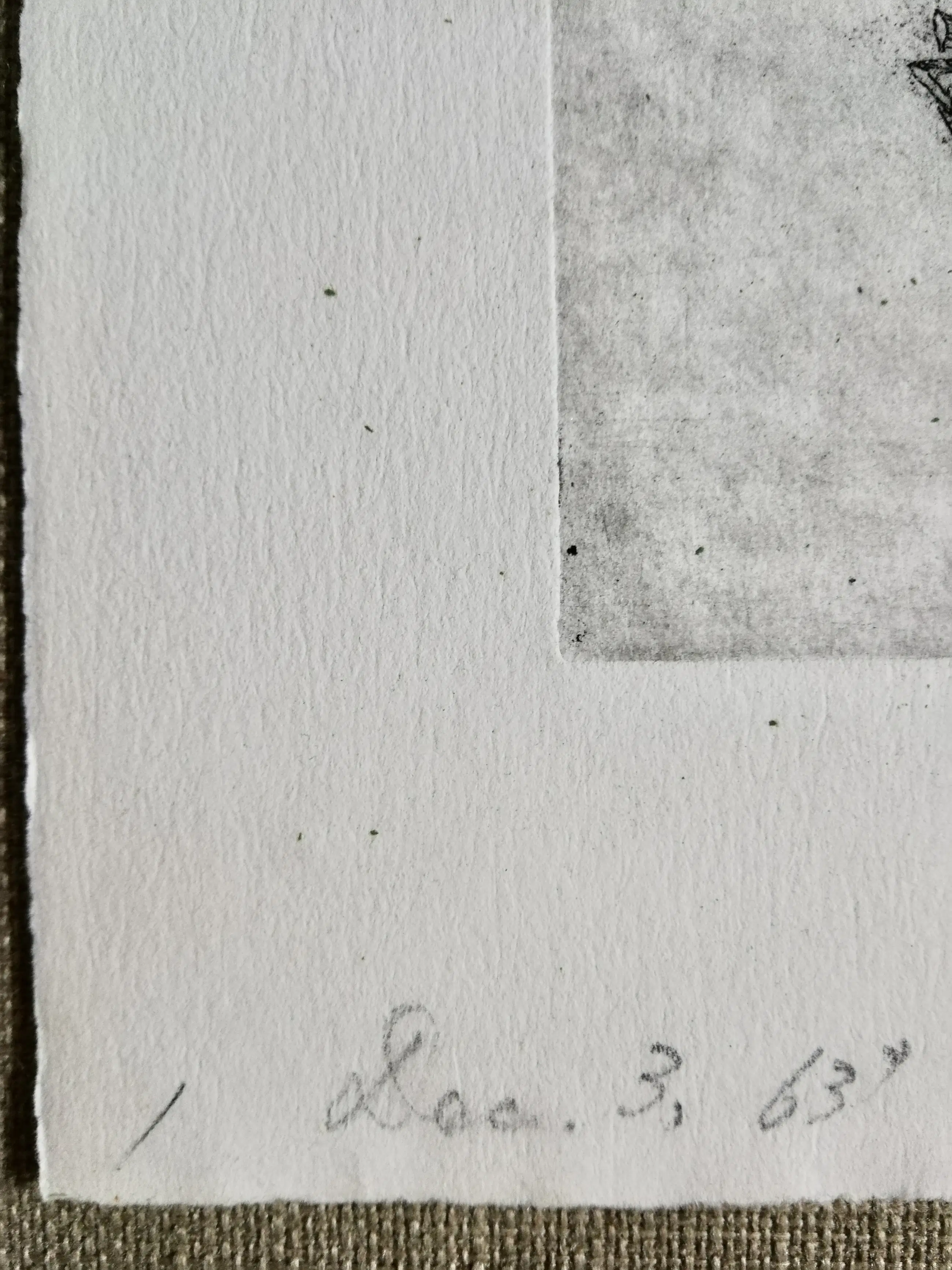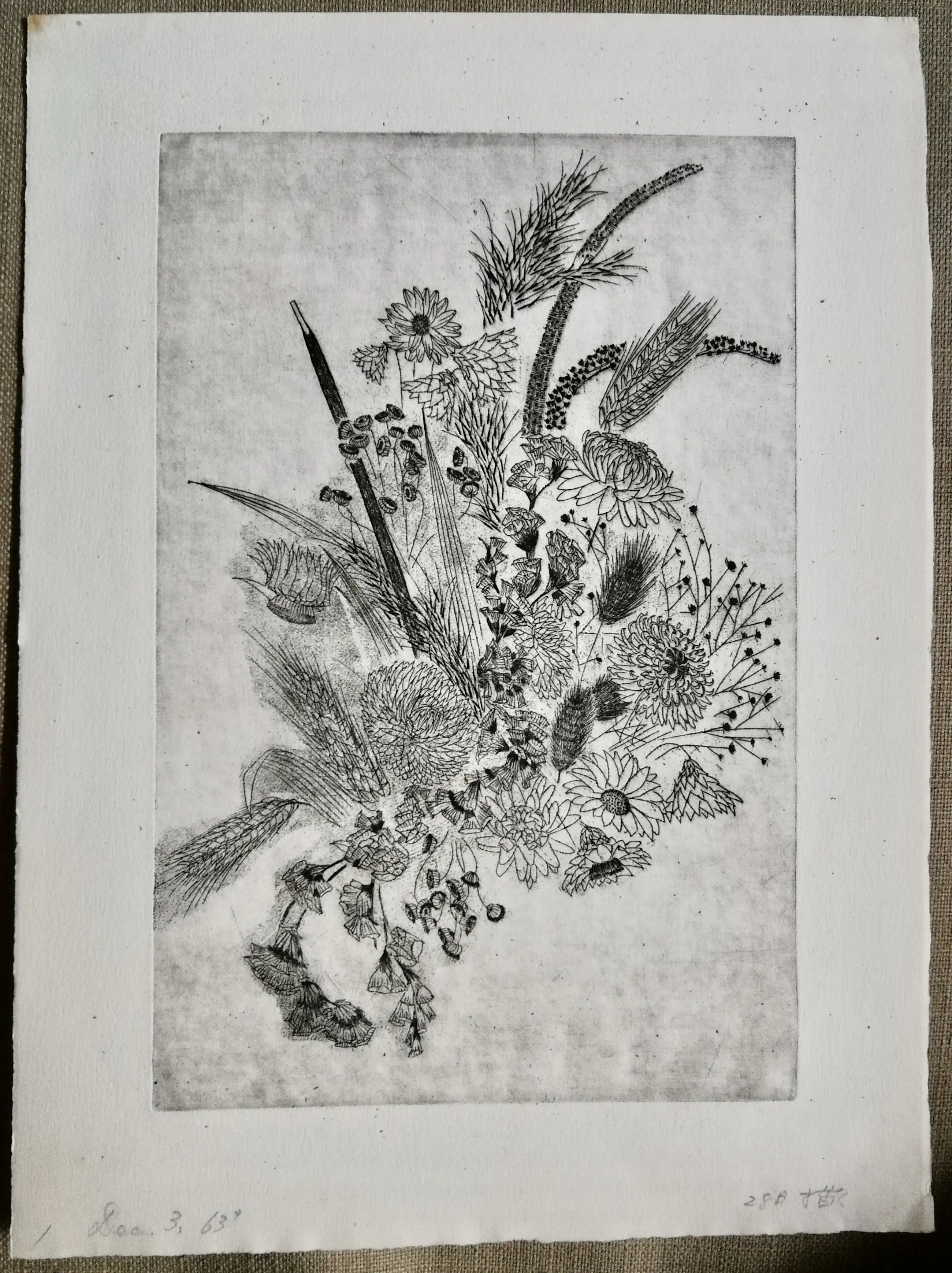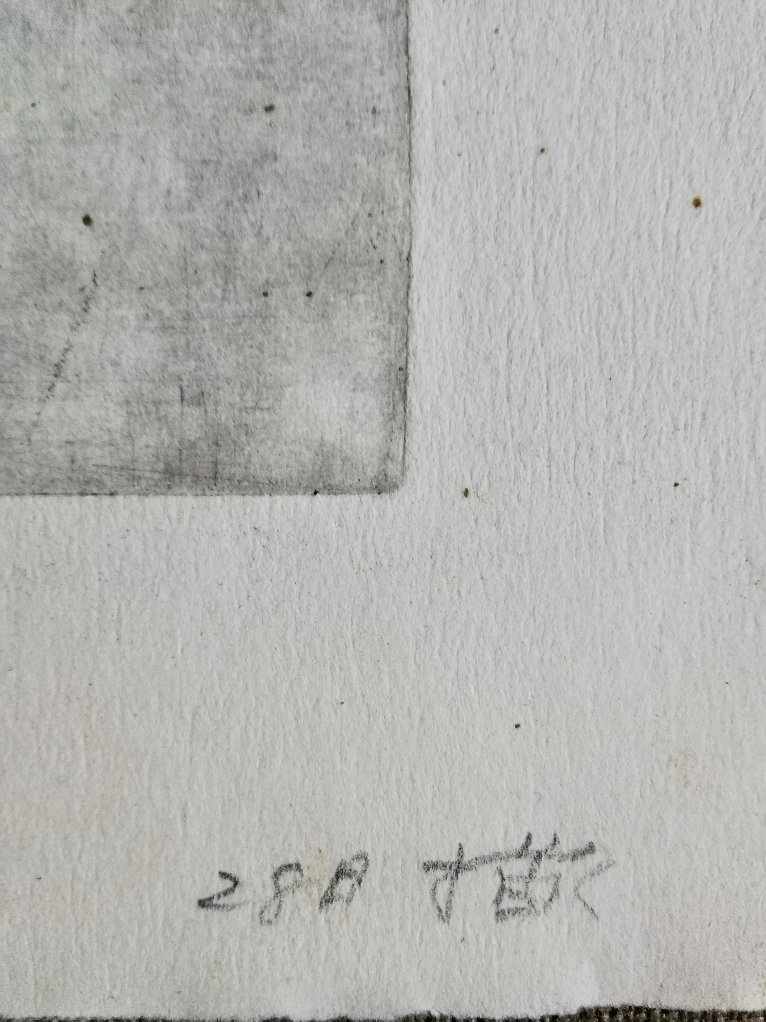 Ets van Hisako Abe, gesigneerd en gedateerd in potlood. Verzending tussen twee platen, 9,25, aangetekend 11,55