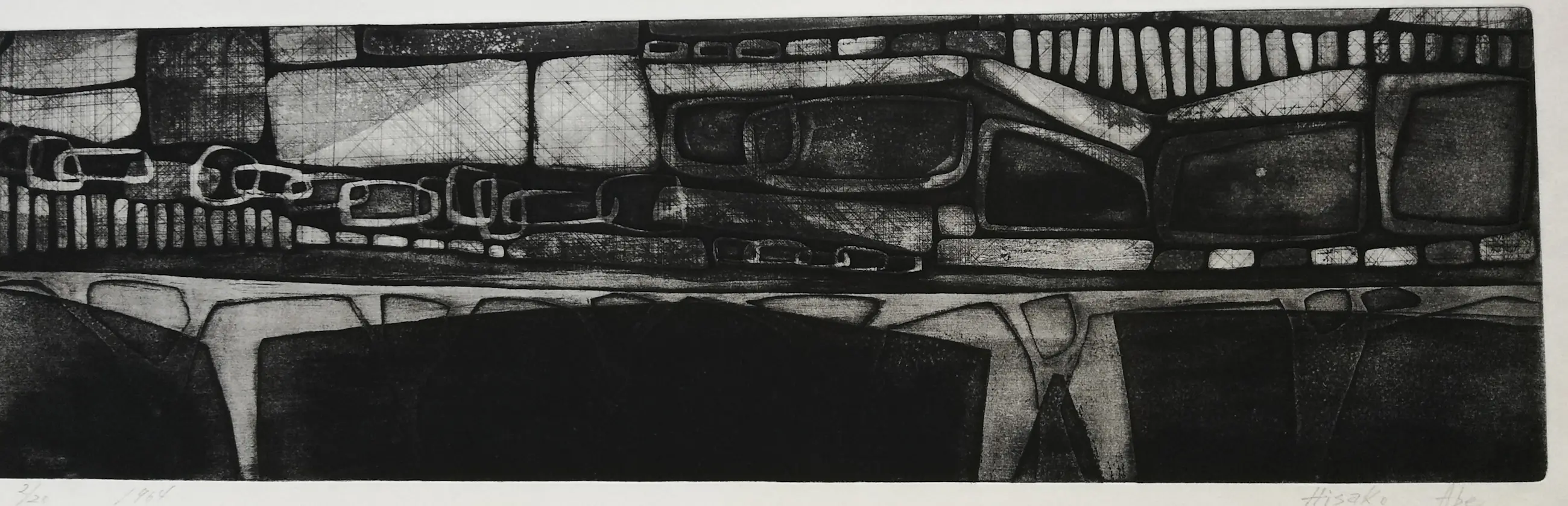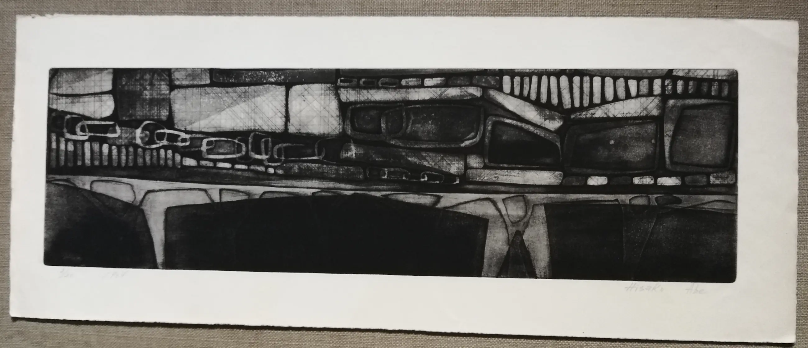 Ets van Hisako Abe, gesigneerd, gedateerd en genummerd in potlood. Verzending tussen twee platen, 9,25 , aangetekend 11,55
