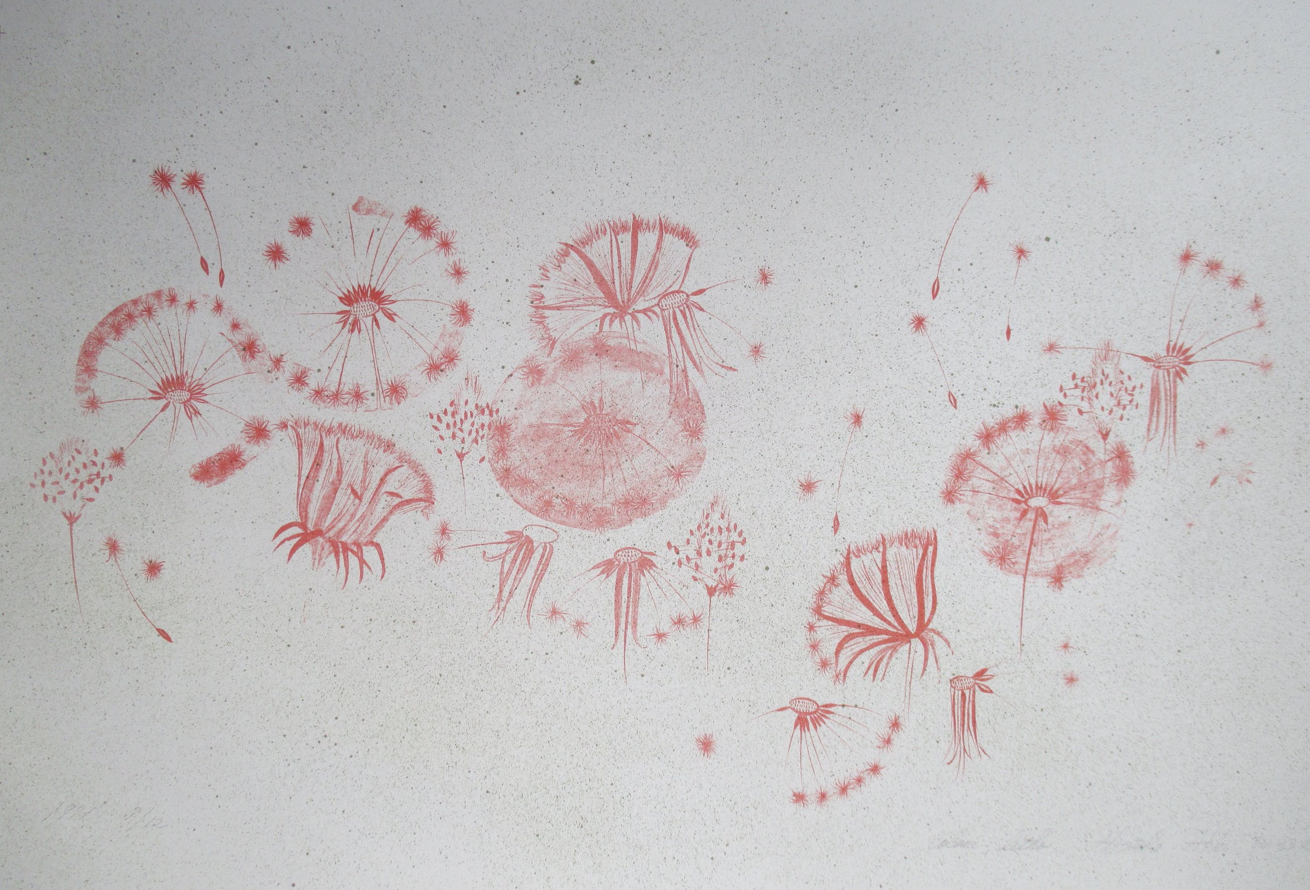 Litho van de Japanse kunstenares Hisako Abe, gesigneerd r.o, genummerd en gedateerd l.o in potlood.