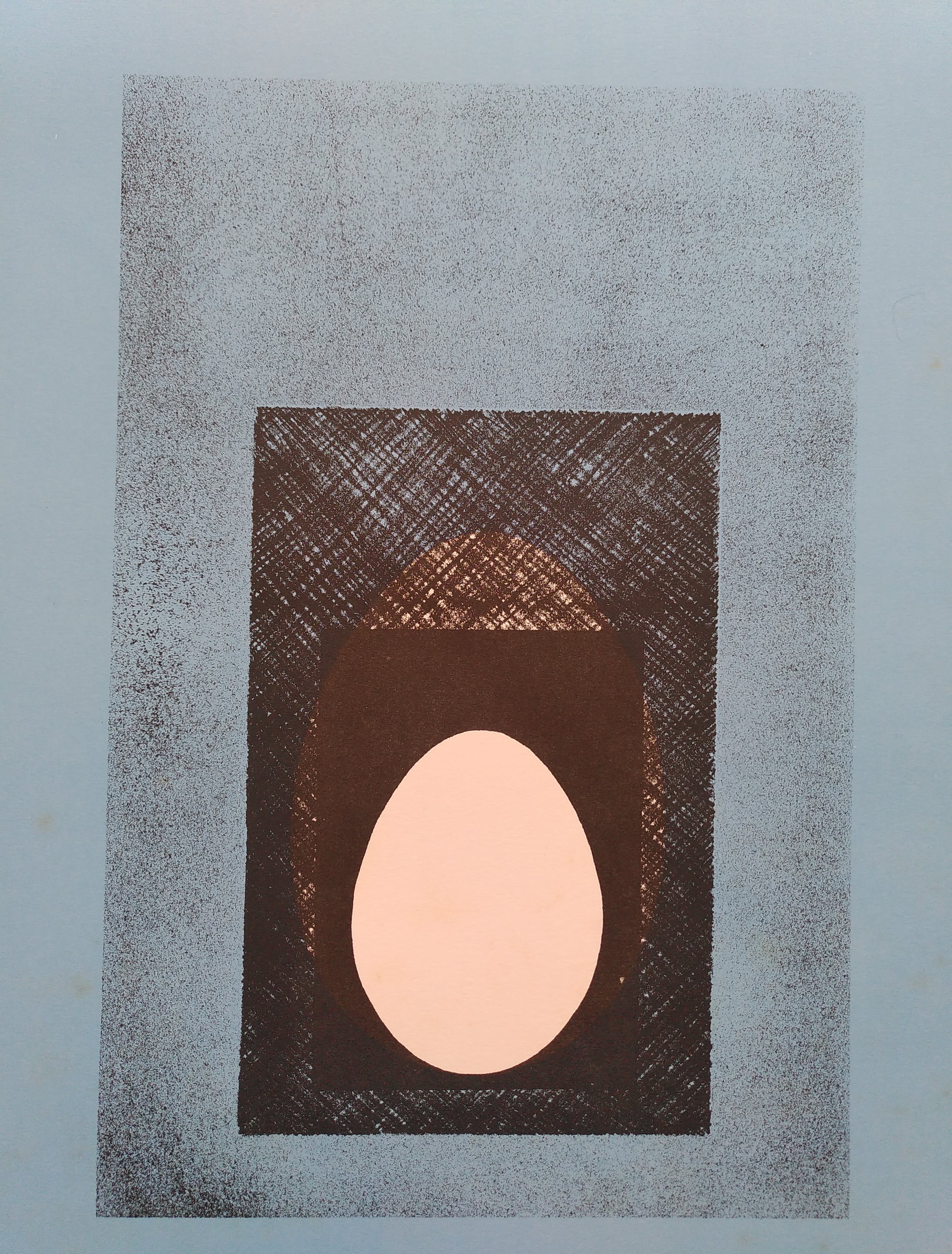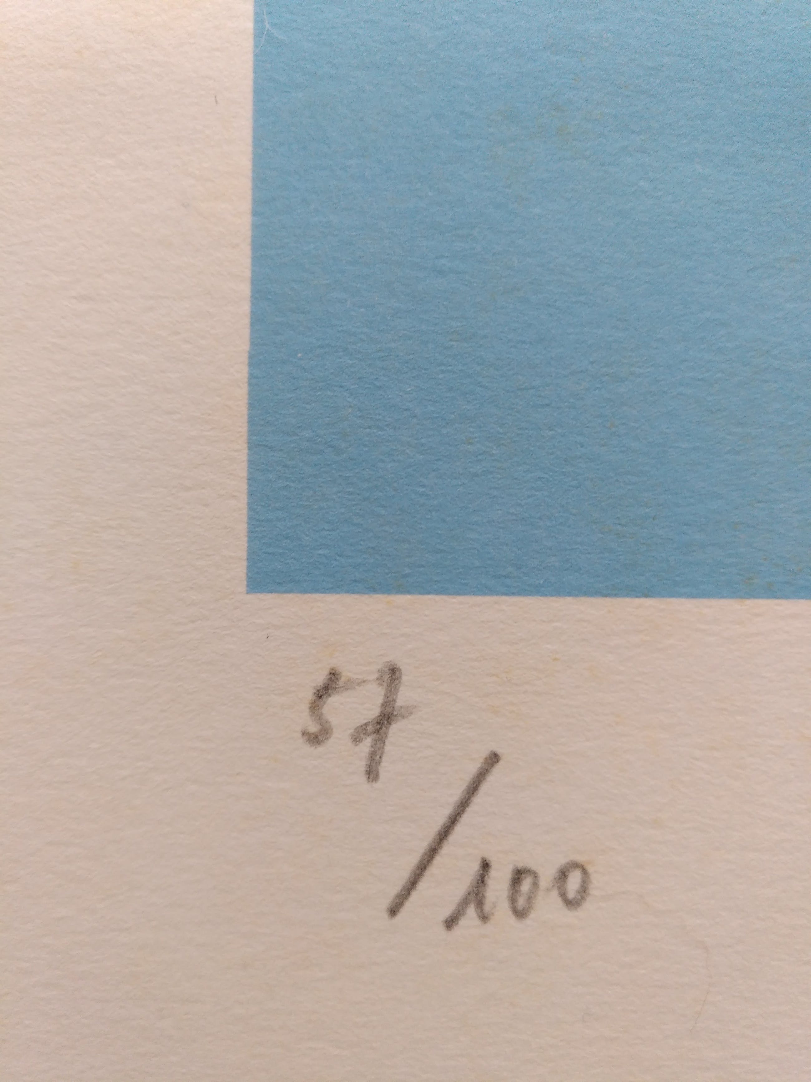 De afmeting van het werk zelf (buitenkant blauwe kader) is 36cm (b) x 53cm (h). De bovenvermelde afmeting is van het papier.