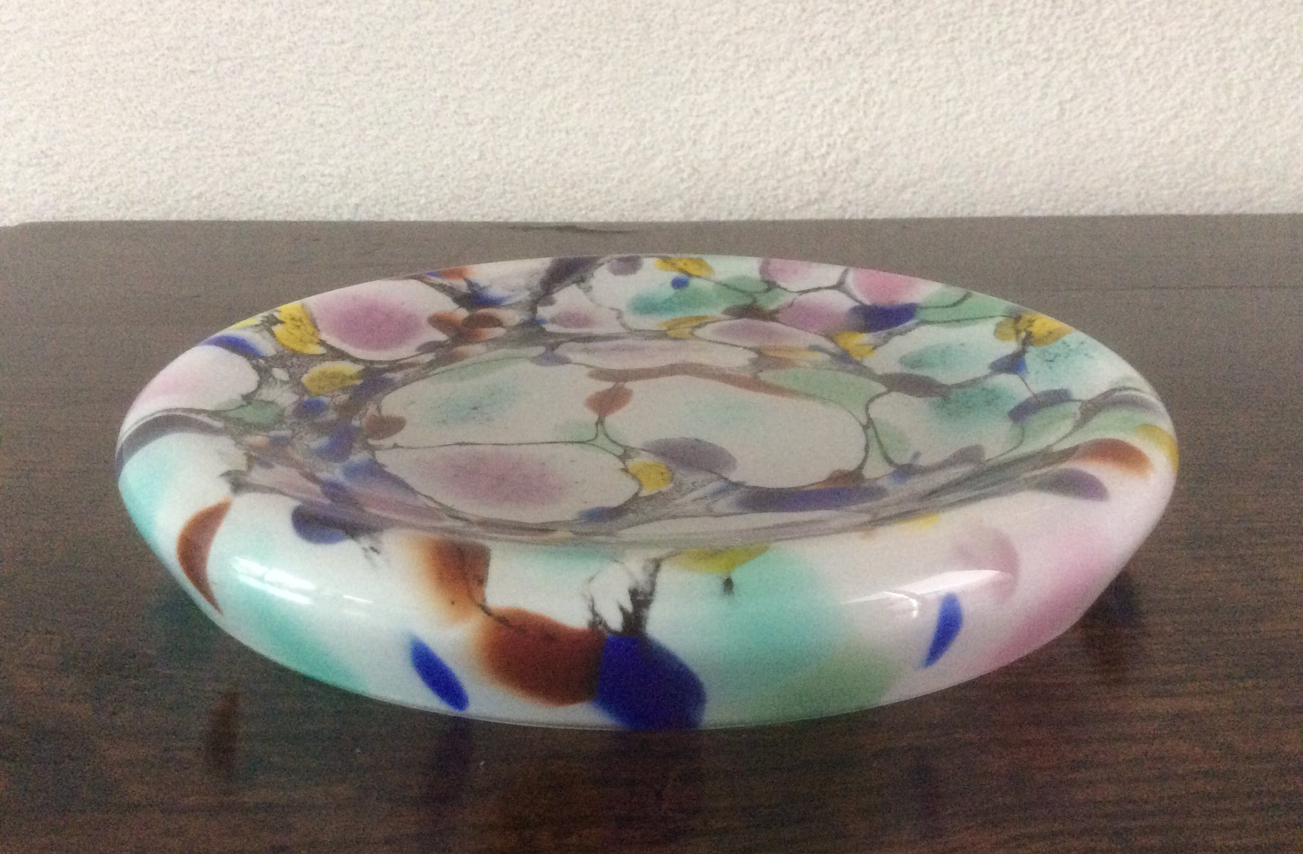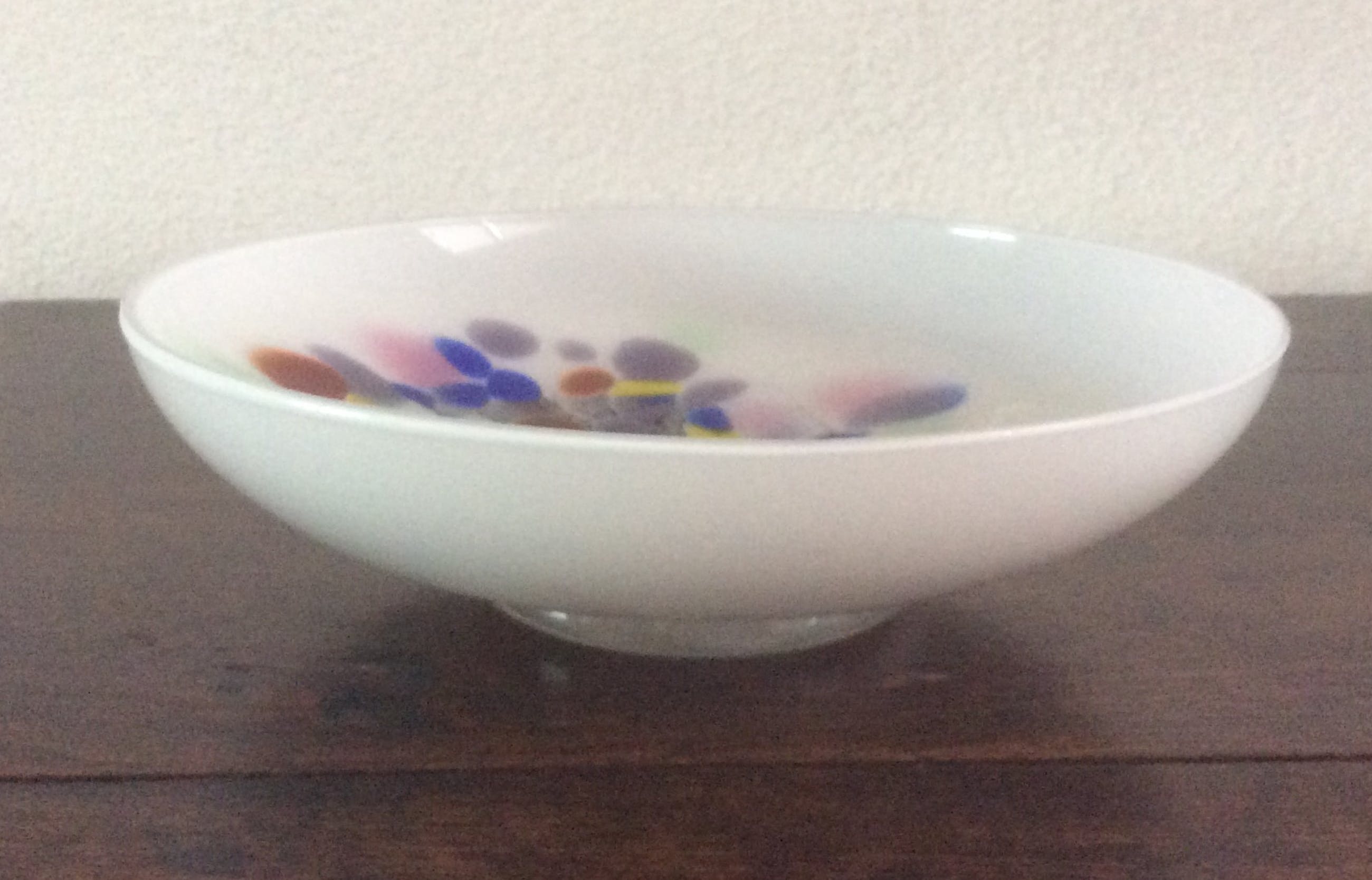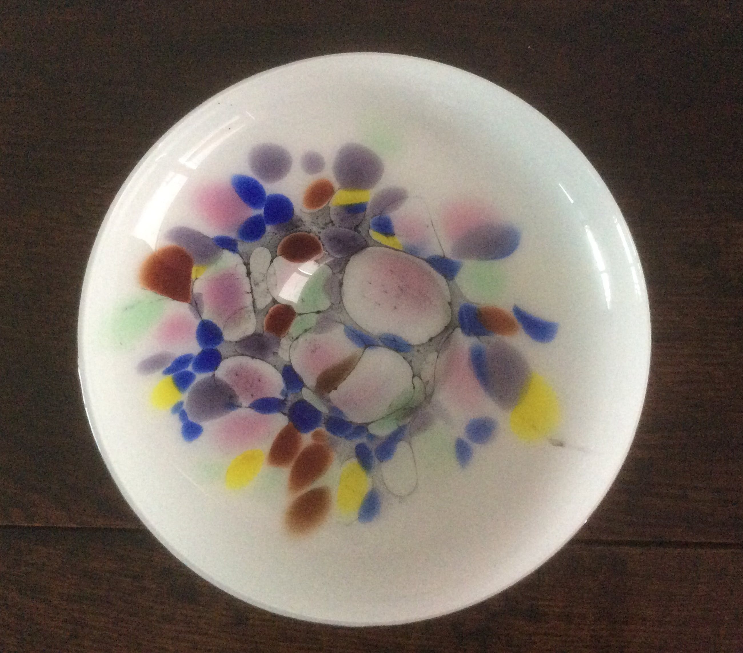 De twee glazen schalen zijn van glaskunstenaar Hans Jürgen Richartz. De kleuren van de schalen zijn in het glas ingesmolten.